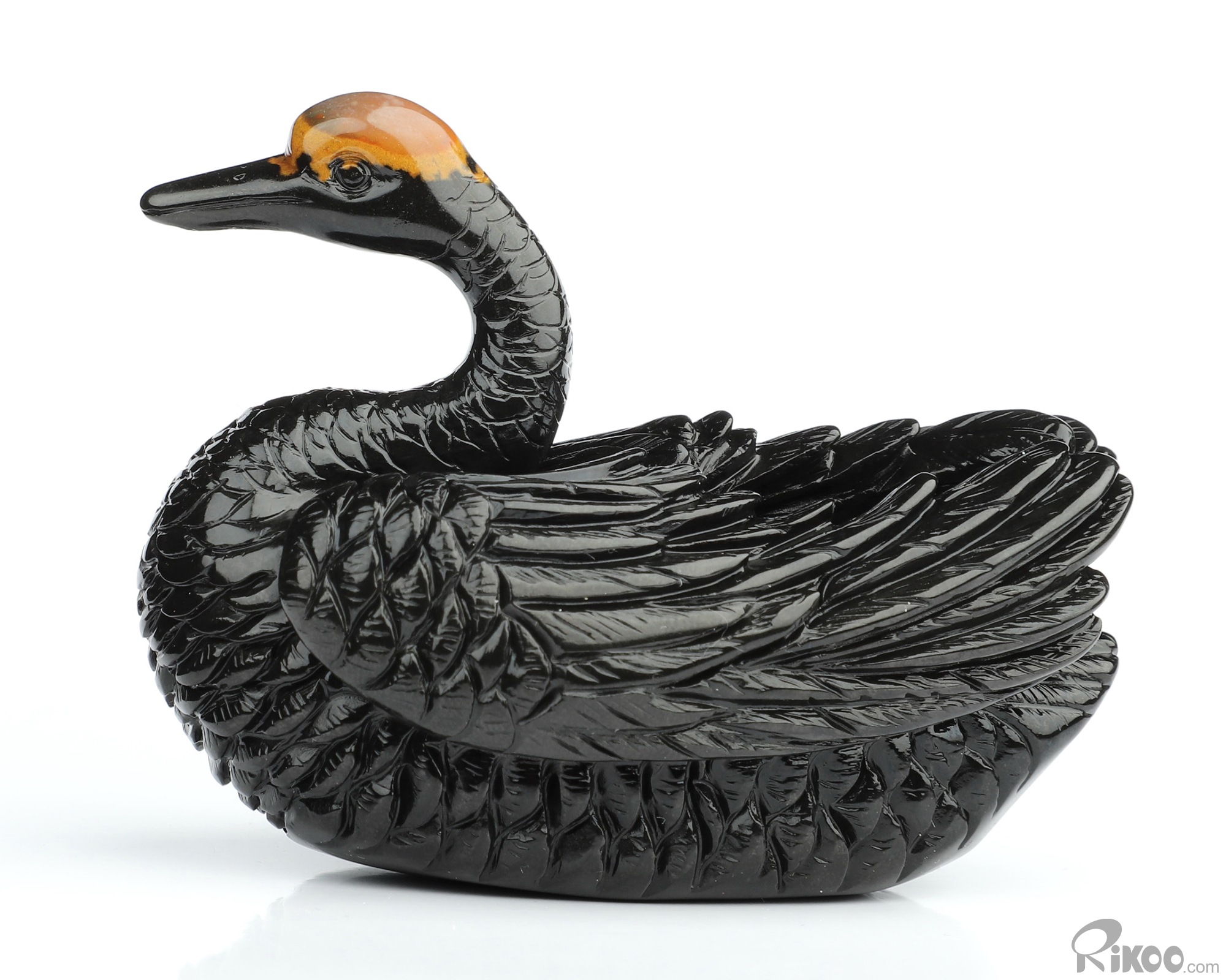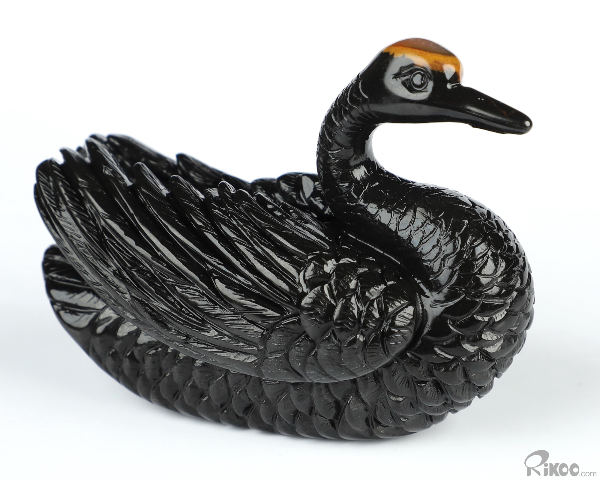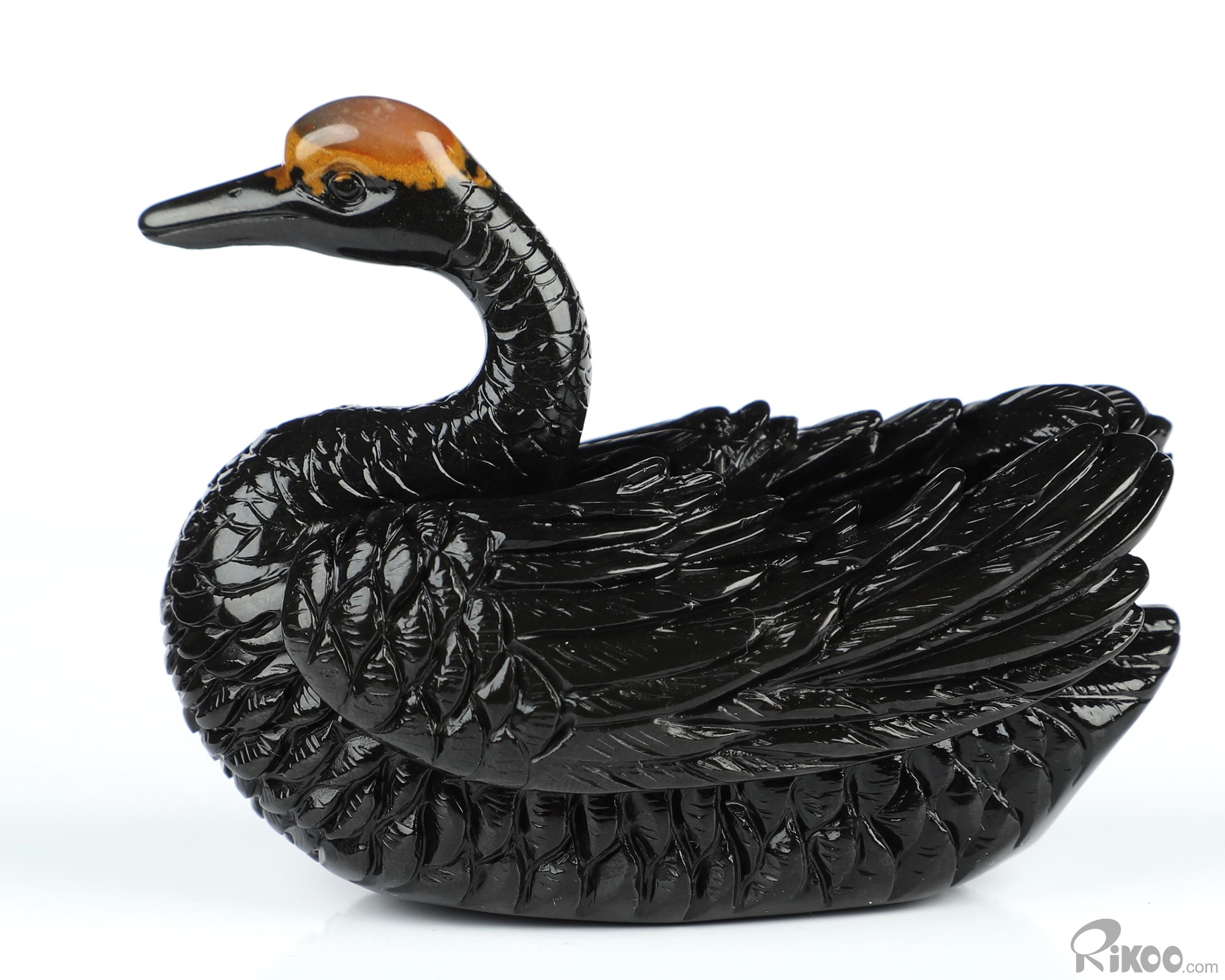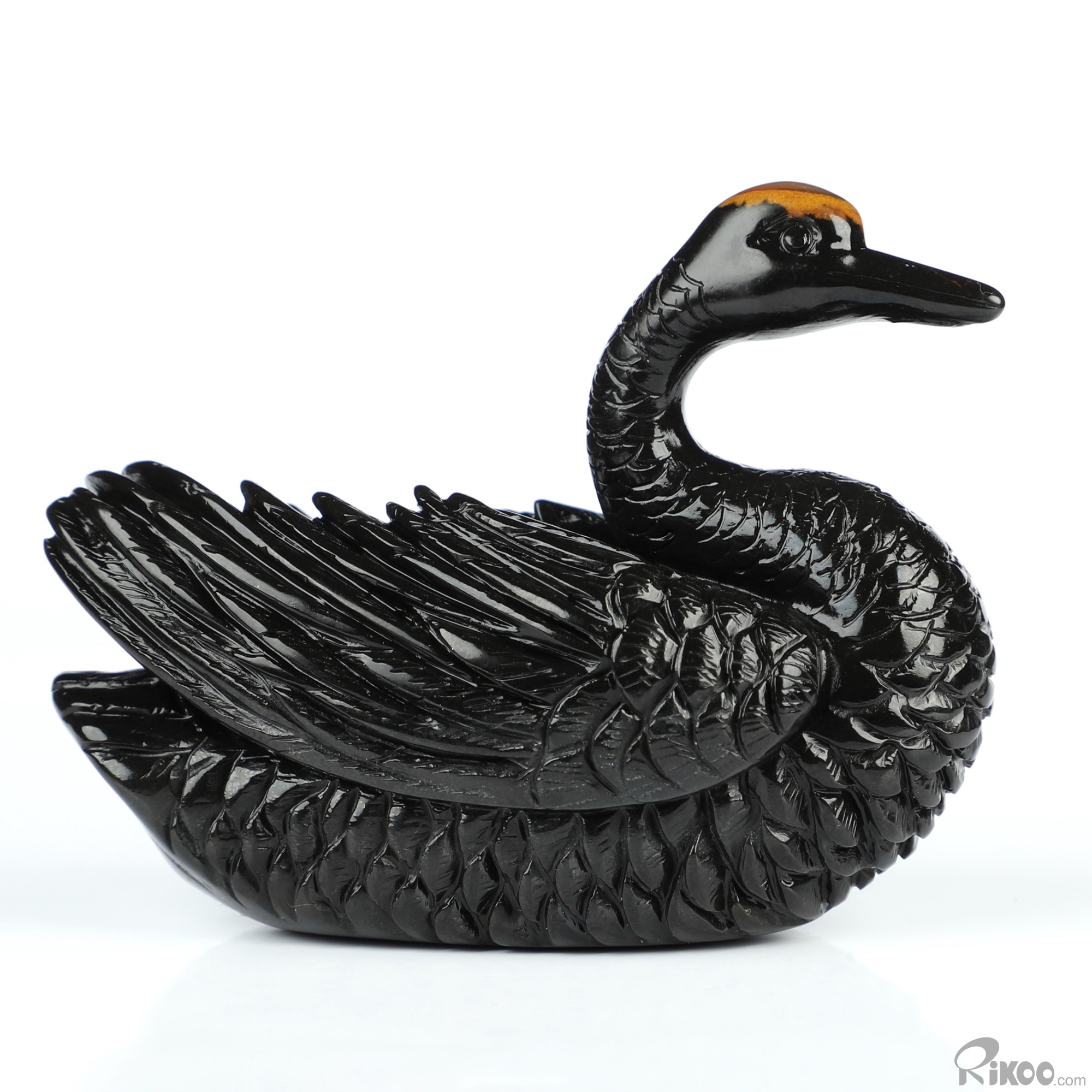 3.0" Black Zebra Agate Hand Carved Crystal Swan Sculpture, Crystal Healing