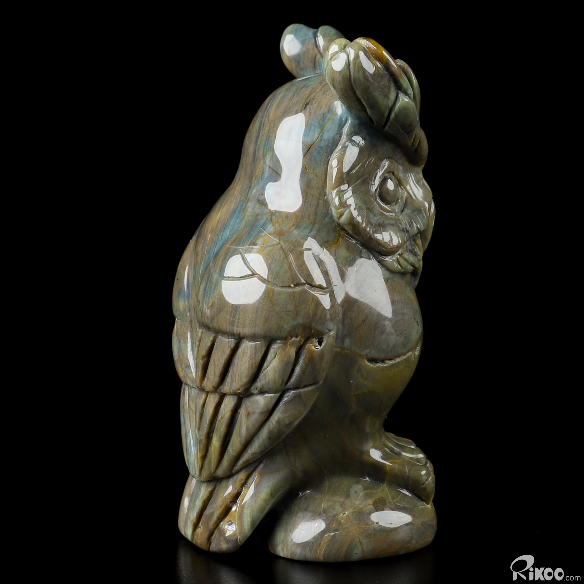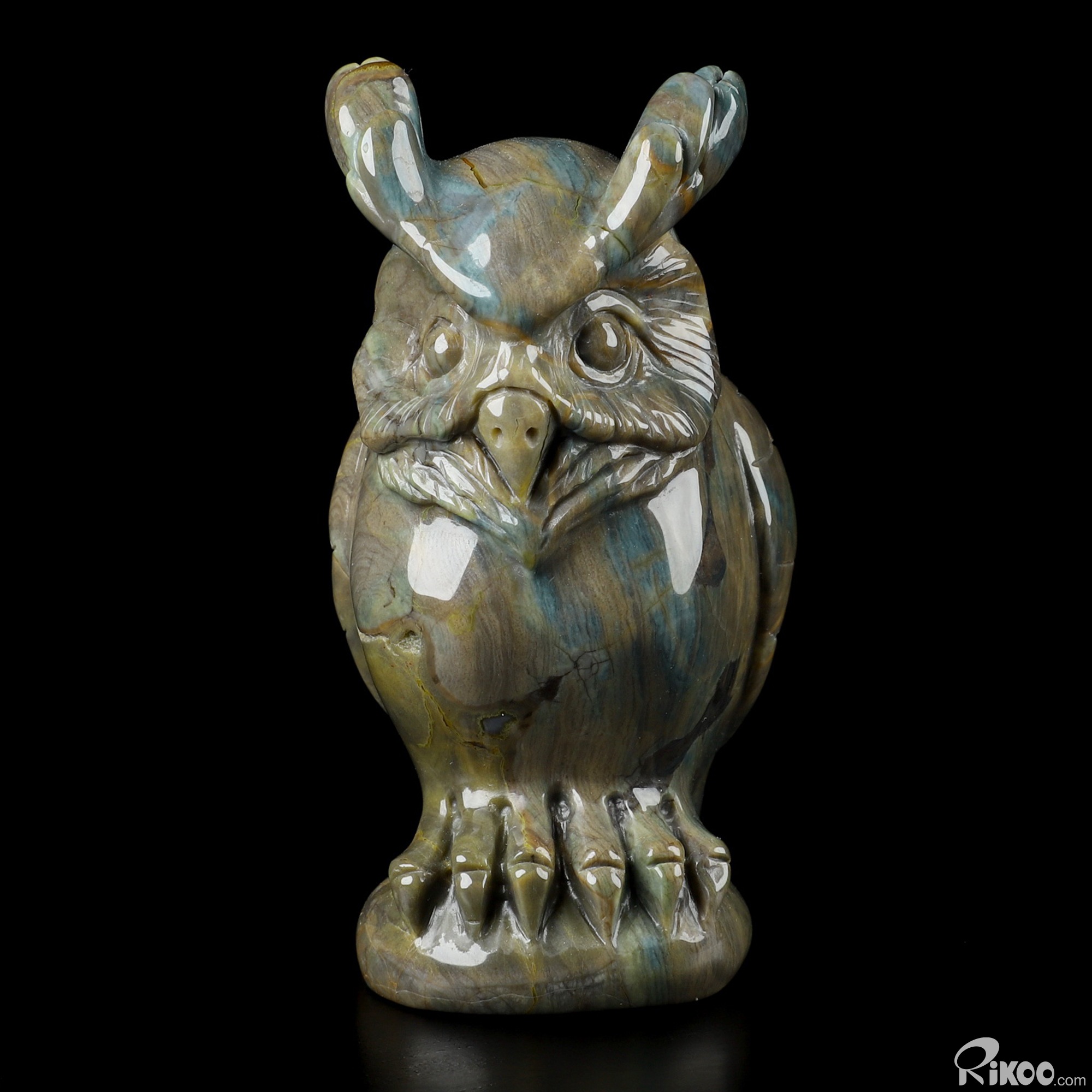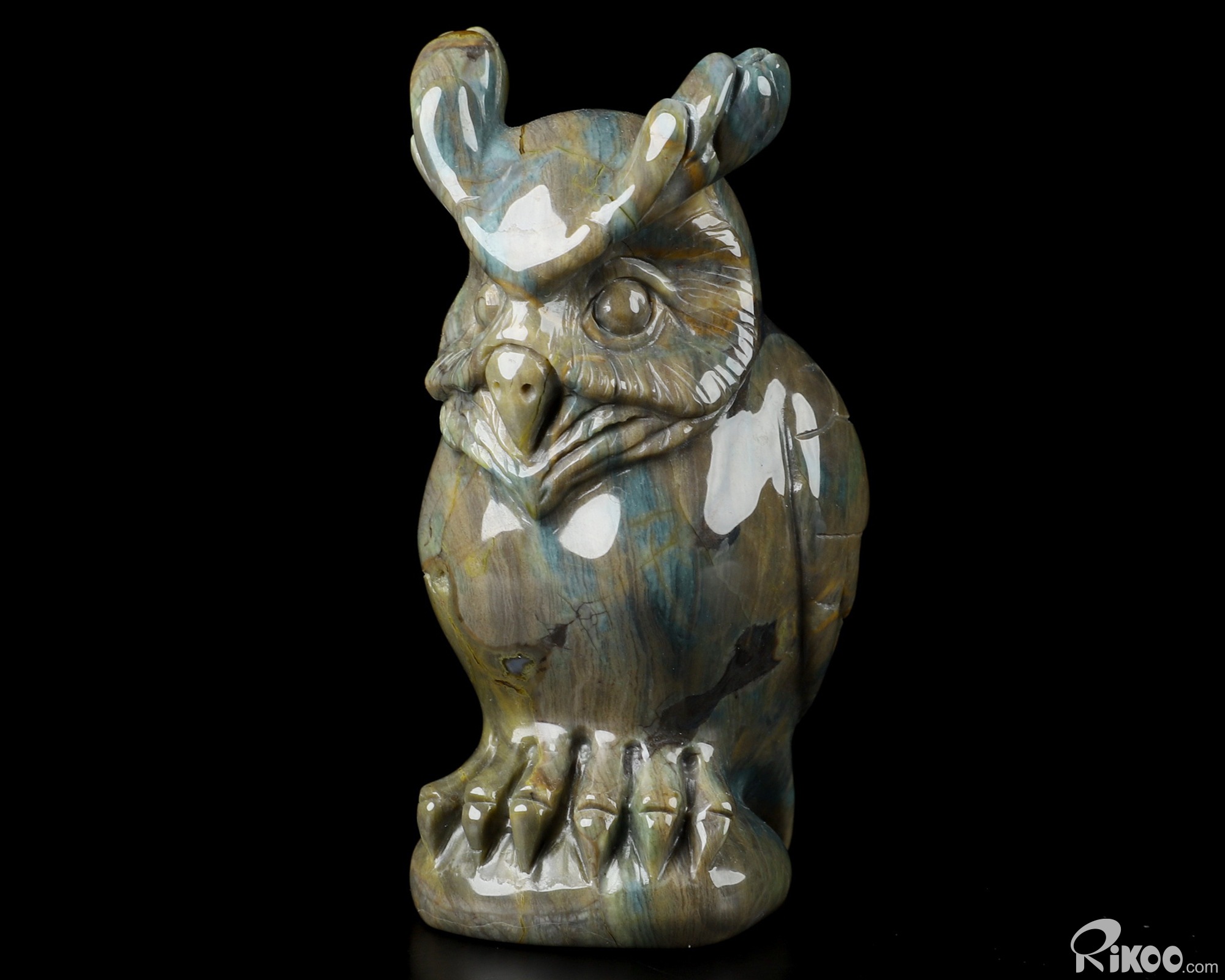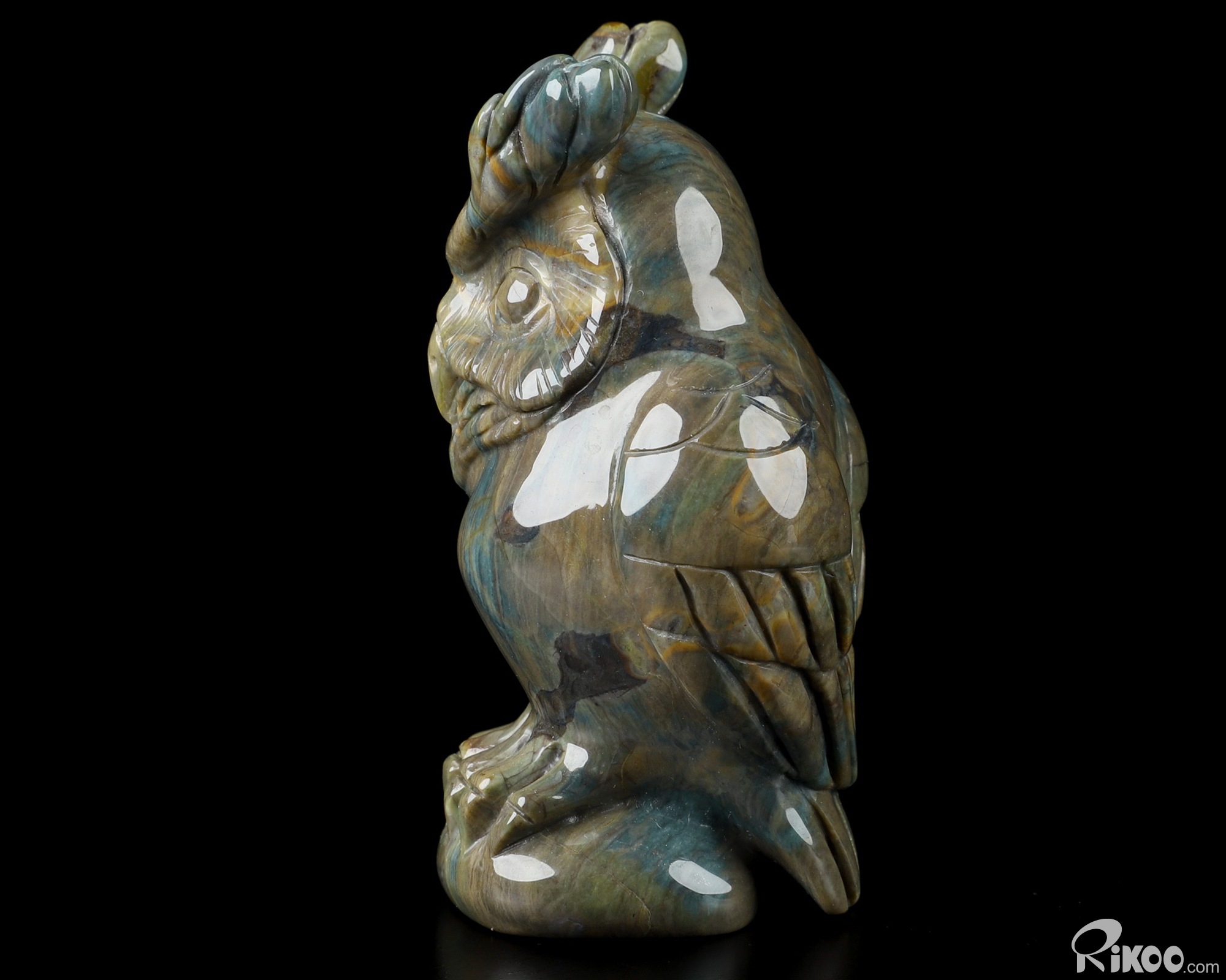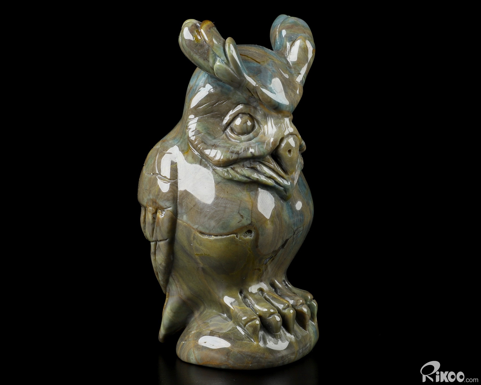 3.0" Dinosaur Egg Agate Hand Carved Crystal Owl Sculpture, Crystal Healing