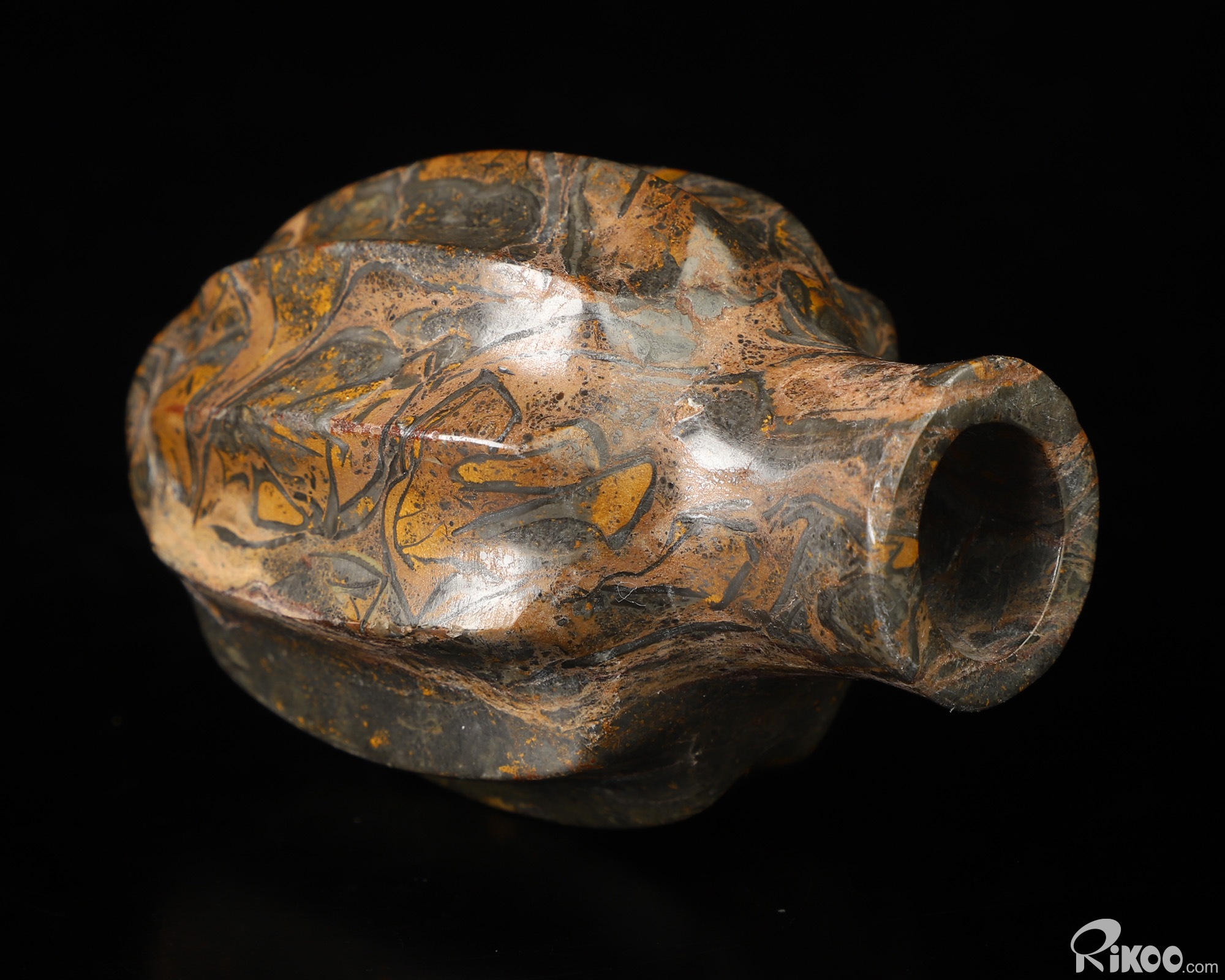 You are looking at a Floriated Jasper sculpture. The sculpture is 3 inches long.