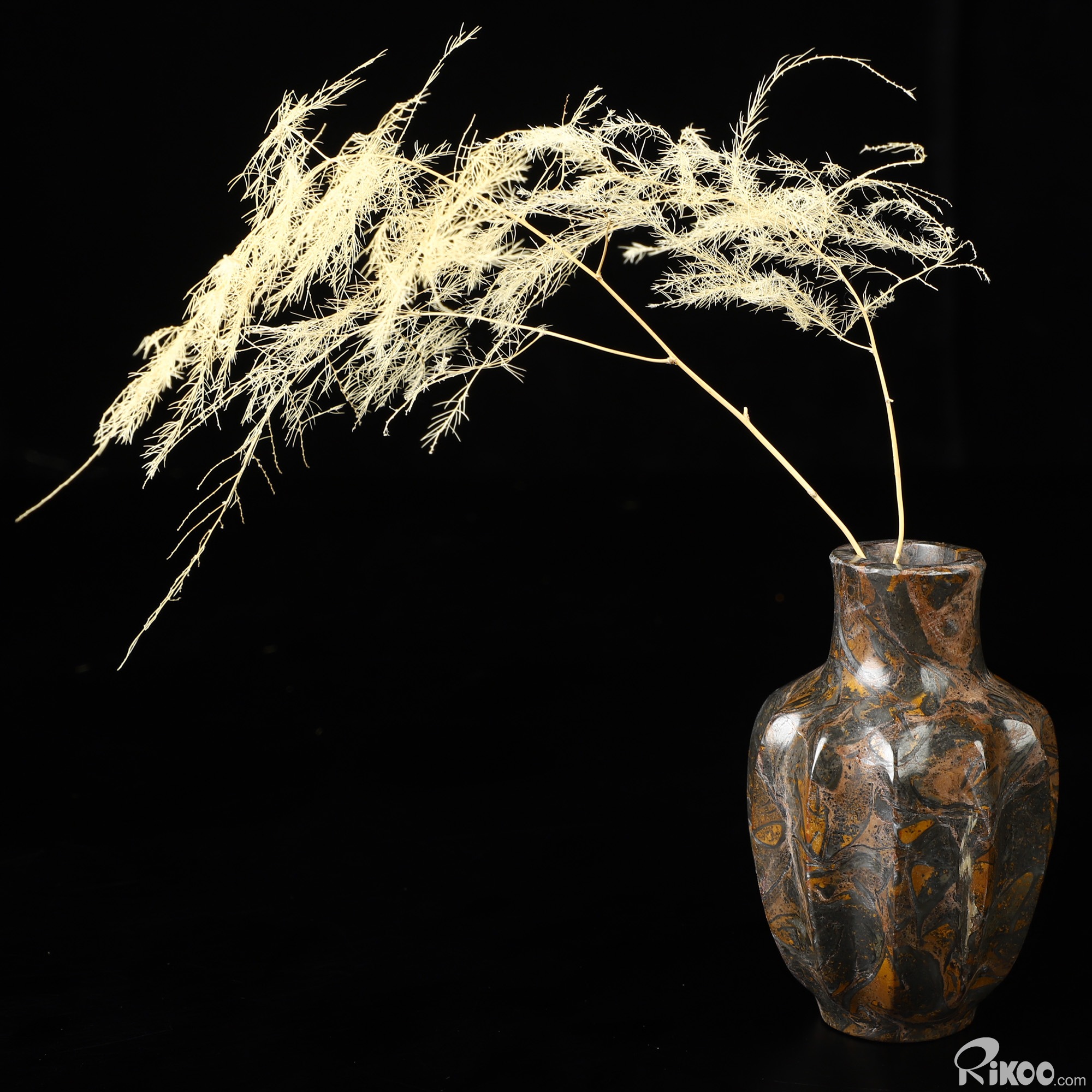 3.0" Floriated Jasper Hand Carved Crystal Vase Sculpture, Crystal Healing
