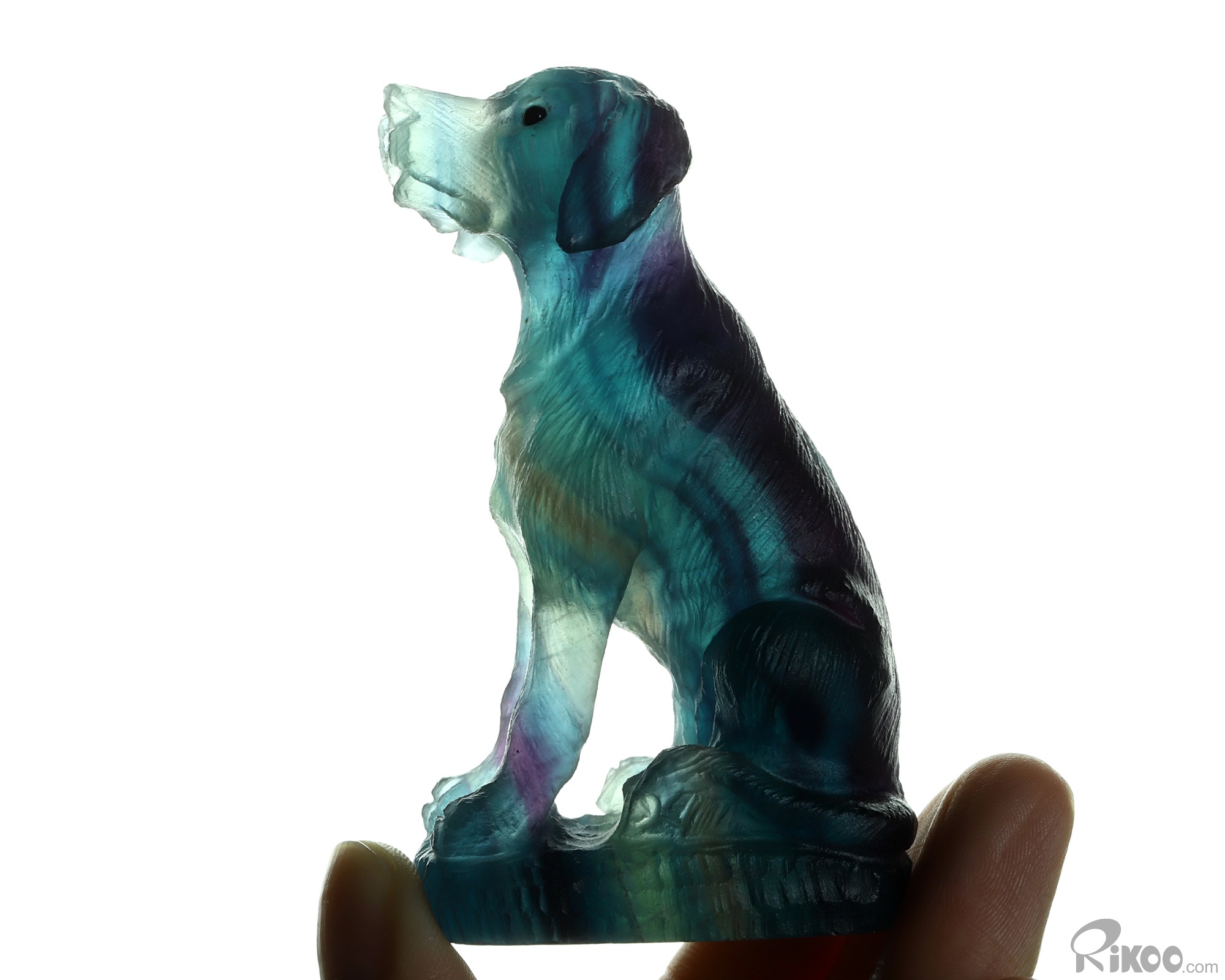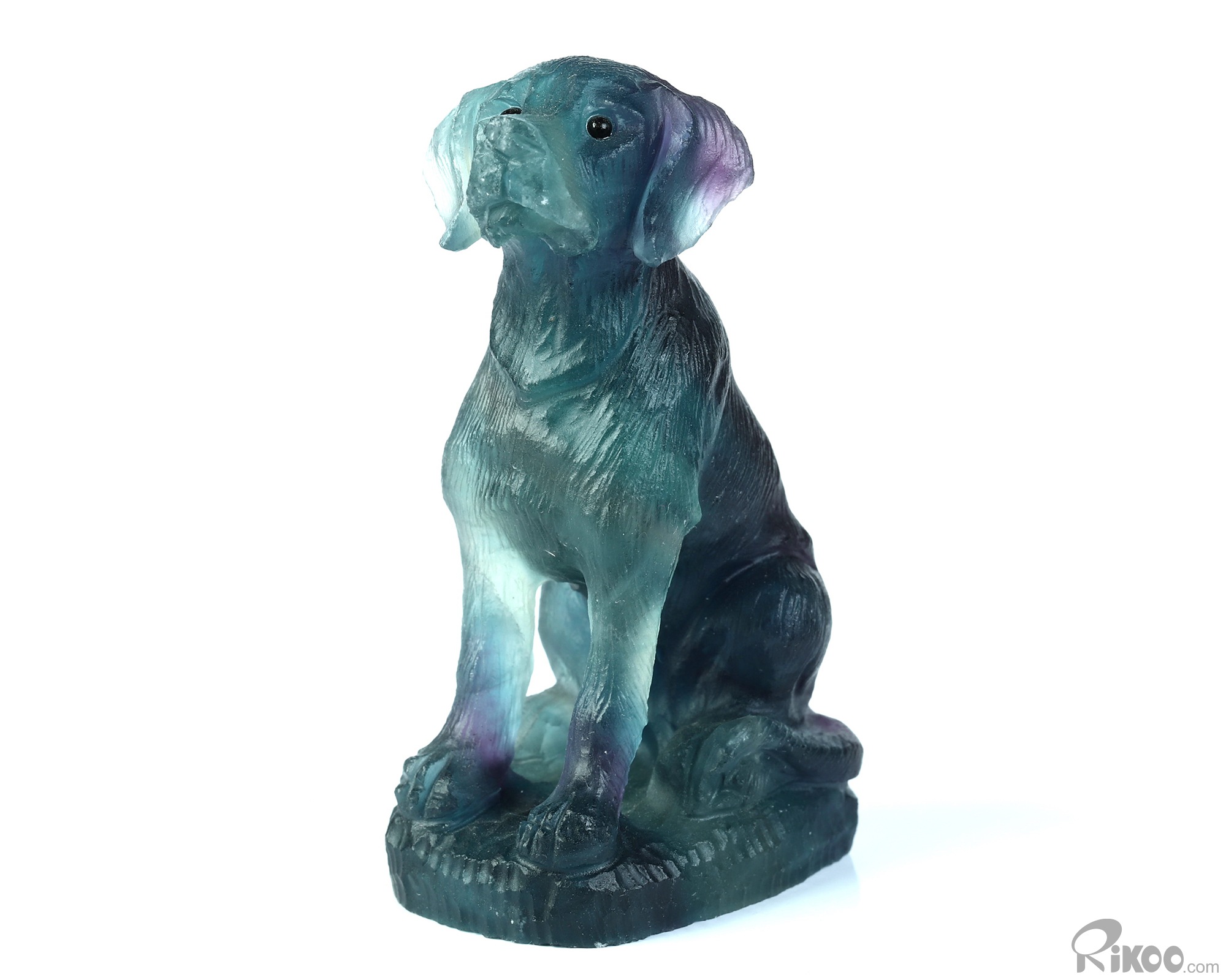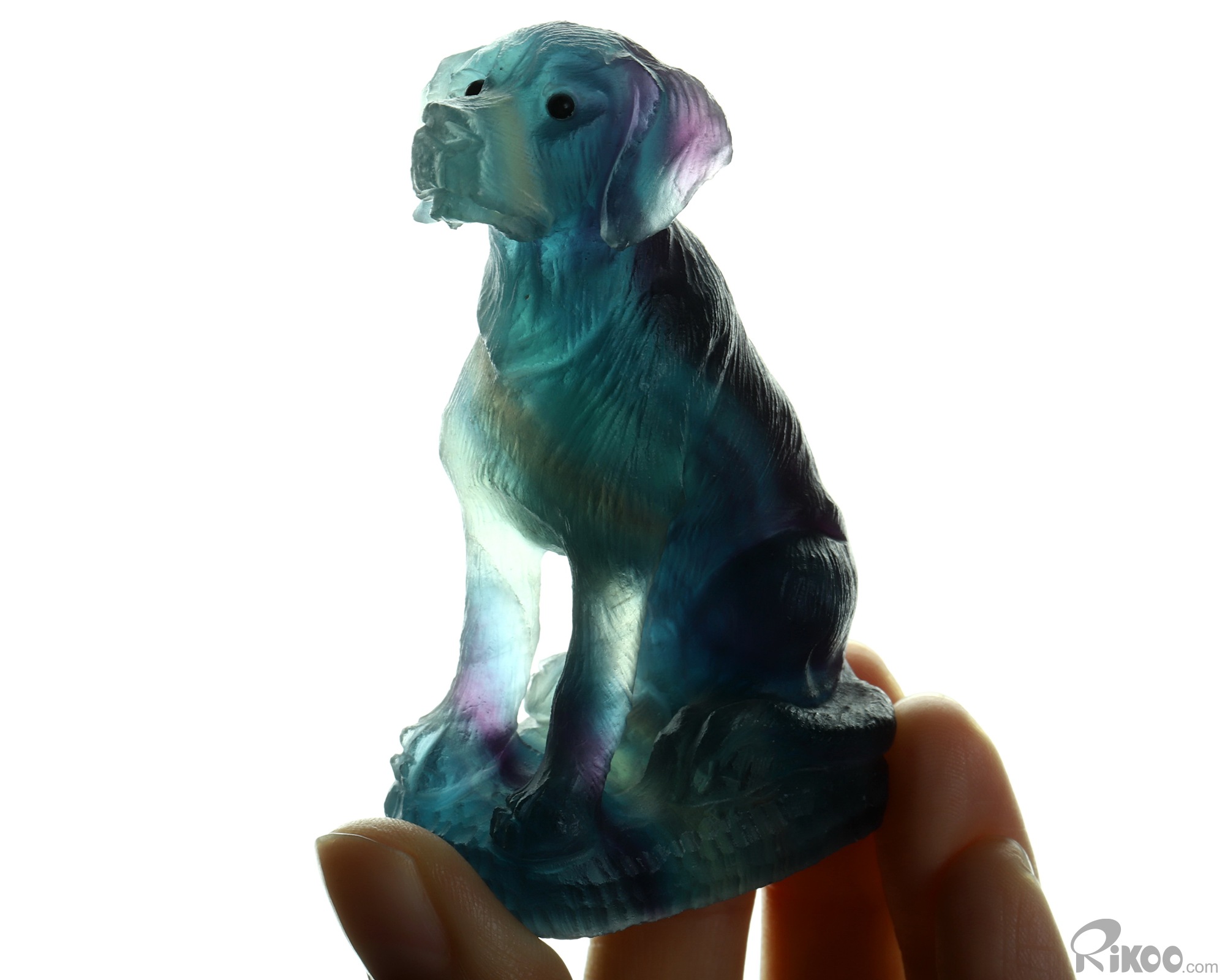 3.0" Fluorite Hand Carved Crystal Dog Sculpture, Crystal Healing