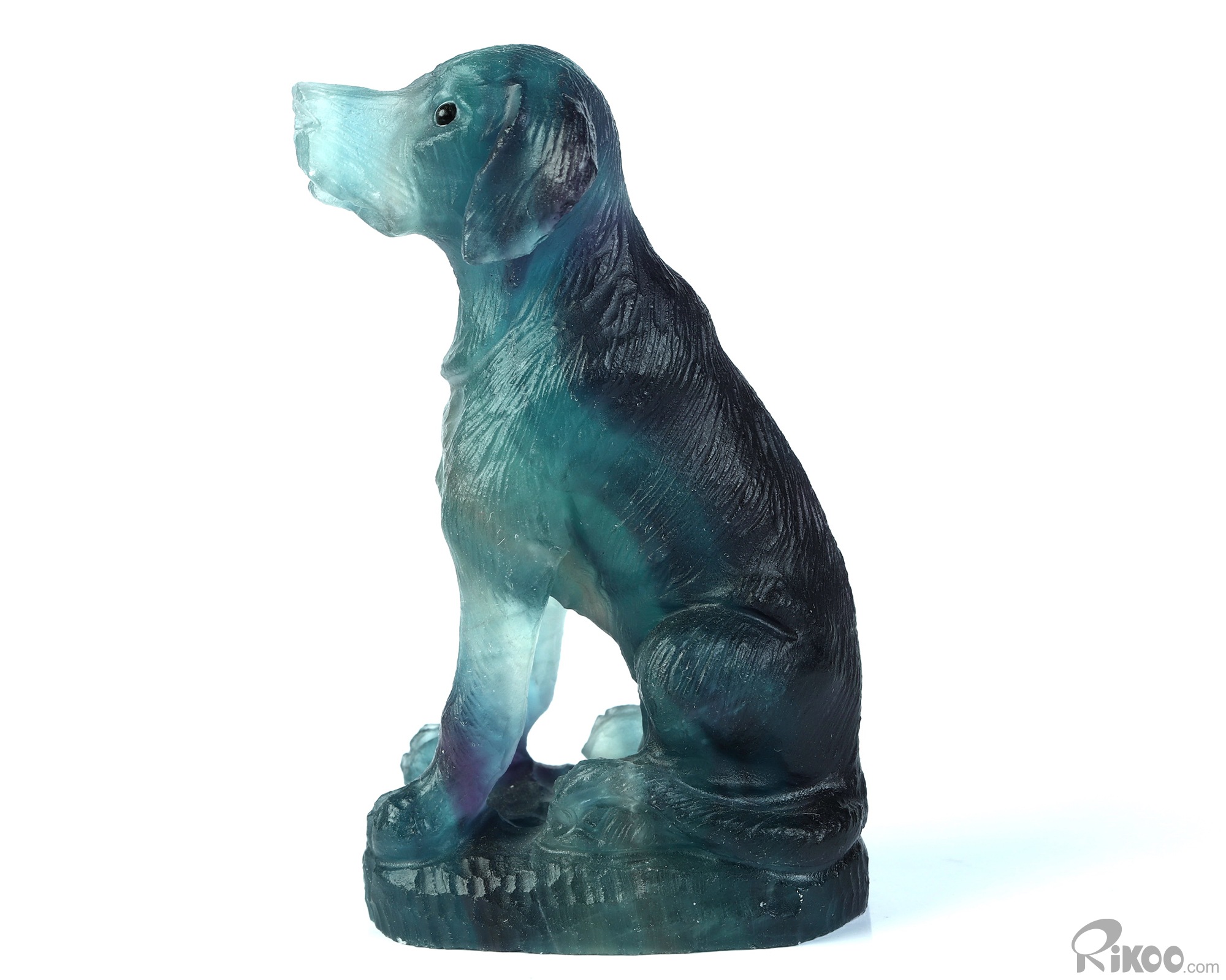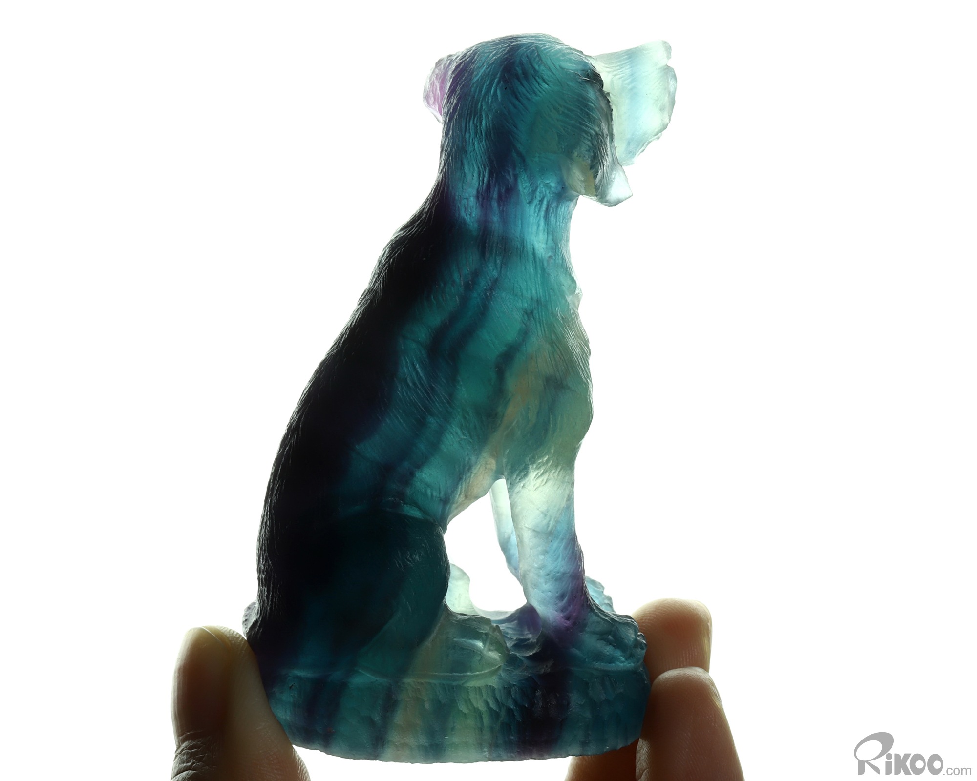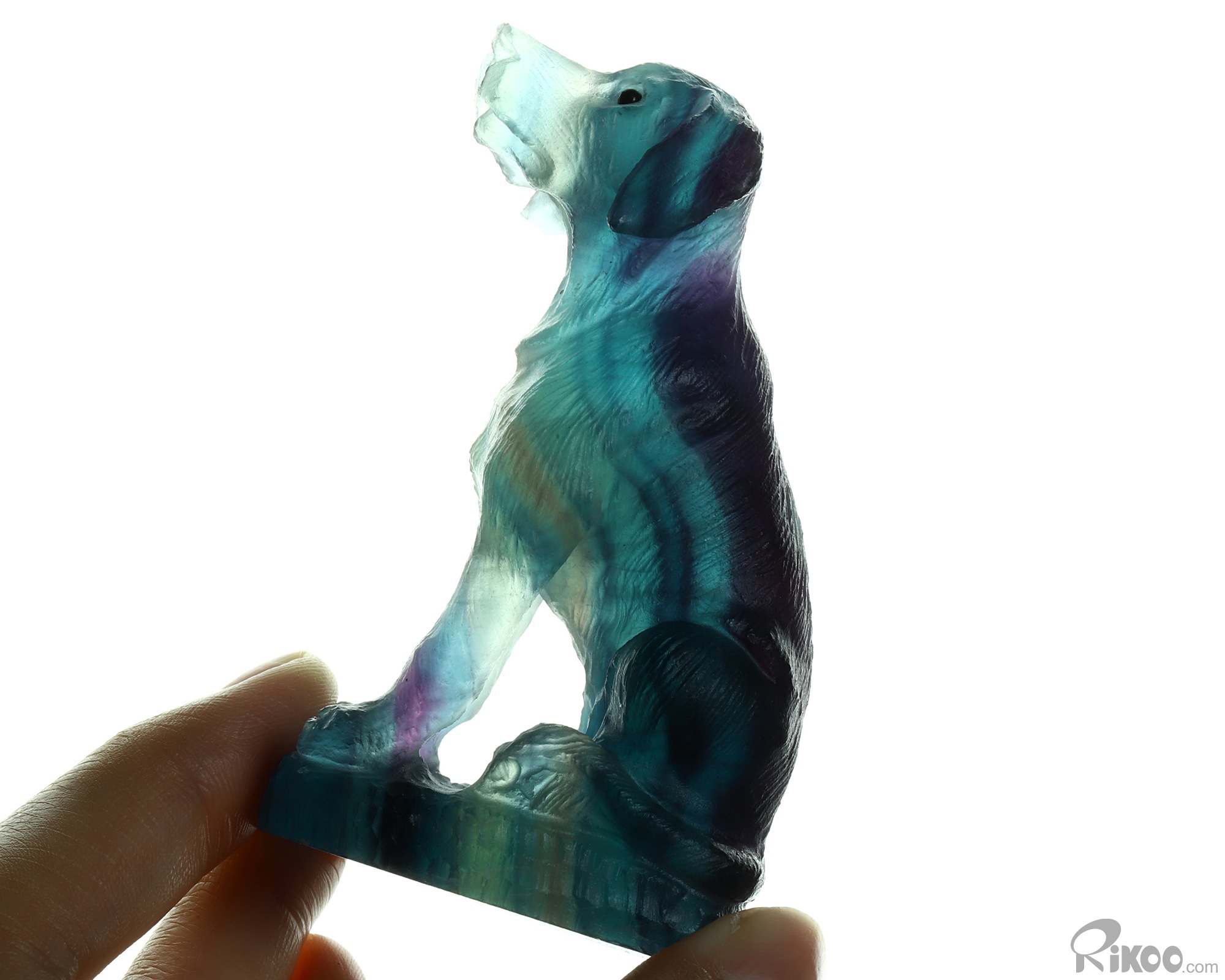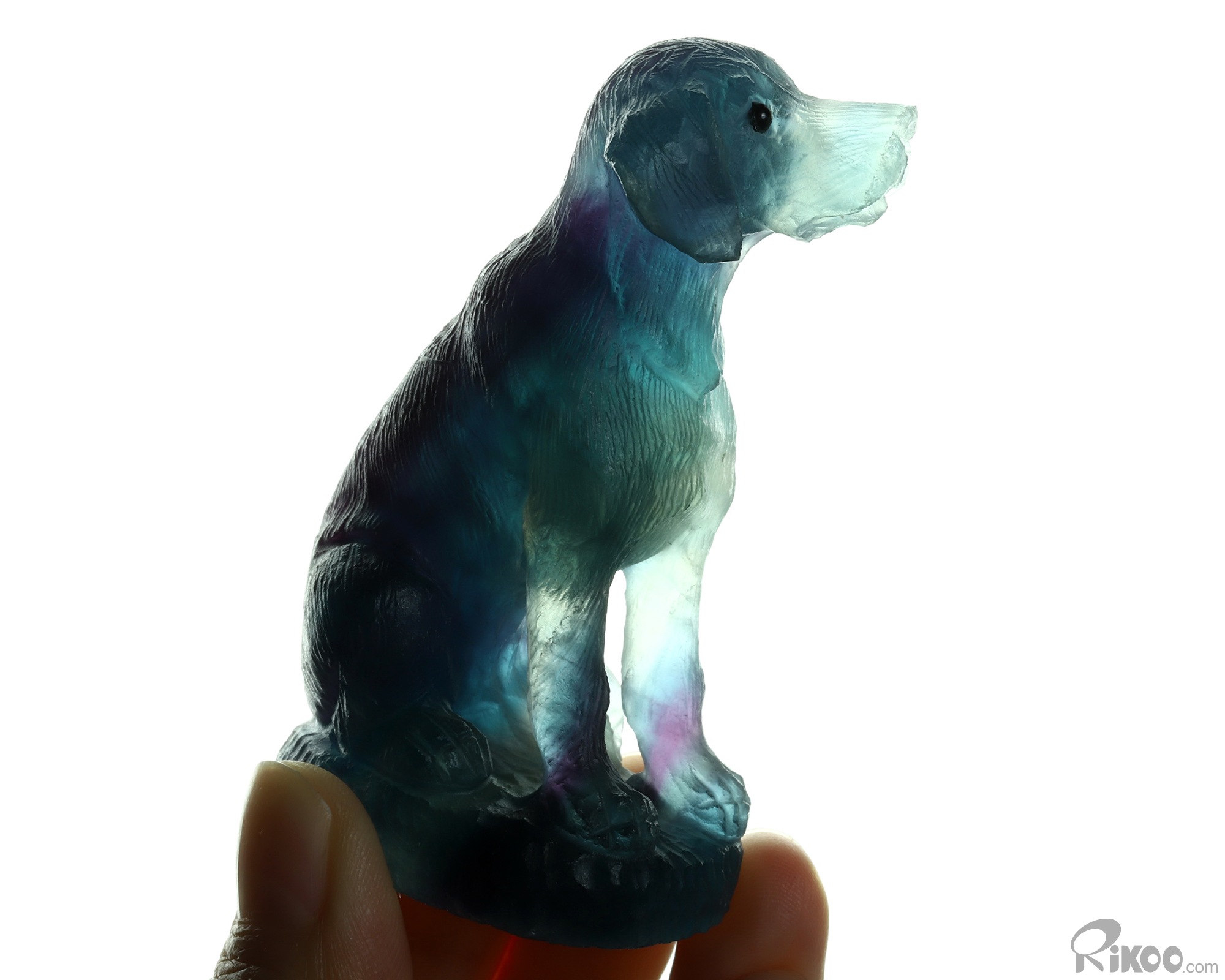 3.0" Fluorite Hand Carved Crystal Dog Sculpture, Crystal Healing