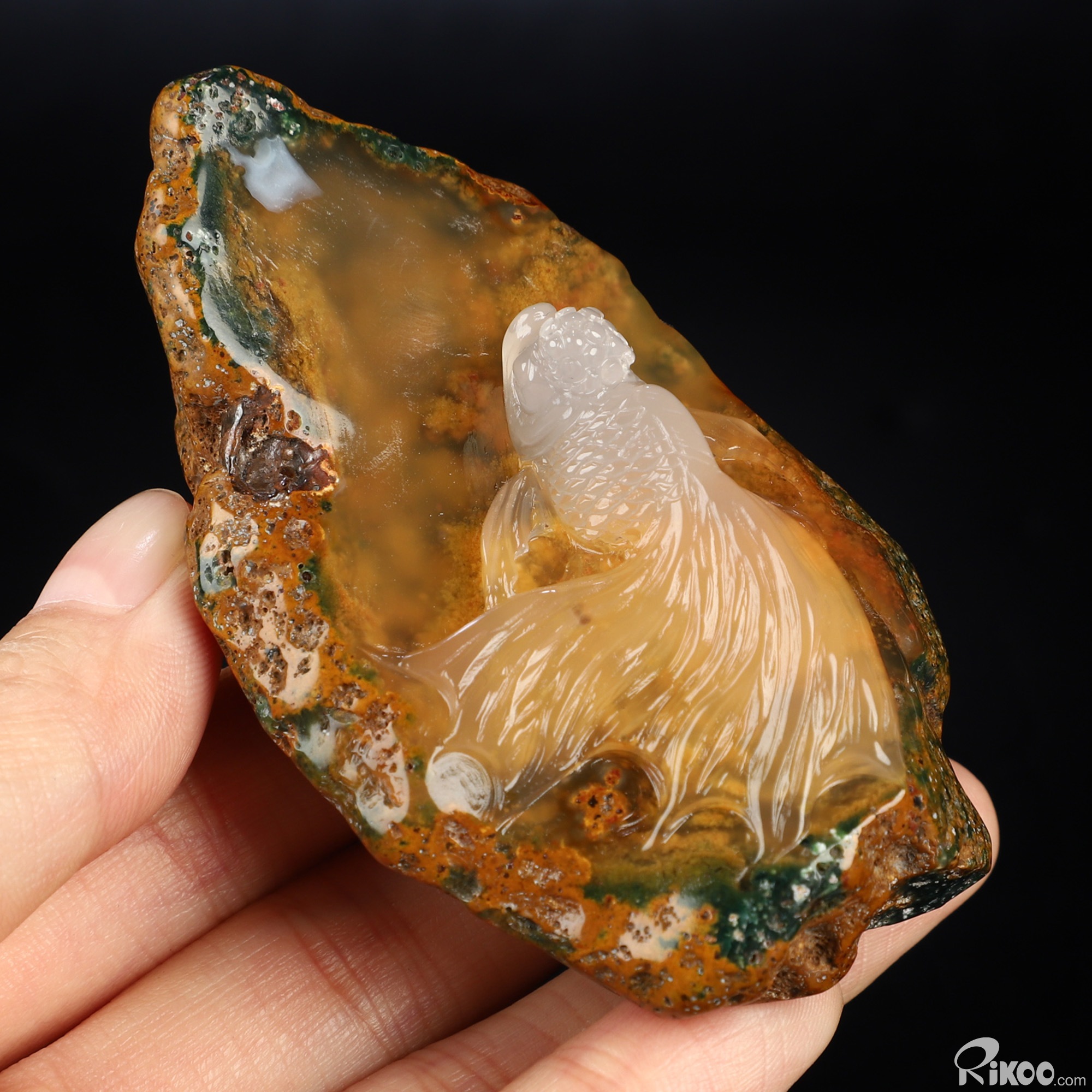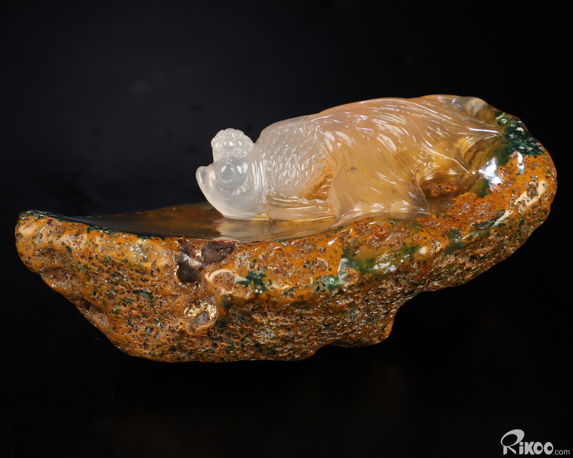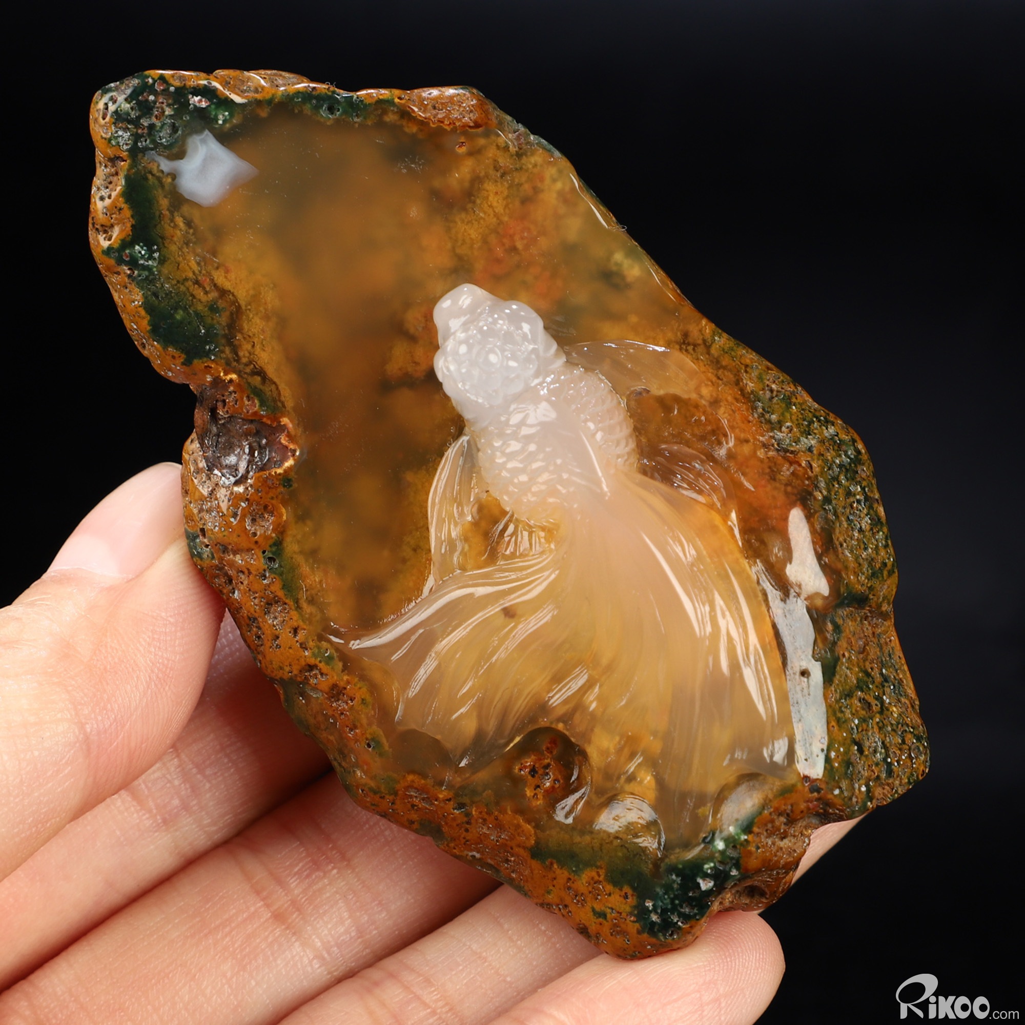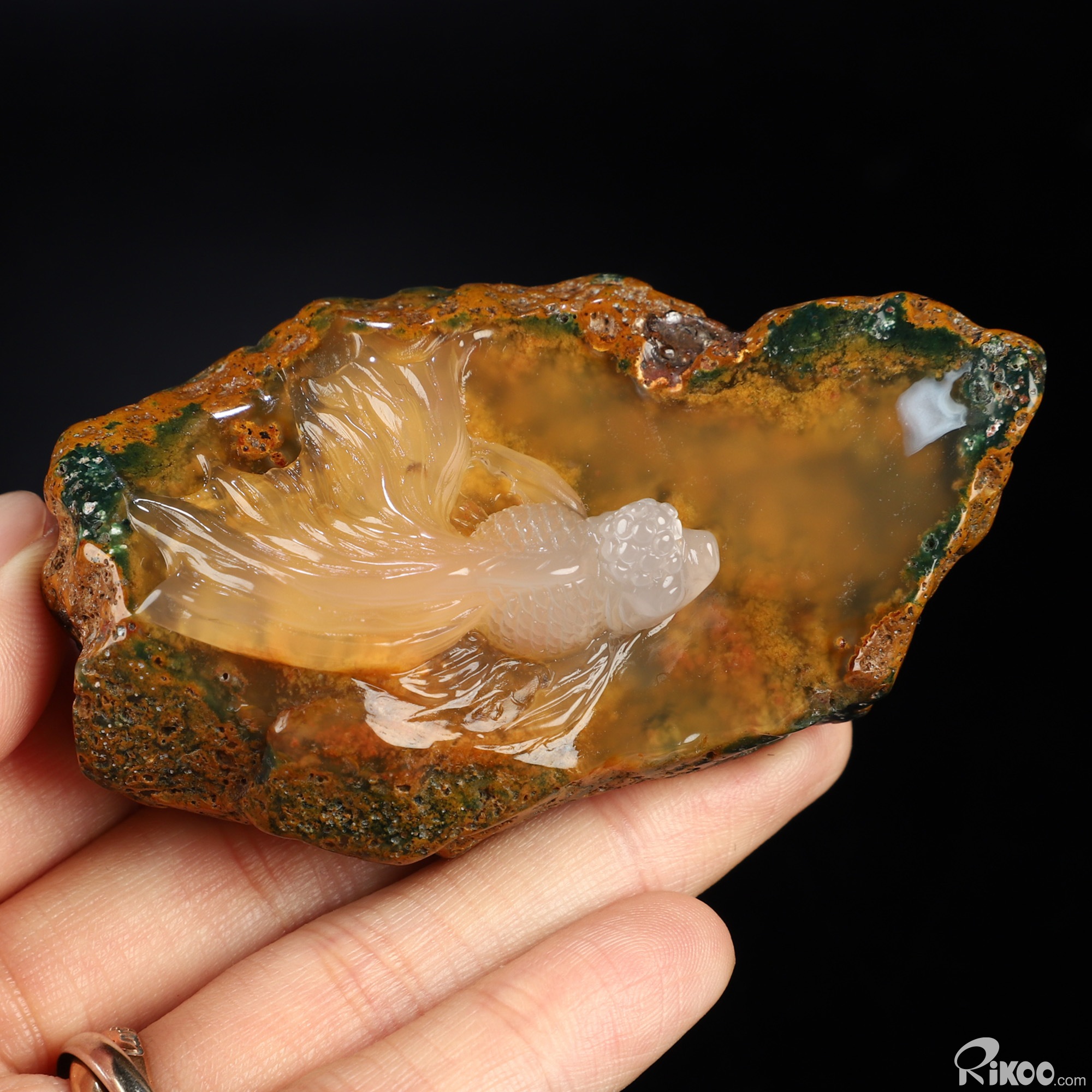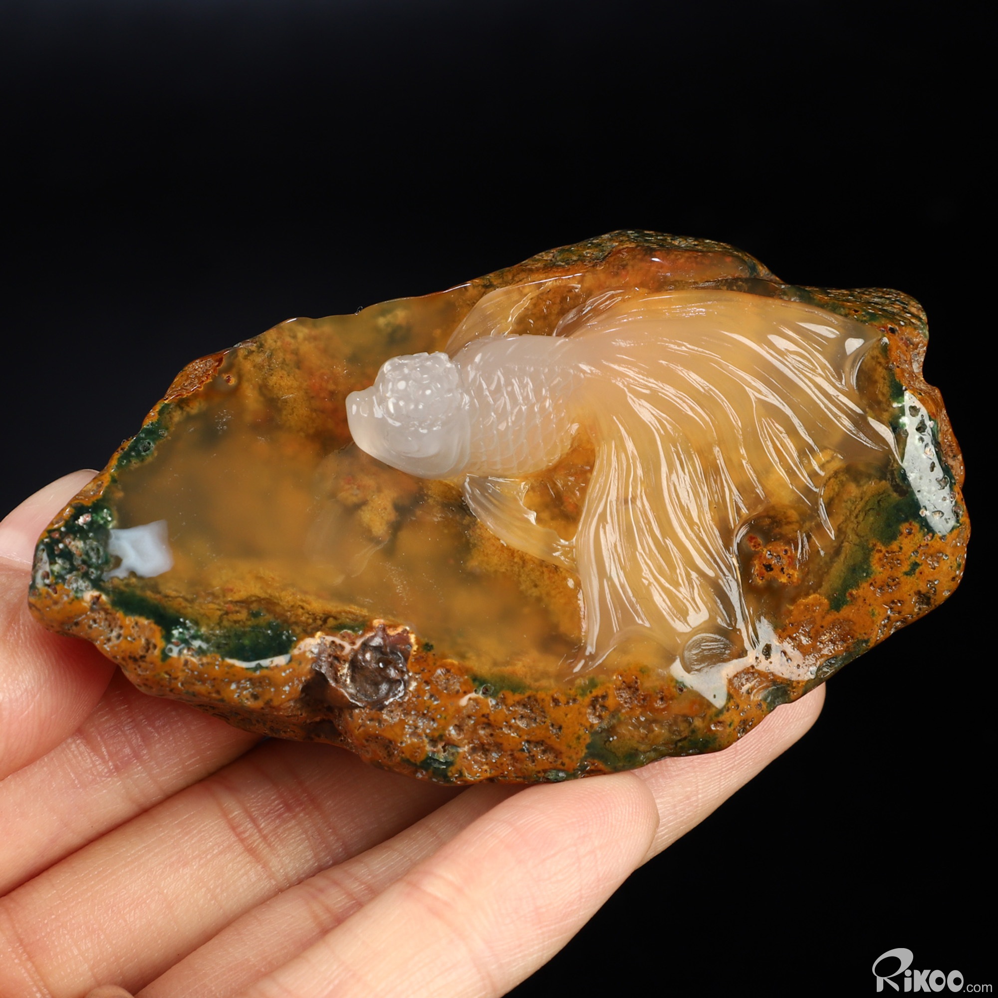 3.0" Indian Agate Hand Carved Crystal Goldfish Sculpture, Crystal Healing
