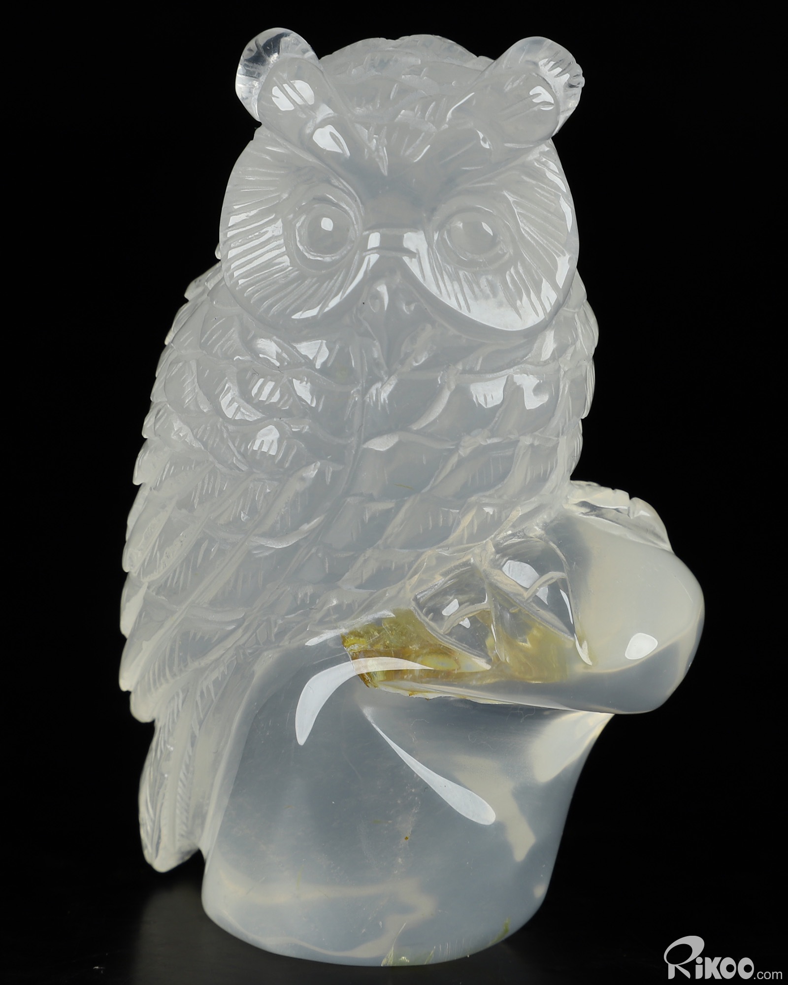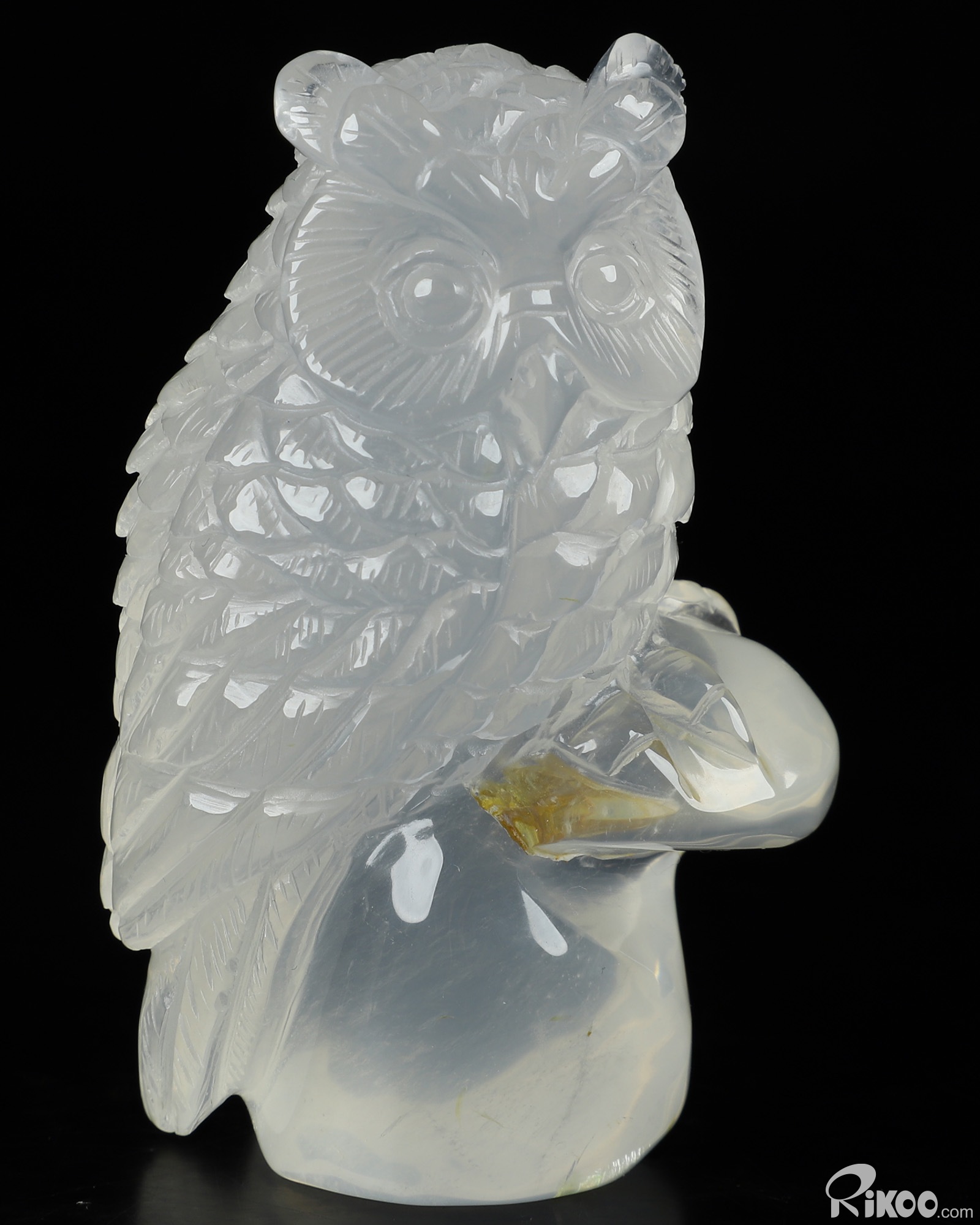 3.0" Milky Quartz Carved Crystal Owl, Realistic