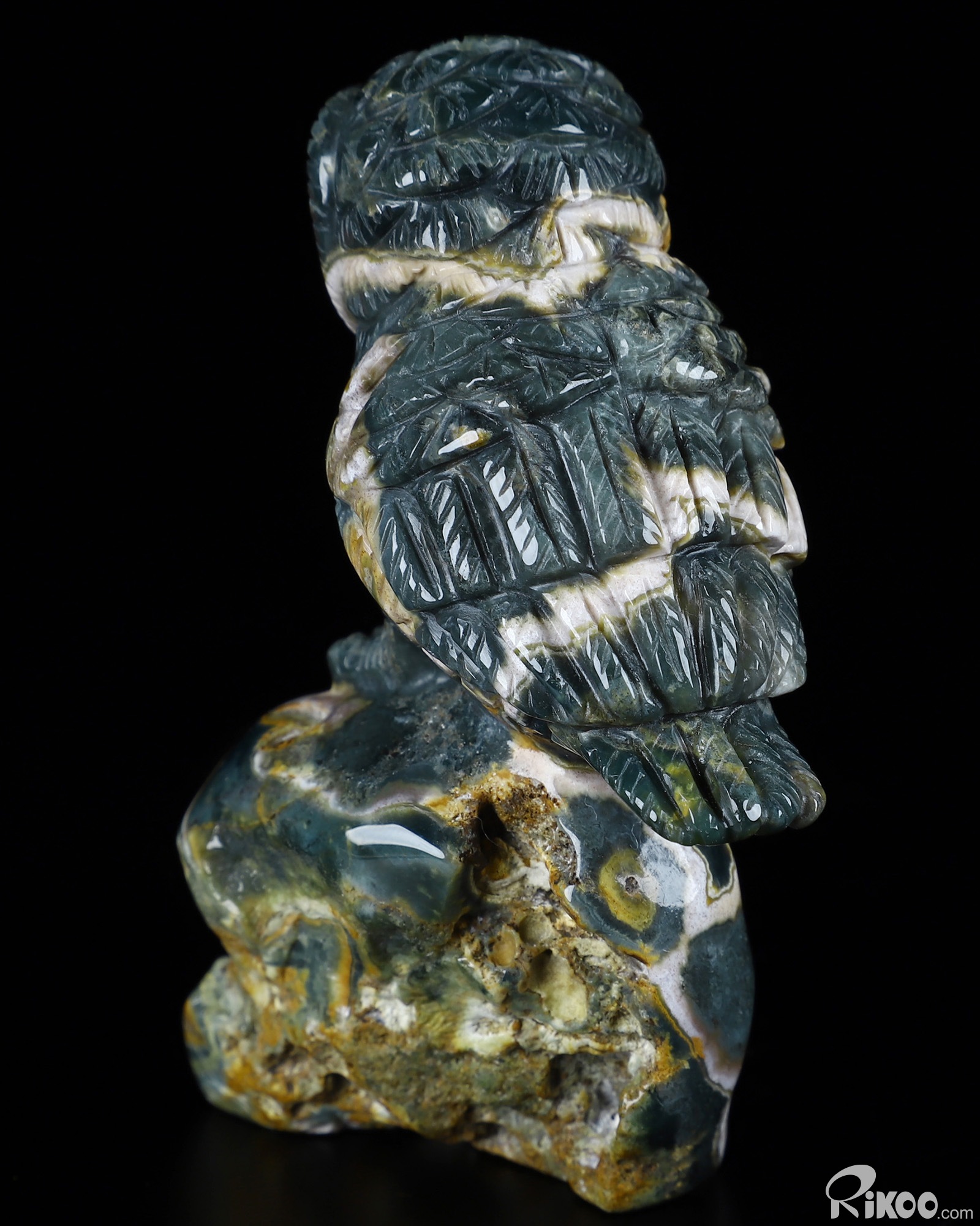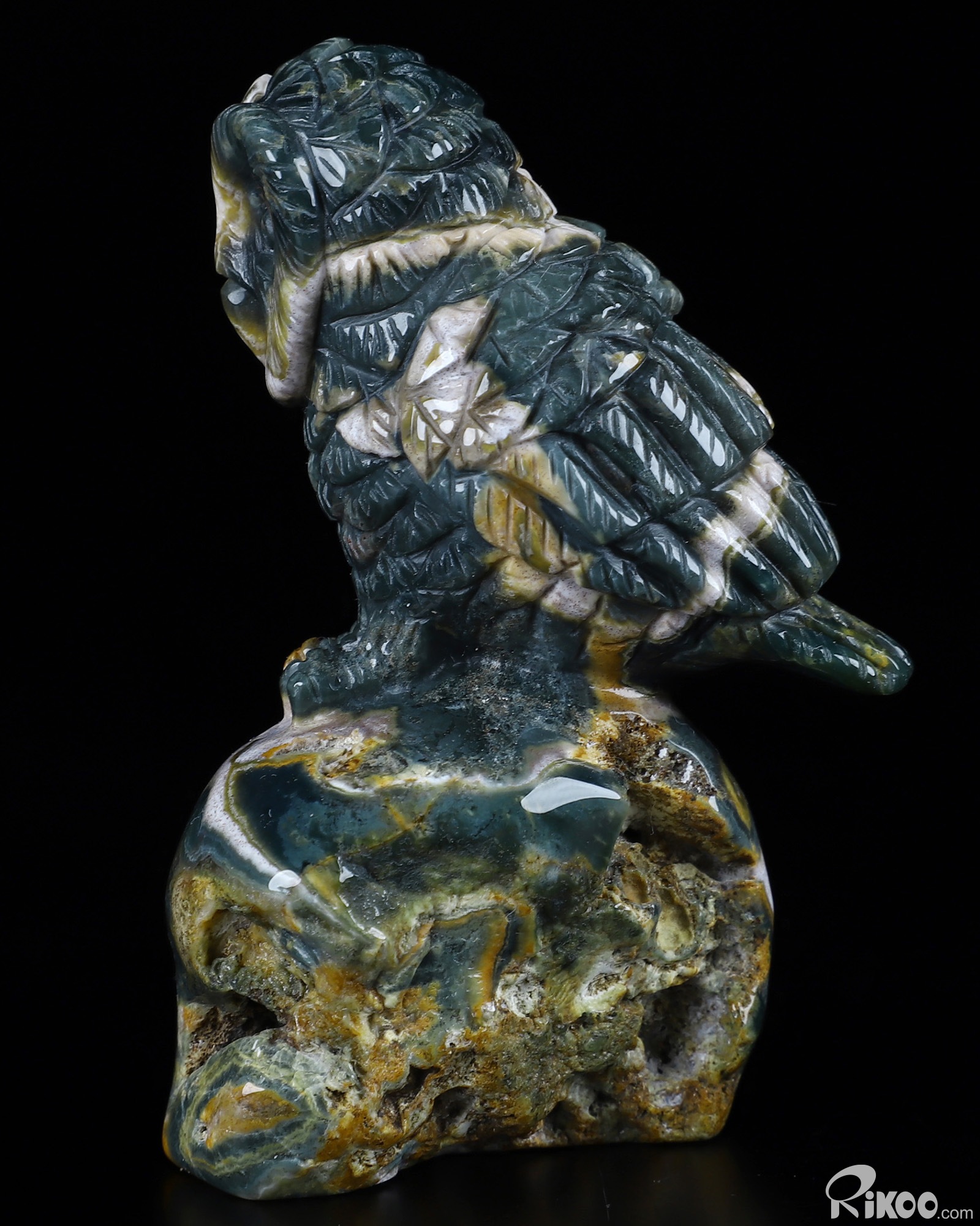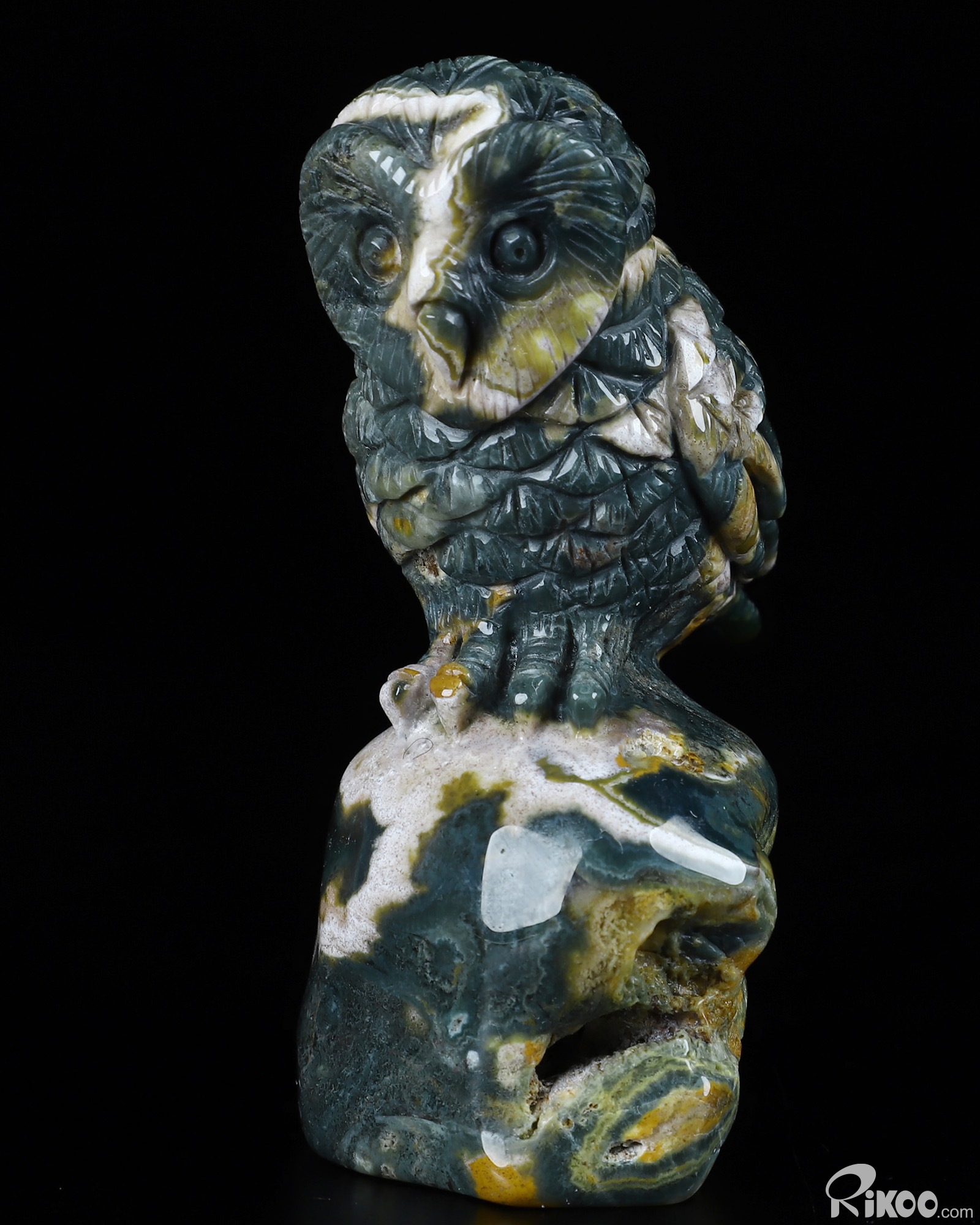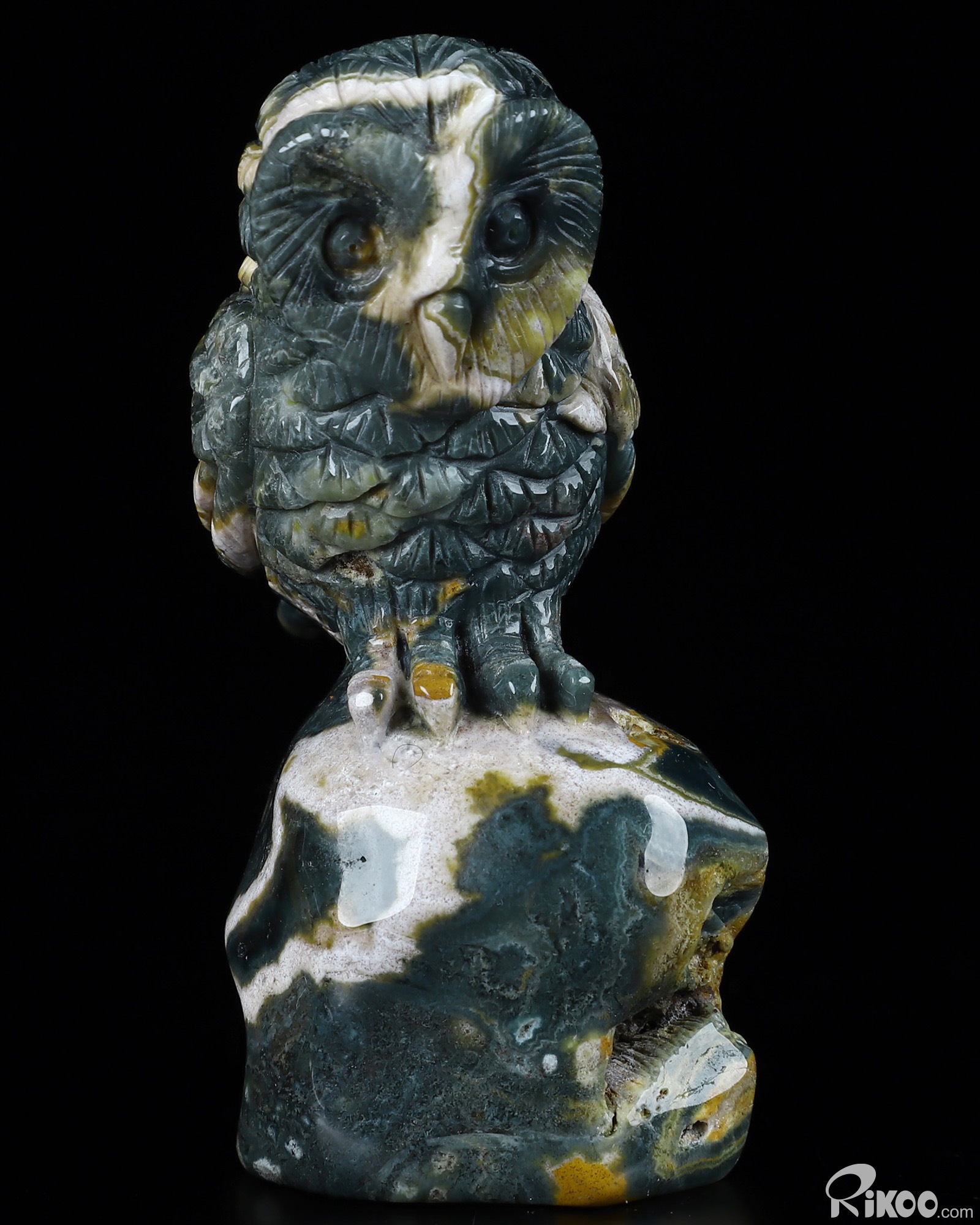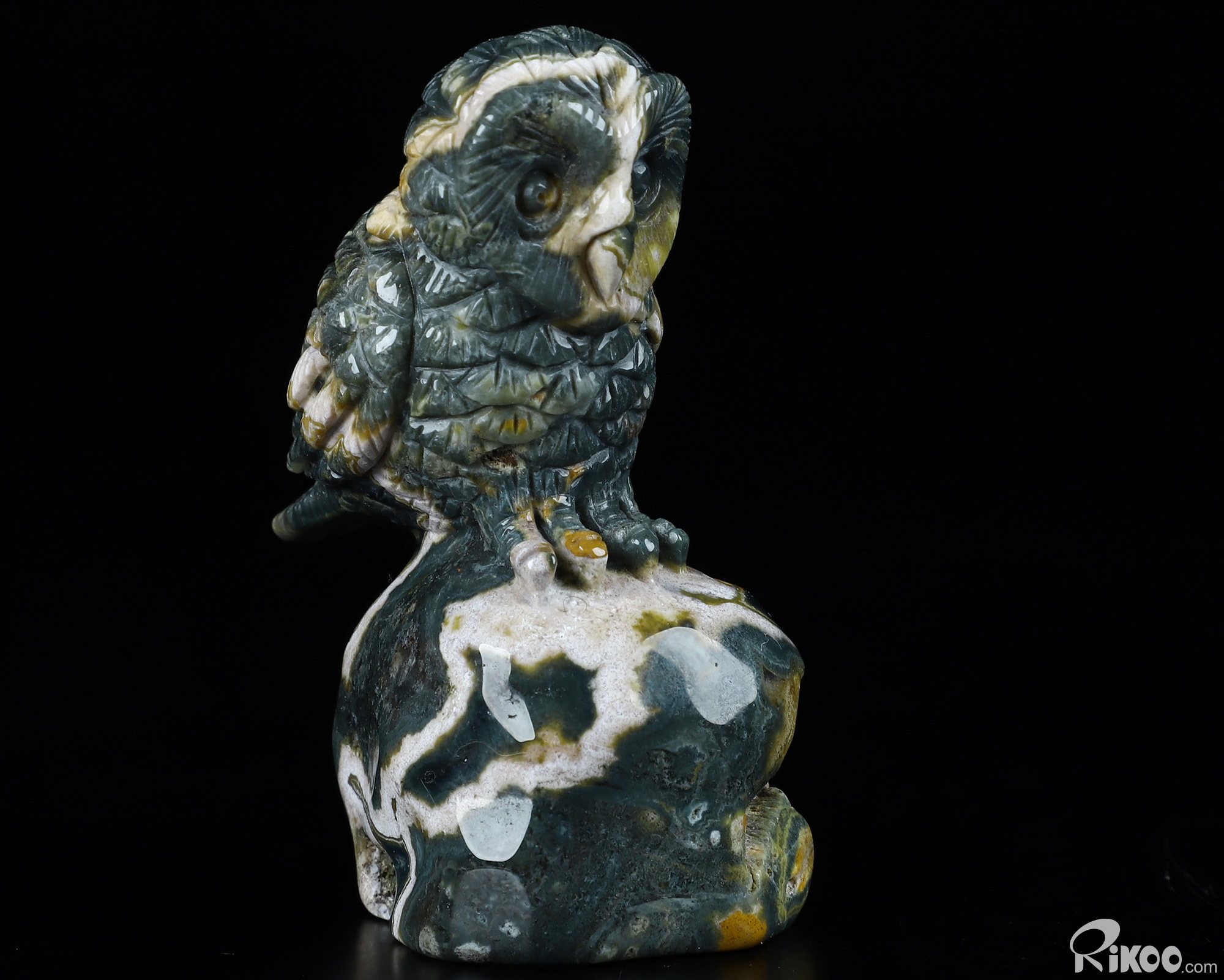 3.0" Ocean Jasper Carved Crystal Owl, Realistic, Crystal Healing