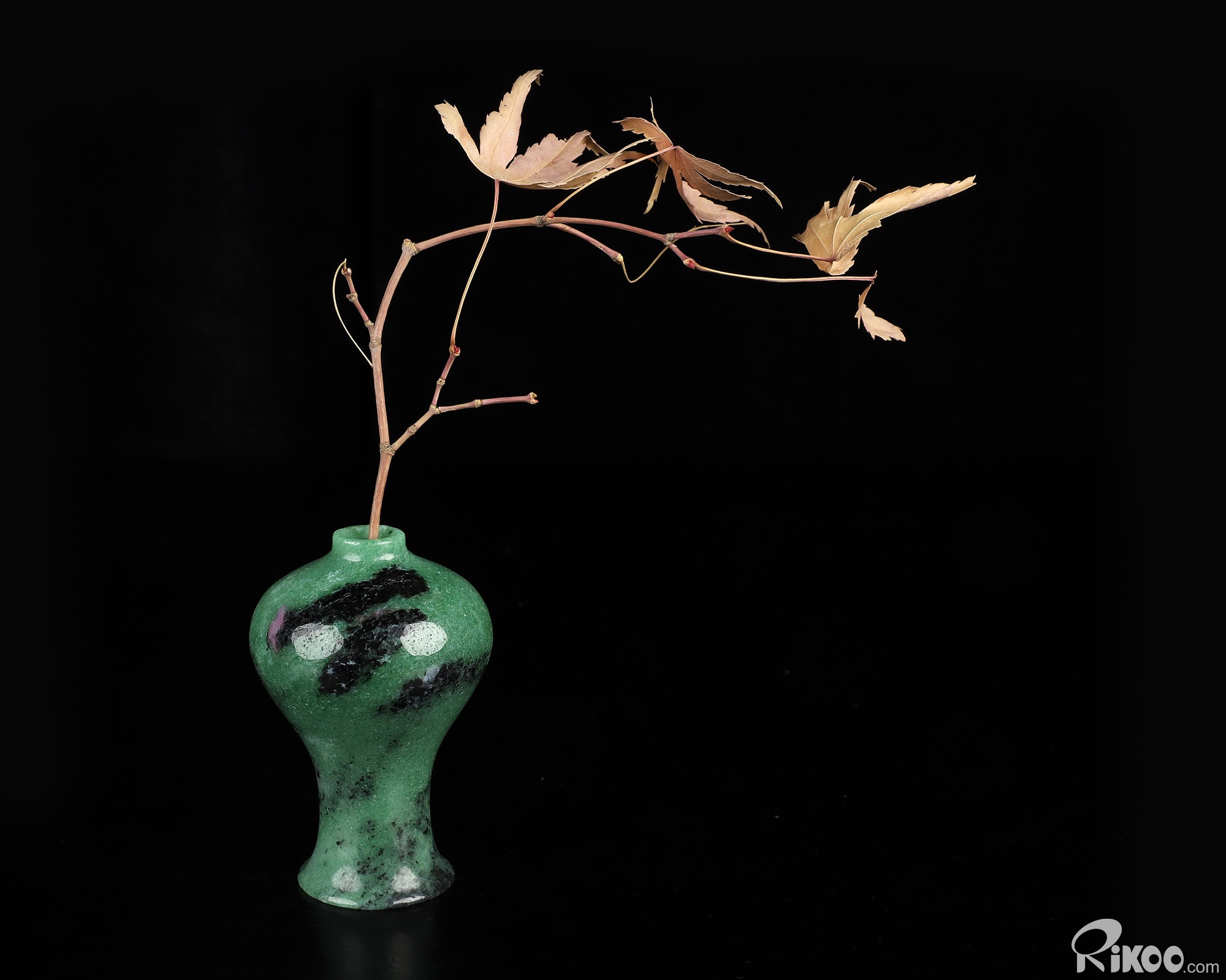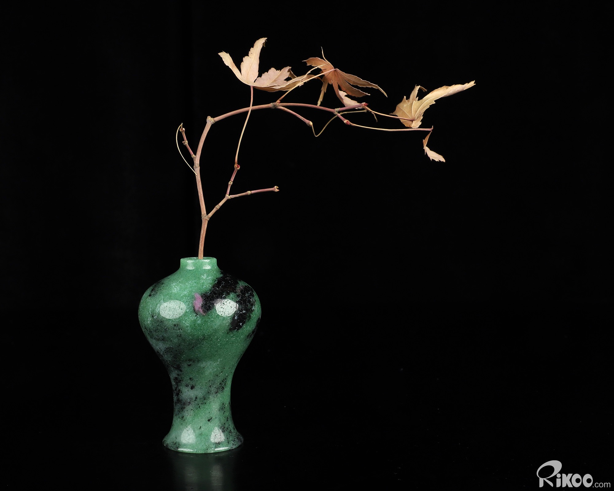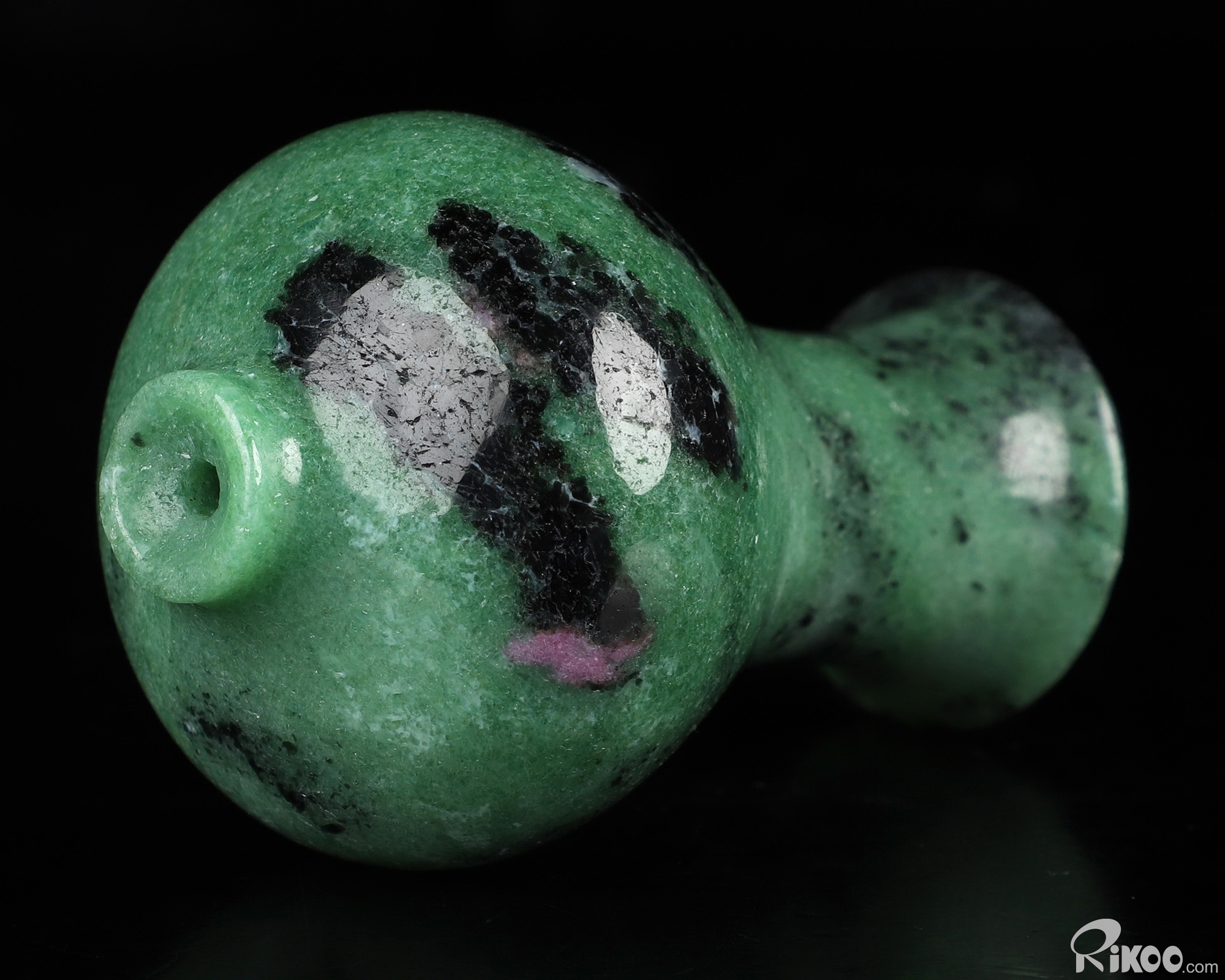 You are looking at a Ruby Zoisite Vase sculpture. The sculpture is 3 inches long.