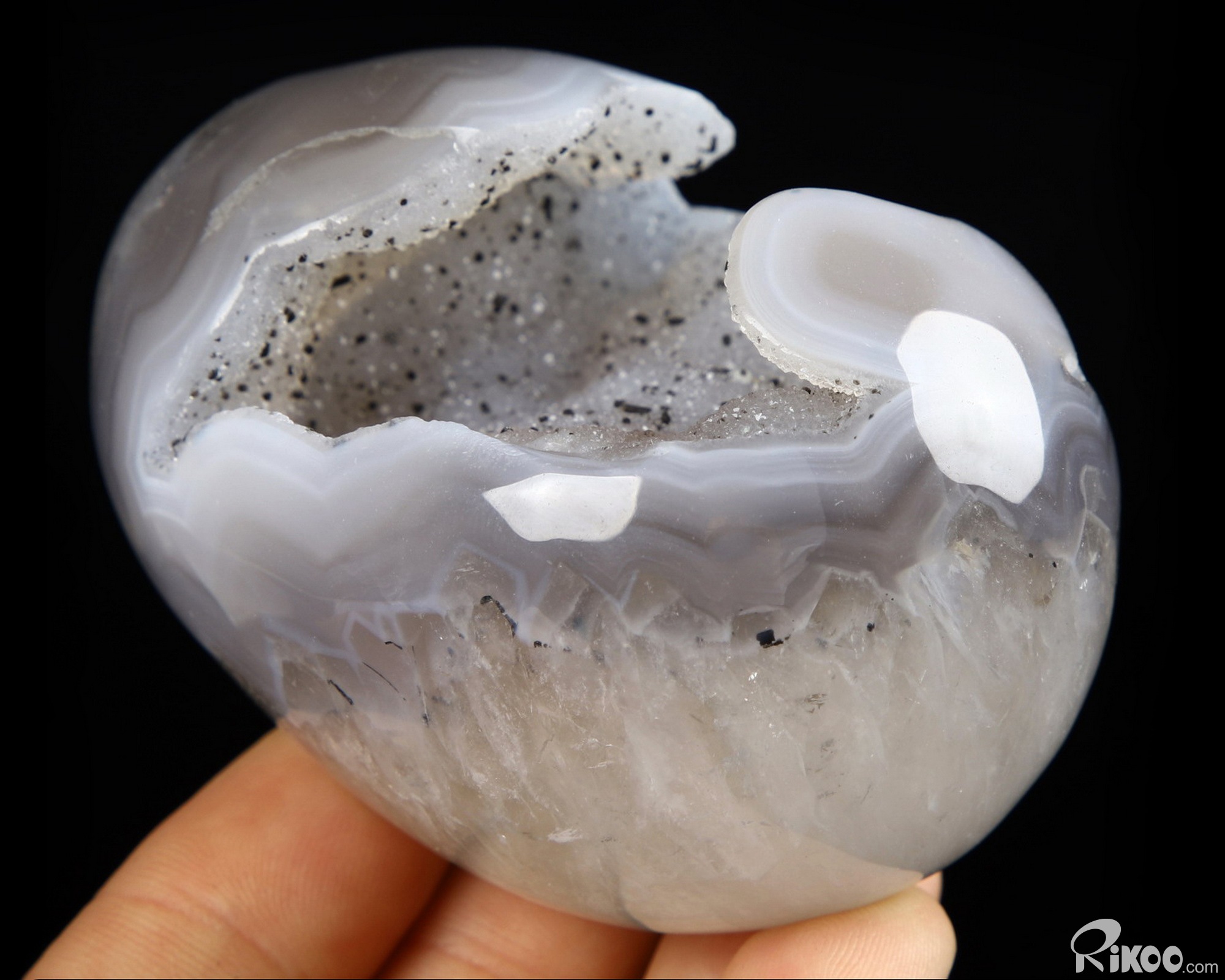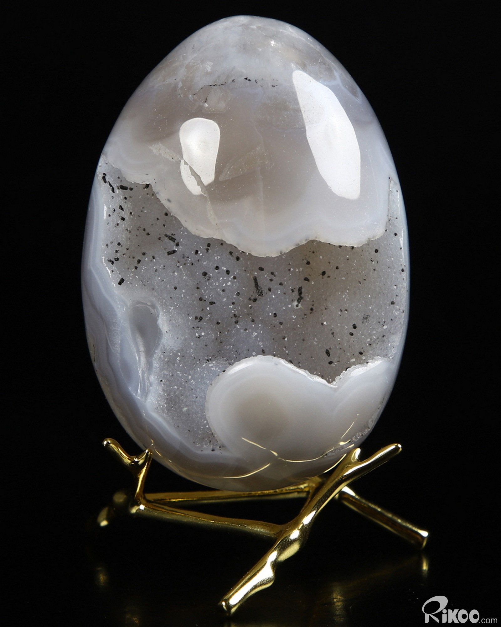 3.1" Agate Geode Carved Crystal Egg, Crystal Healing