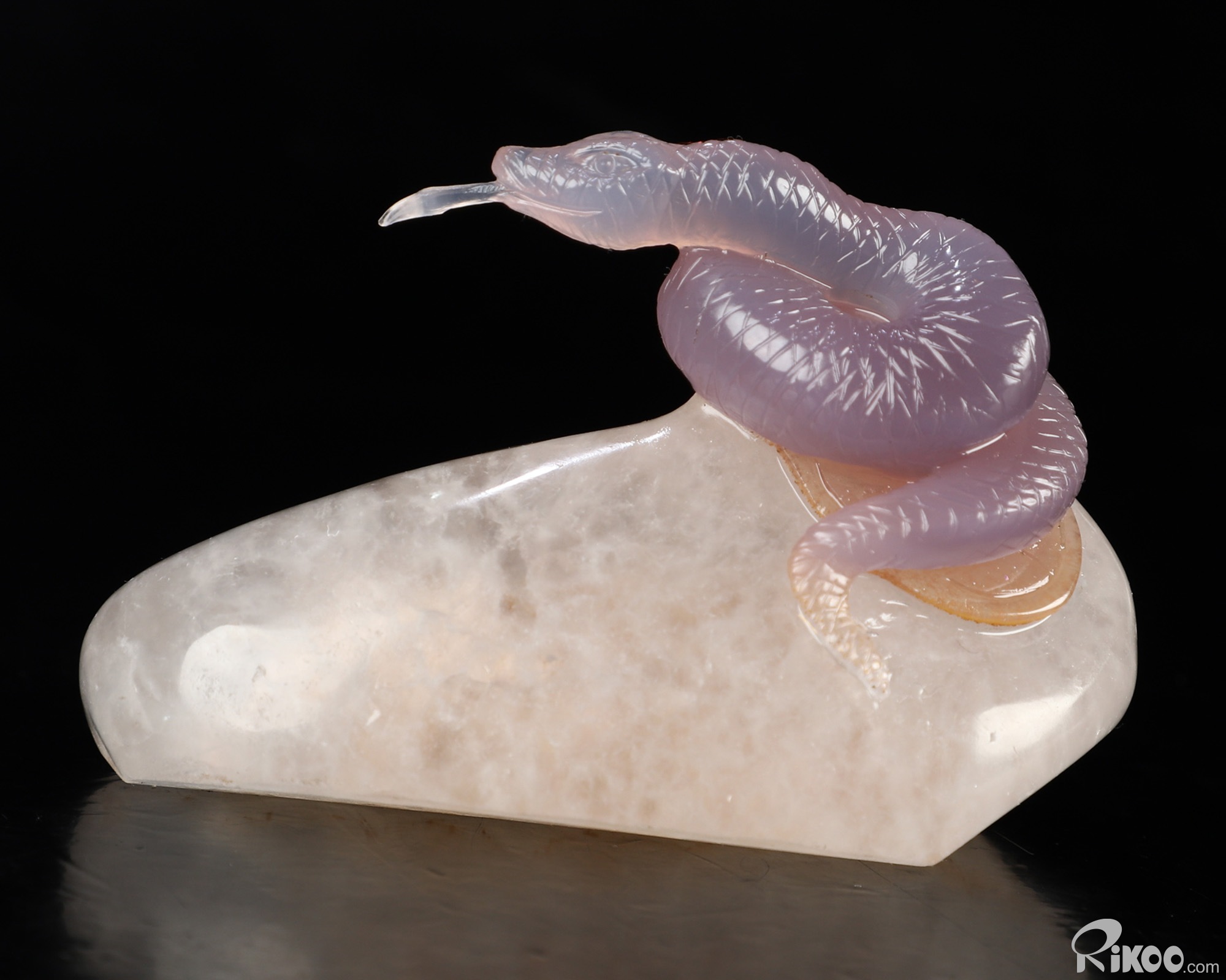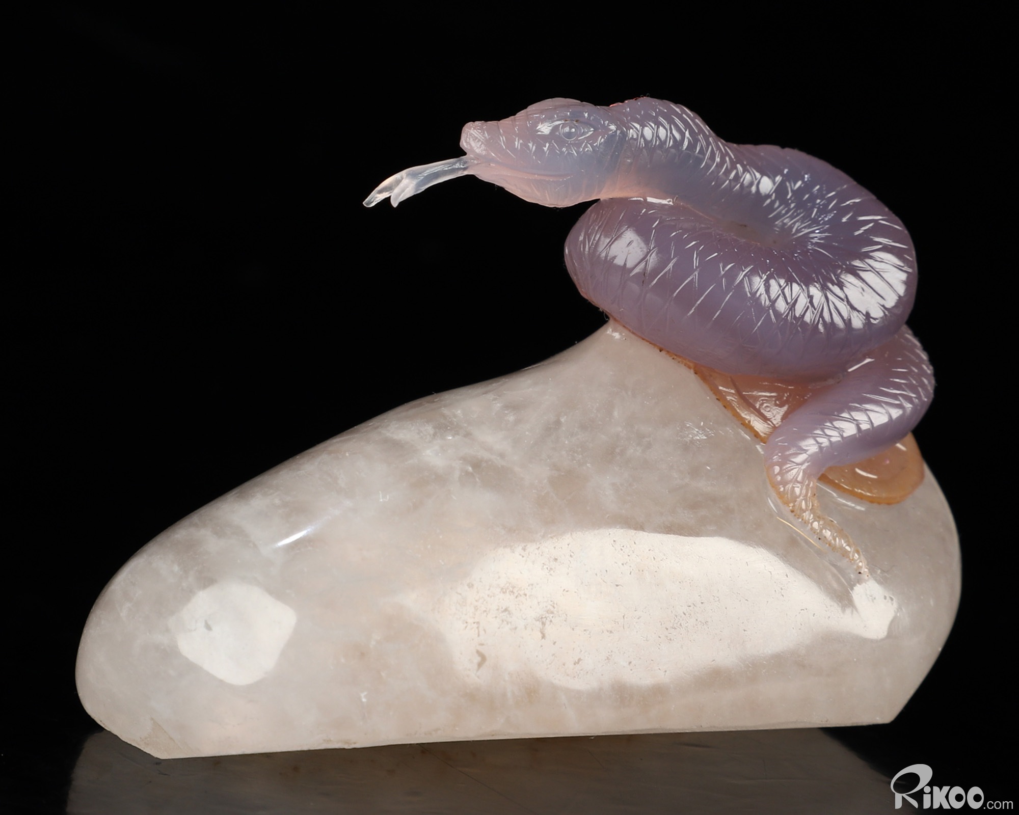 Dangerous! 3.1" Agate Hand Carved Crystal Snake Sculpture, Crystal Healing