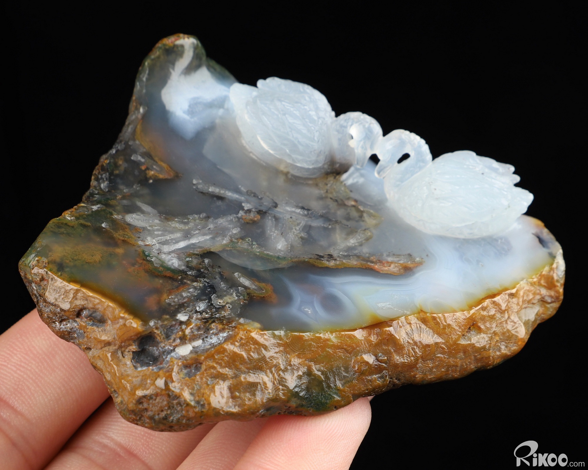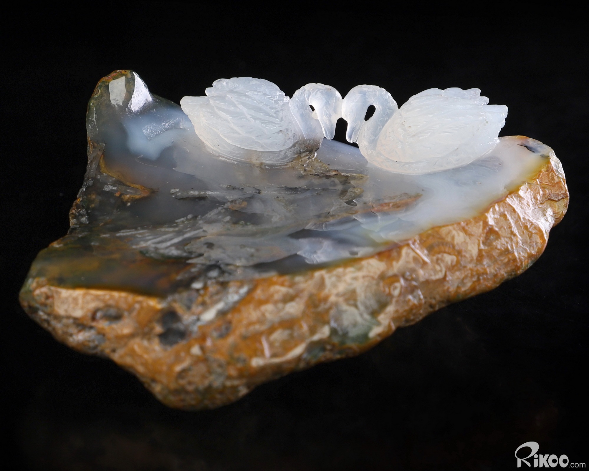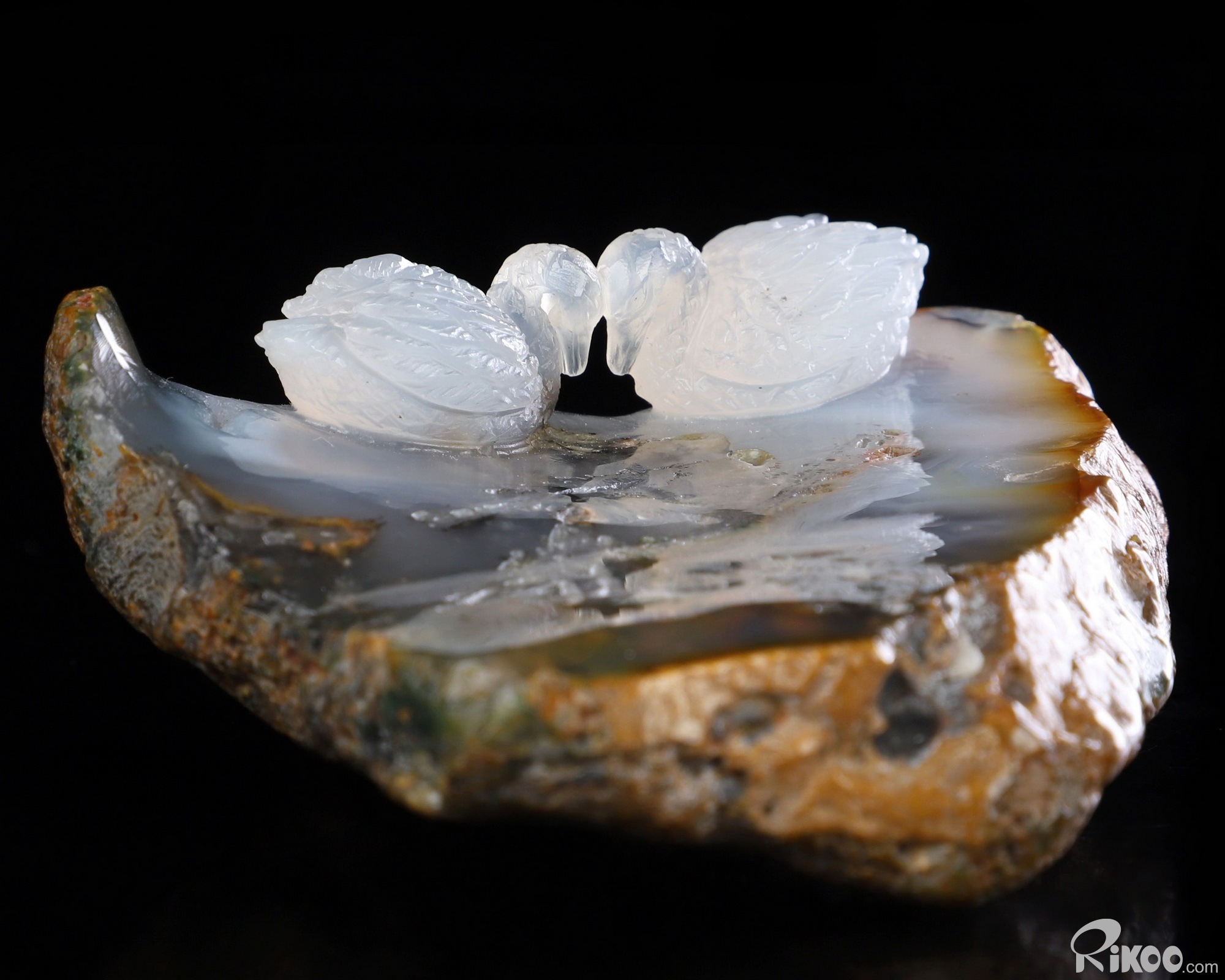 3.1" Agate Hand Carved Crystal Swans Sculpture, Crystal Healing