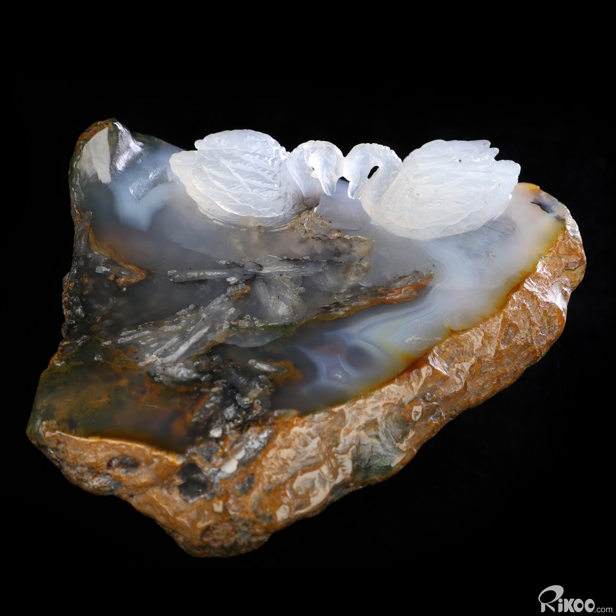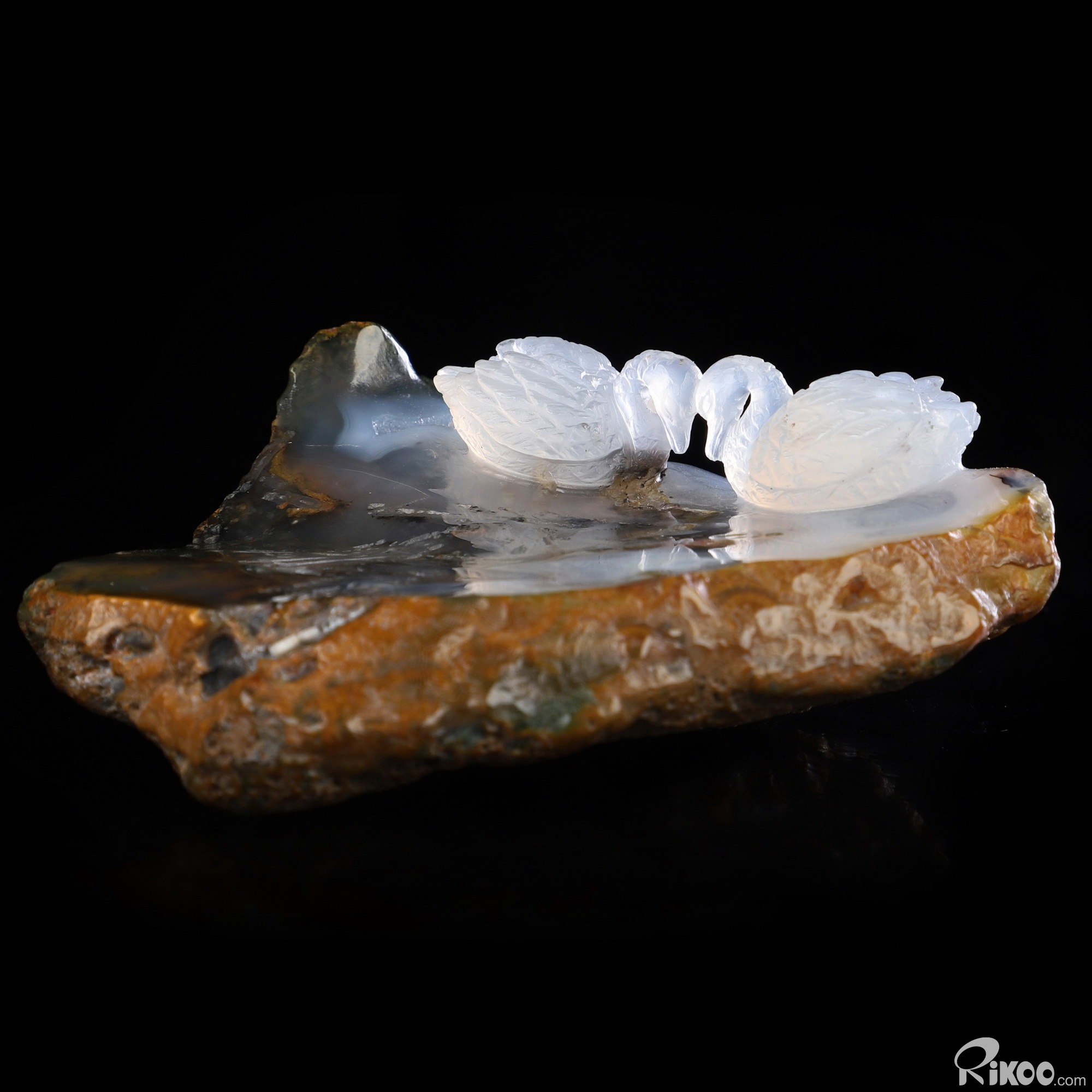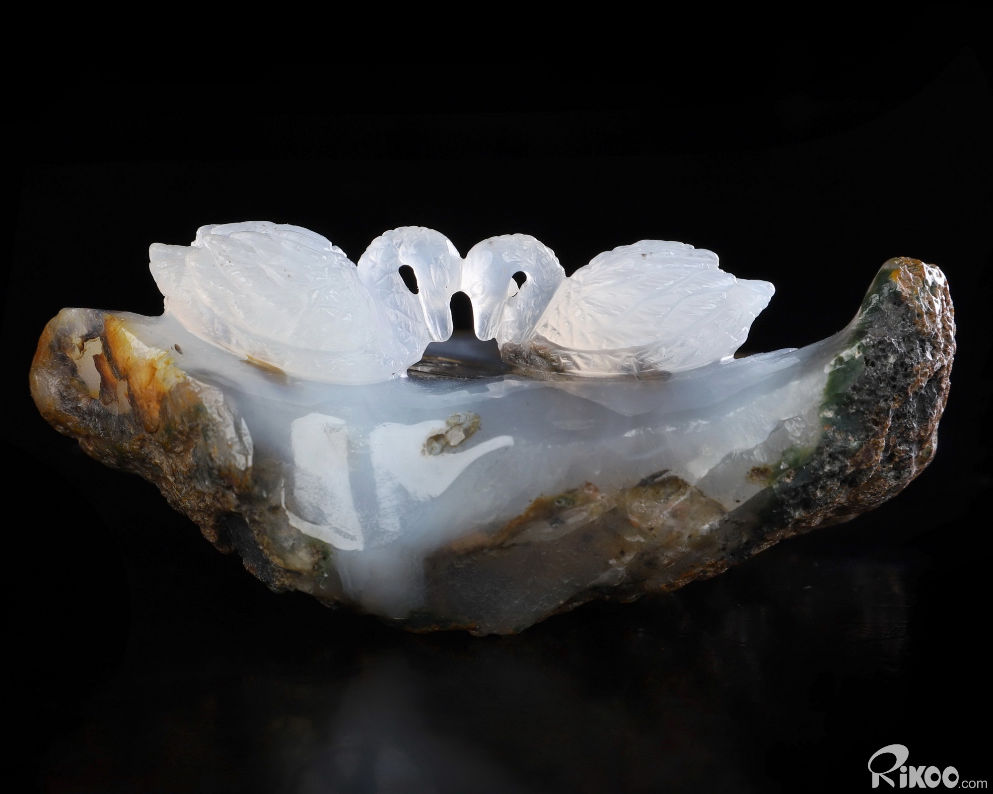 3.1" Agate Hand Carved Crystal Swans Sculpture, Crystal Healing