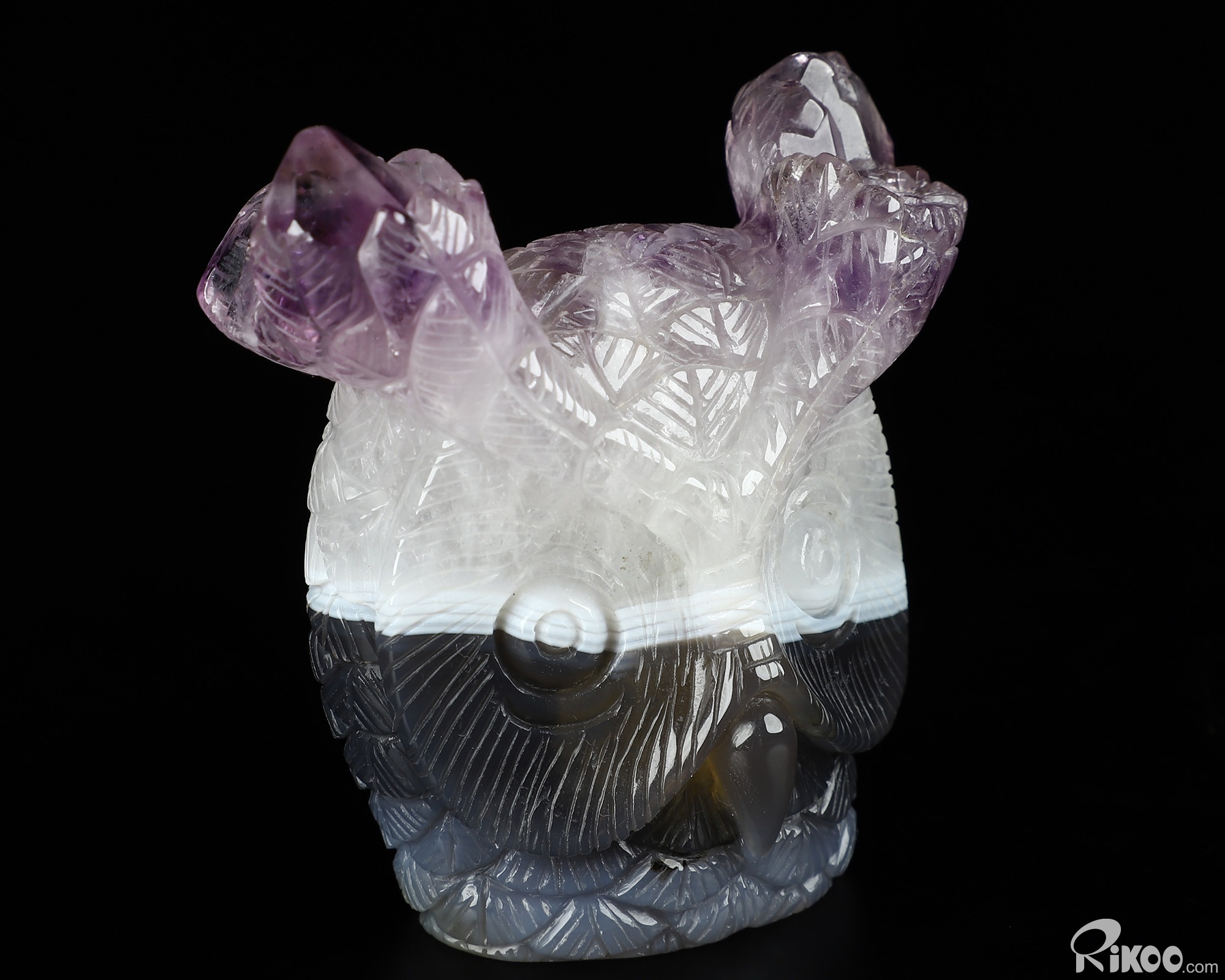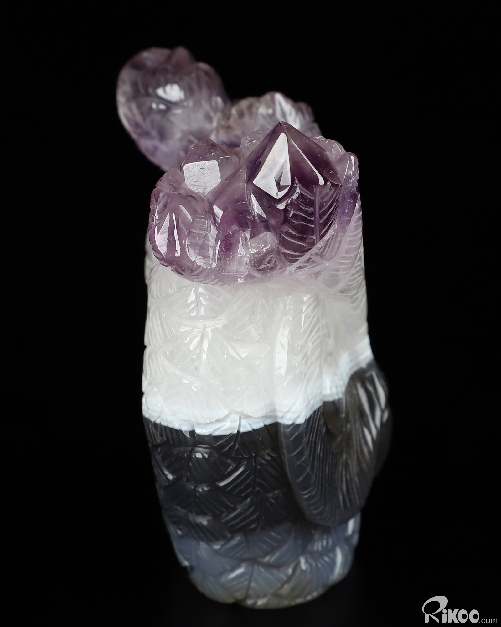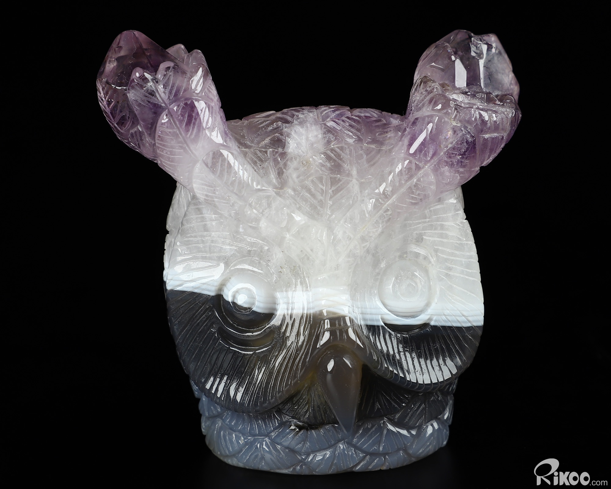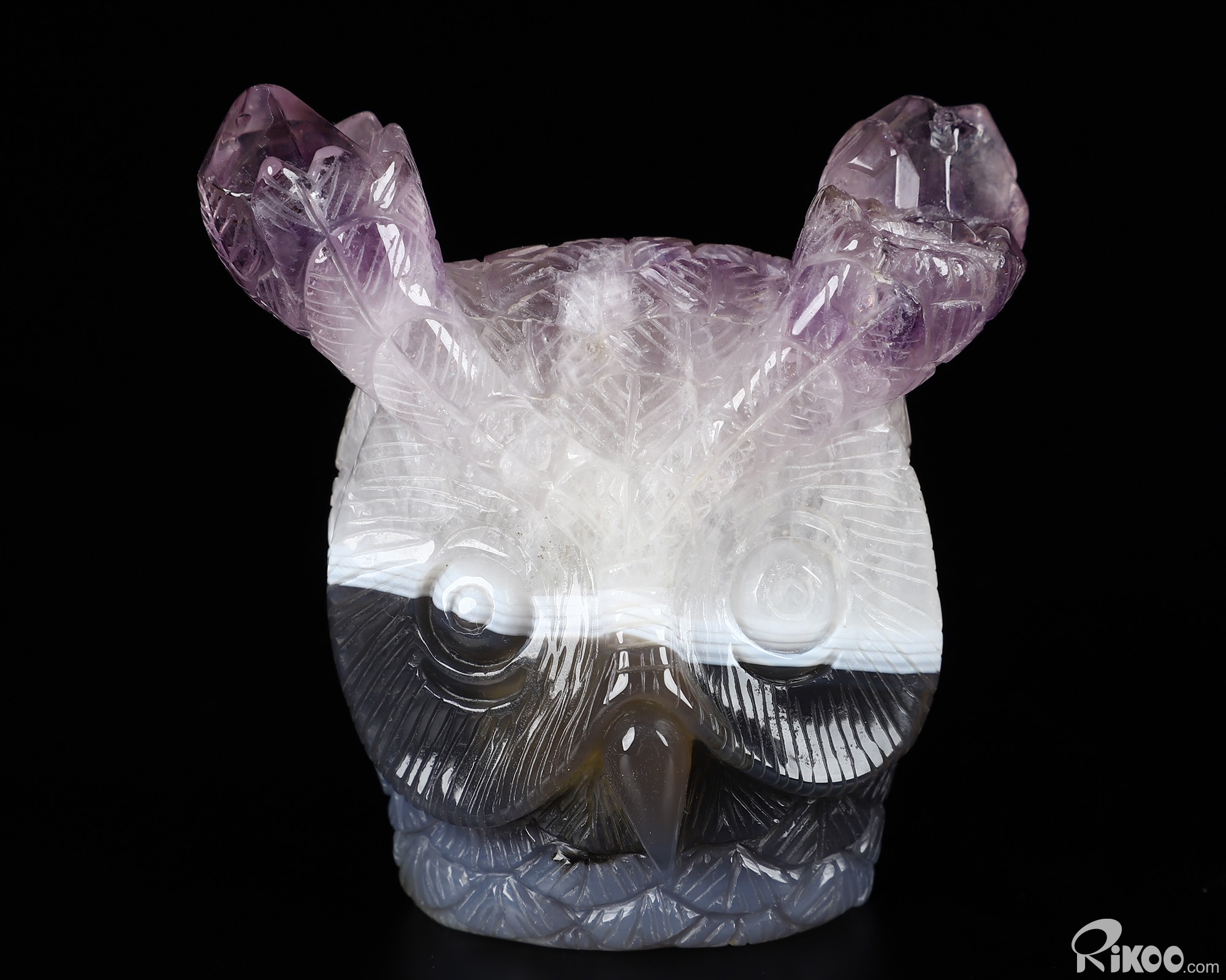 3.1" Amethyst & Agate Carved Crystal Owl, Realistic, Crystal Healing