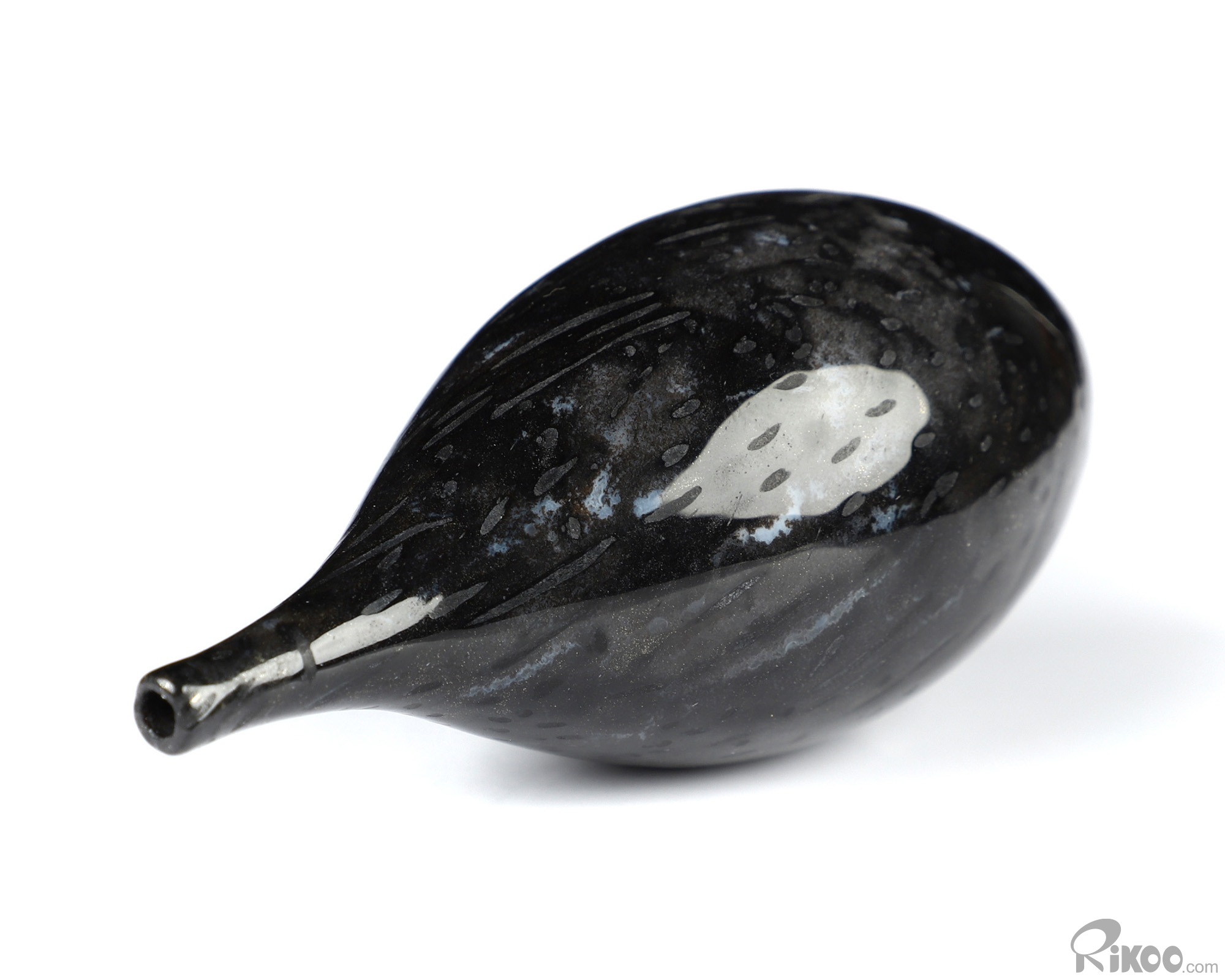 You are looking at a Black Zebra Agate sculpture. The sculpture is 3.1 inches long.