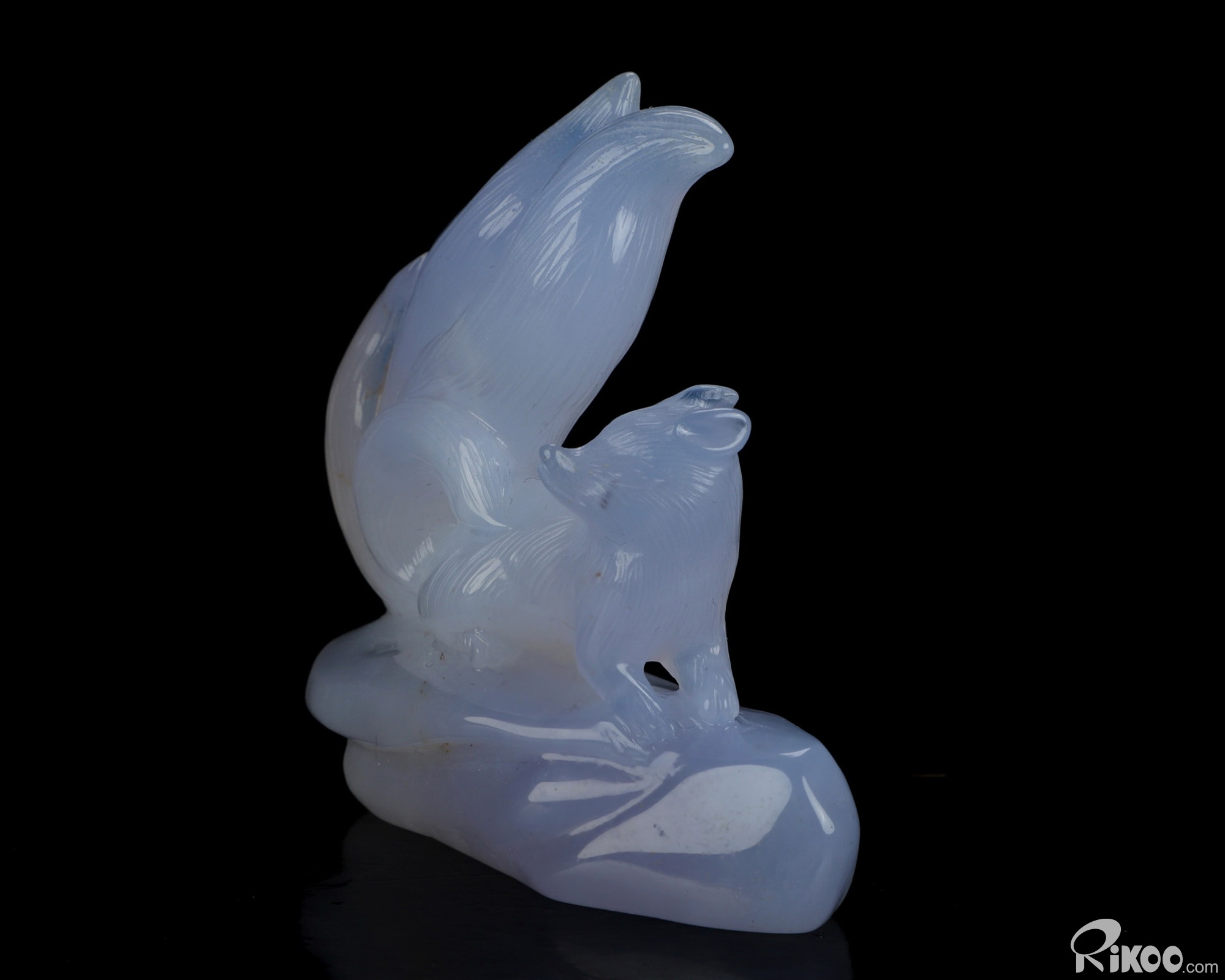 3.1" Blue Chalcedony Hand Carved Crystal Fox Sculpture, Crystal Healing