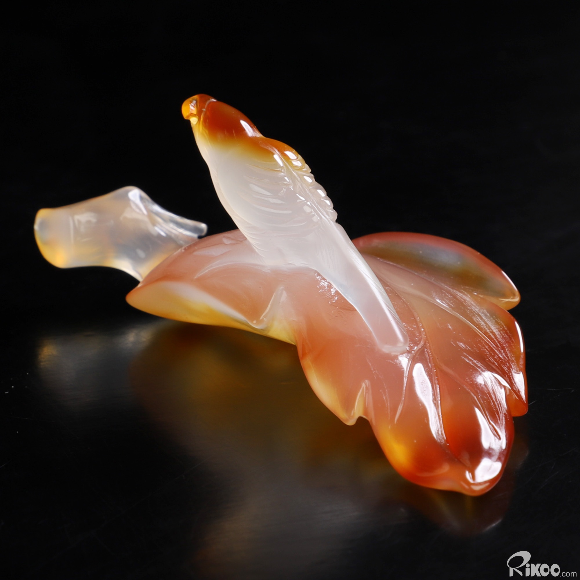 3.1" Carnelian Hand Carved Crystal Bird on the Leave Sculpture, Crystal Healing