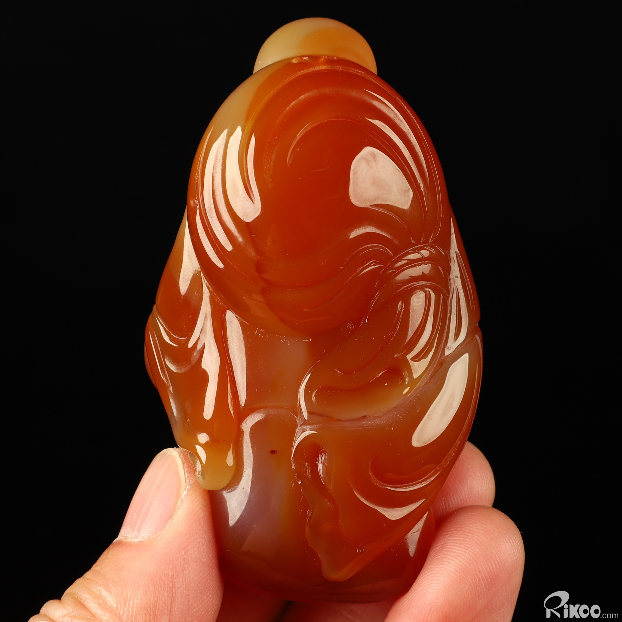 You are looking at a Carnelian sculpture. The sculpture is 3.1 inches long.