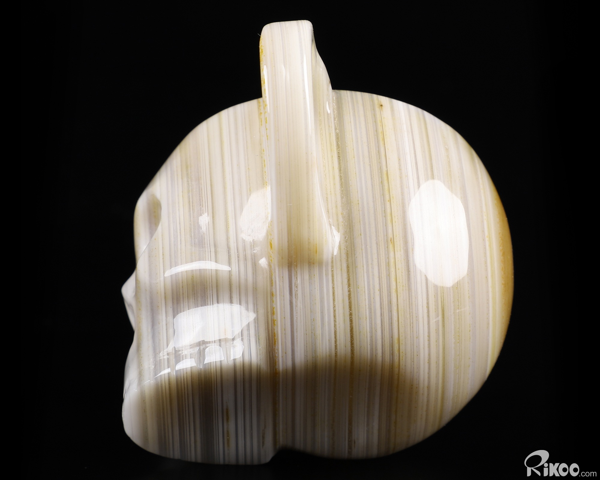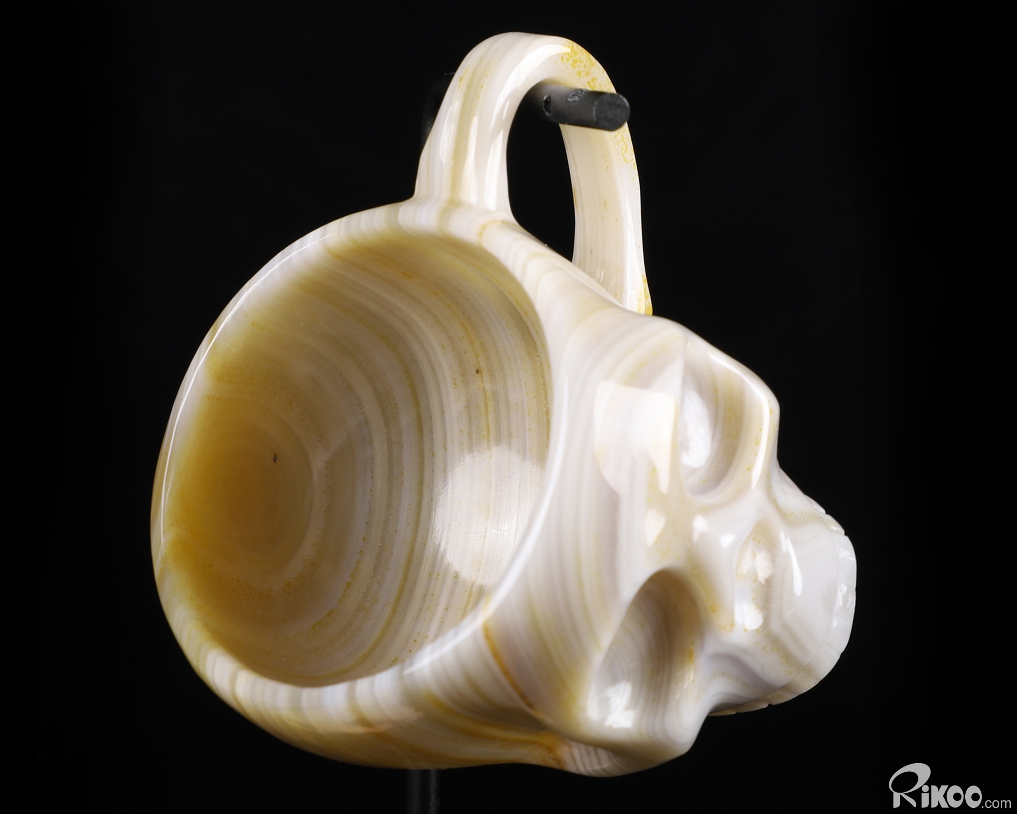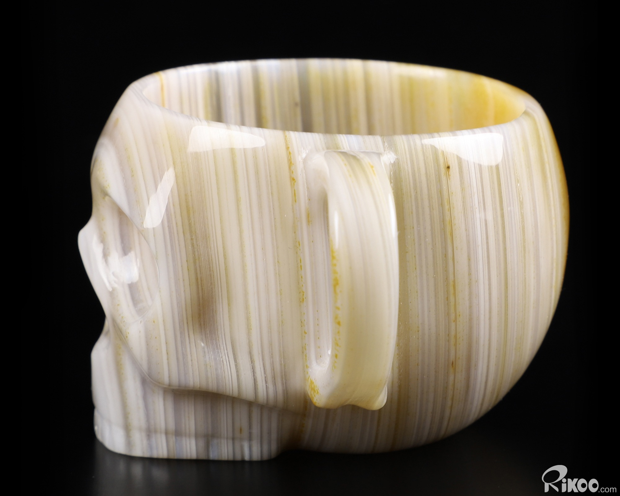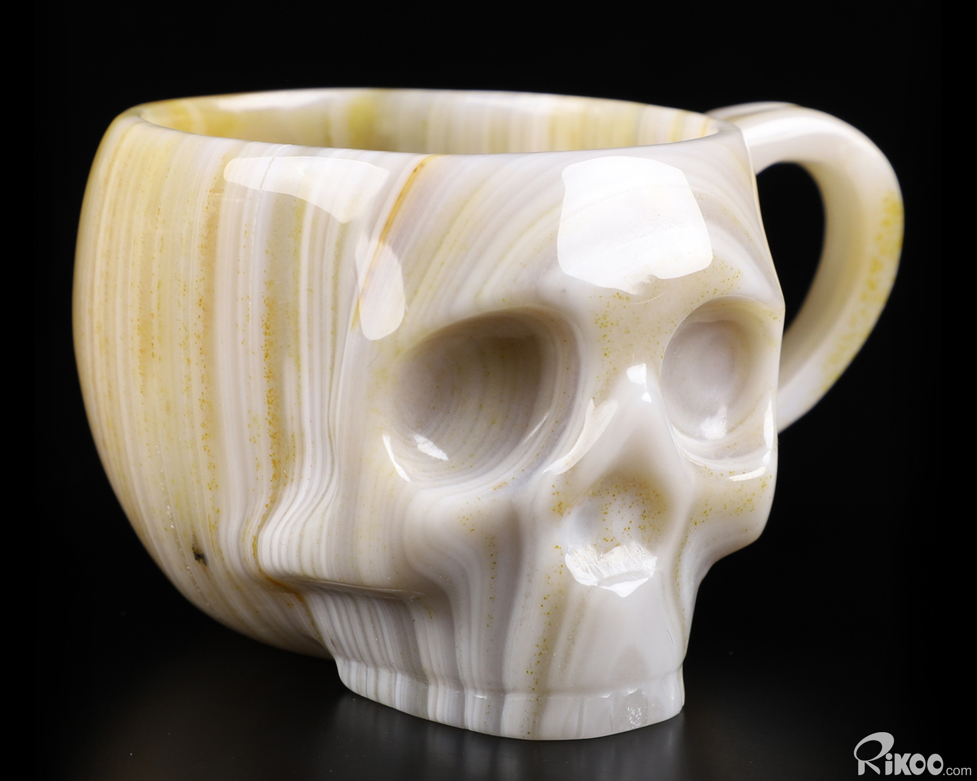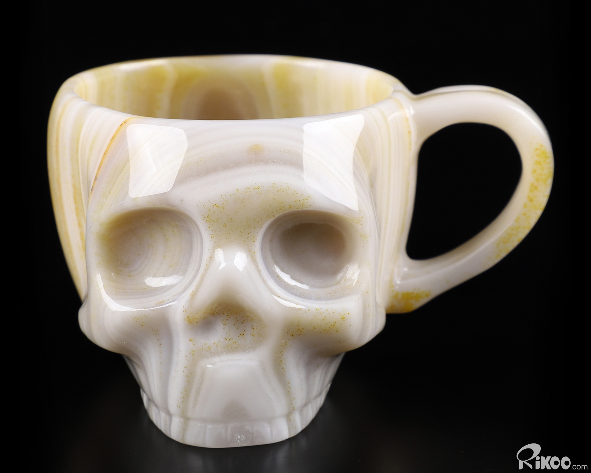 3.1" Gray & White Agate Carved Crystal Skull Coffee Espresso Cup, 2OZ, Crystal Healing