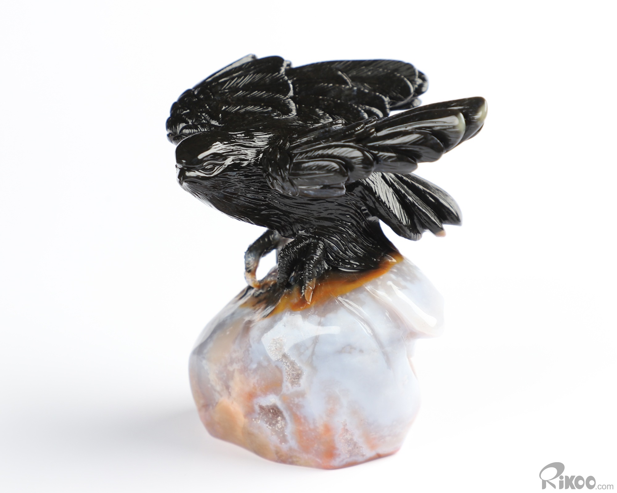 3.1" Indian Agate Hand Carved Crystal Eagle Sculpture, Crystal Healing