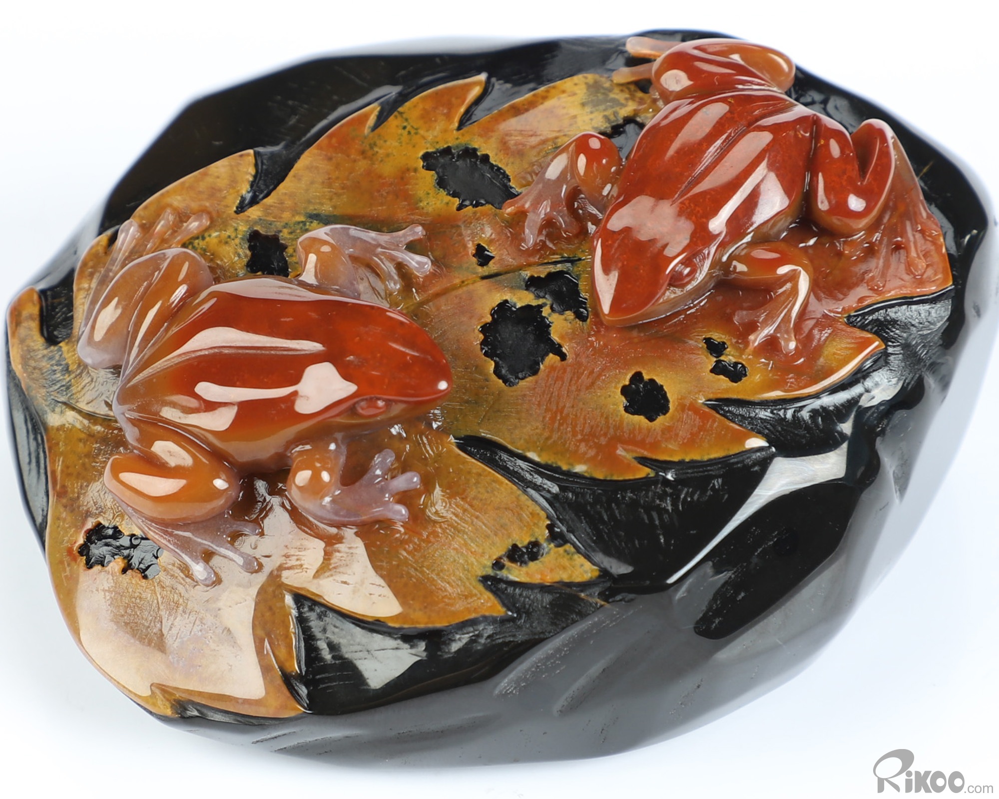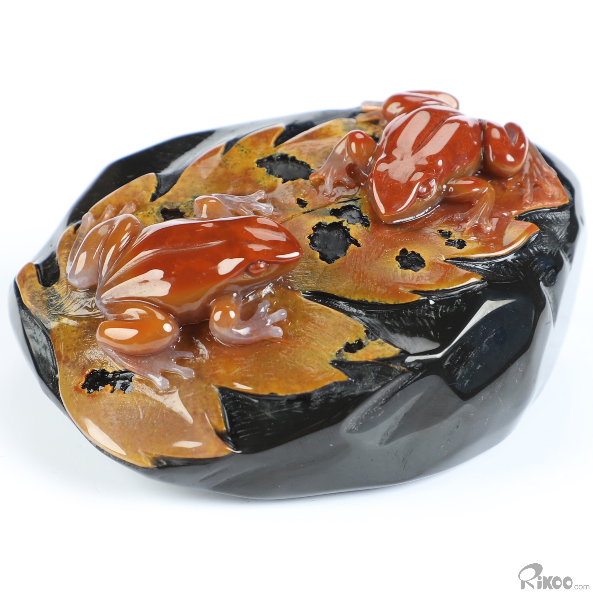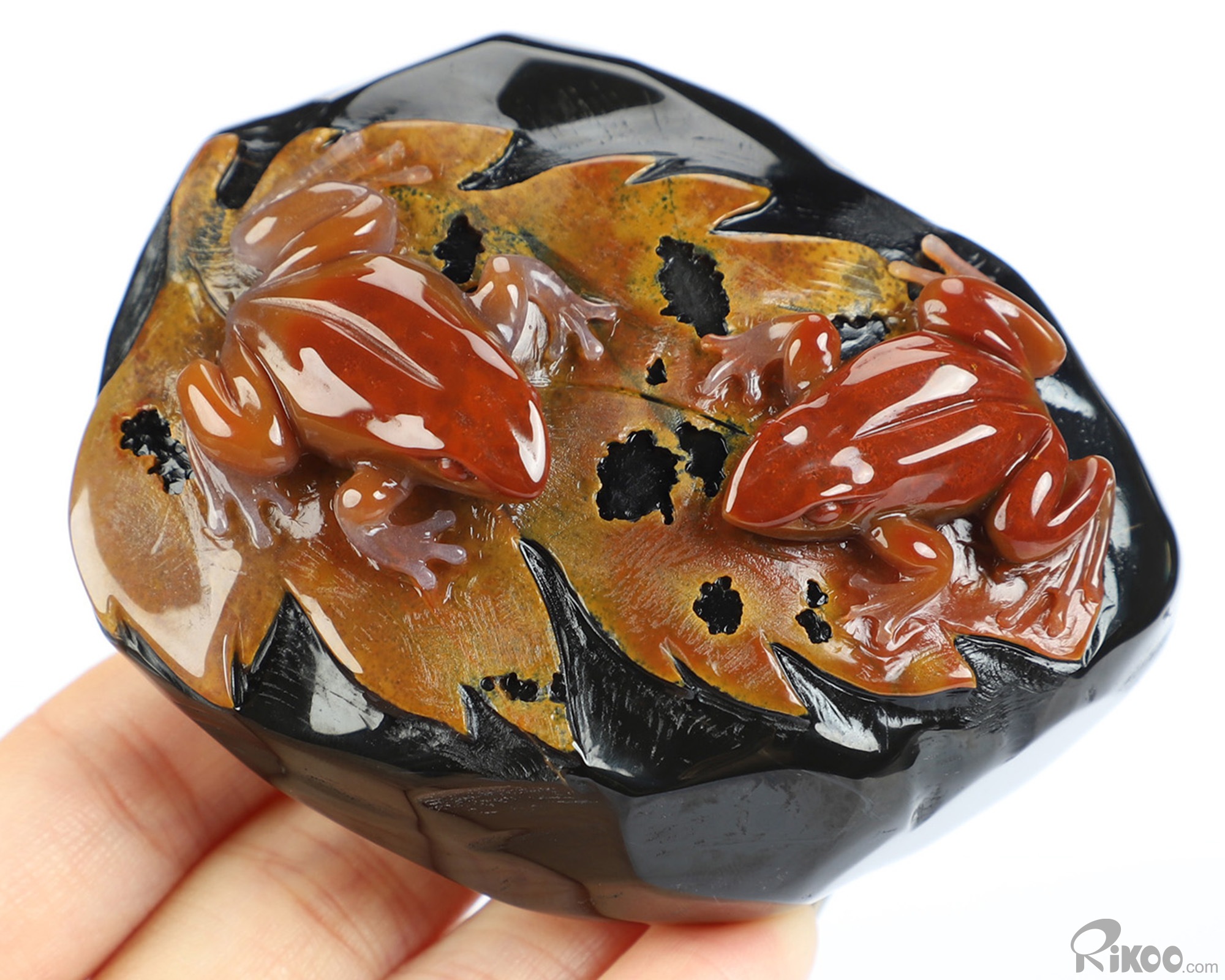 3.1" Indian Agate Hand Carved Crystal Frogs Sculpture, Crystal Healing