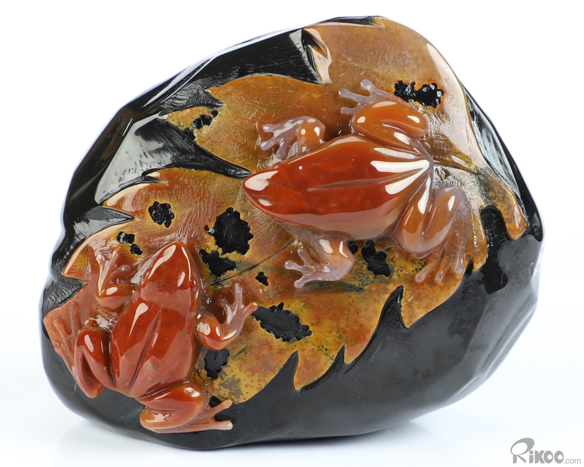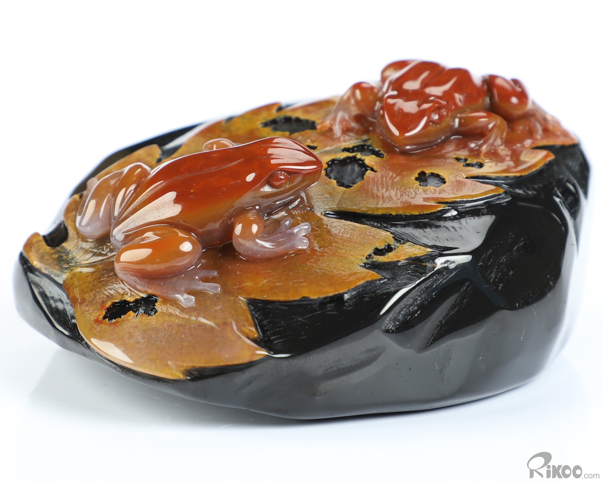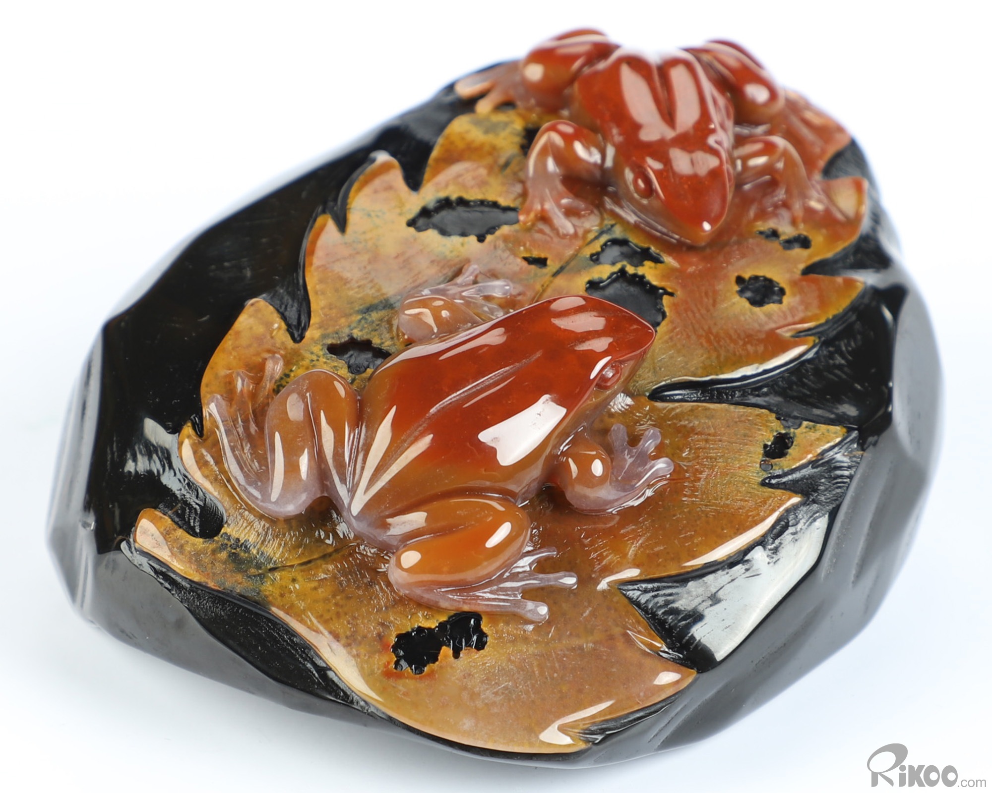 3.1" Indian Agate Hand Carved Crystal Frogs Sculpture, Crystal Healing