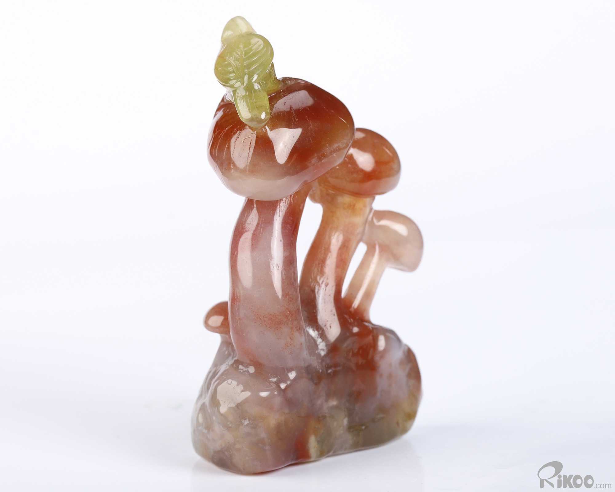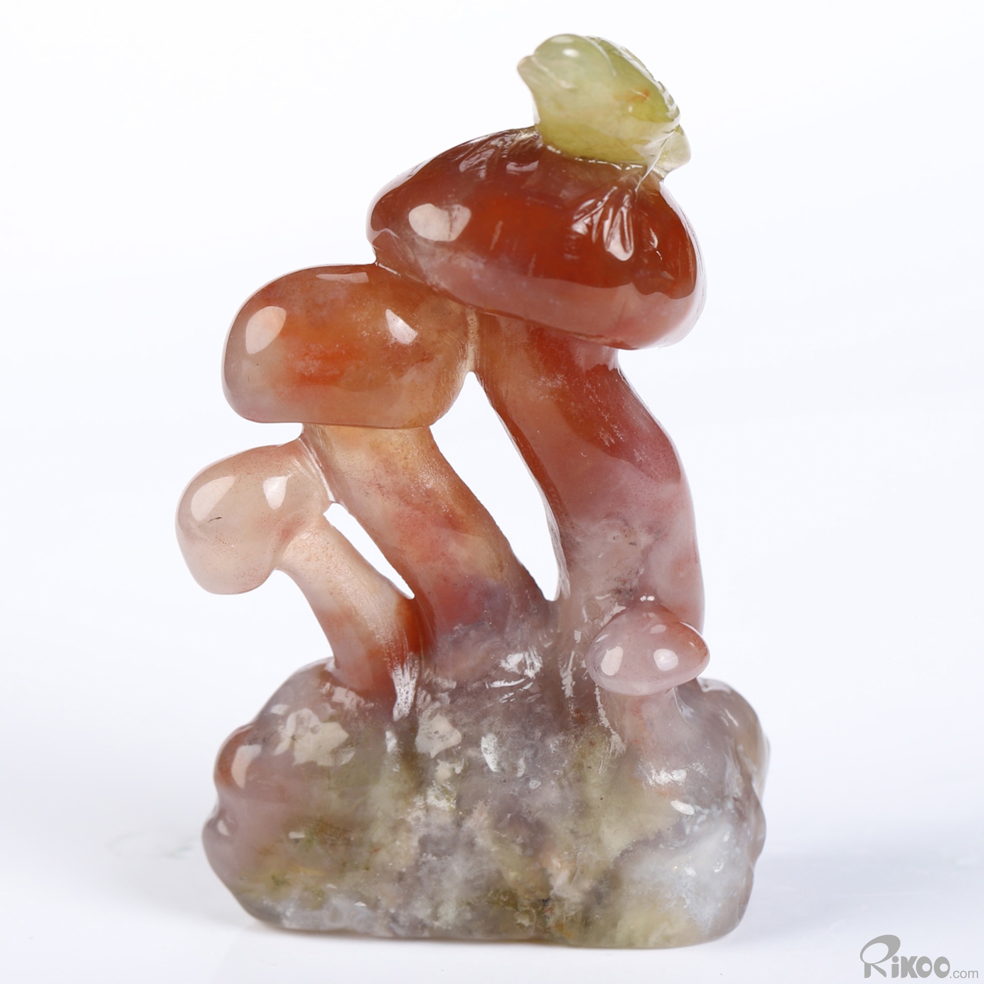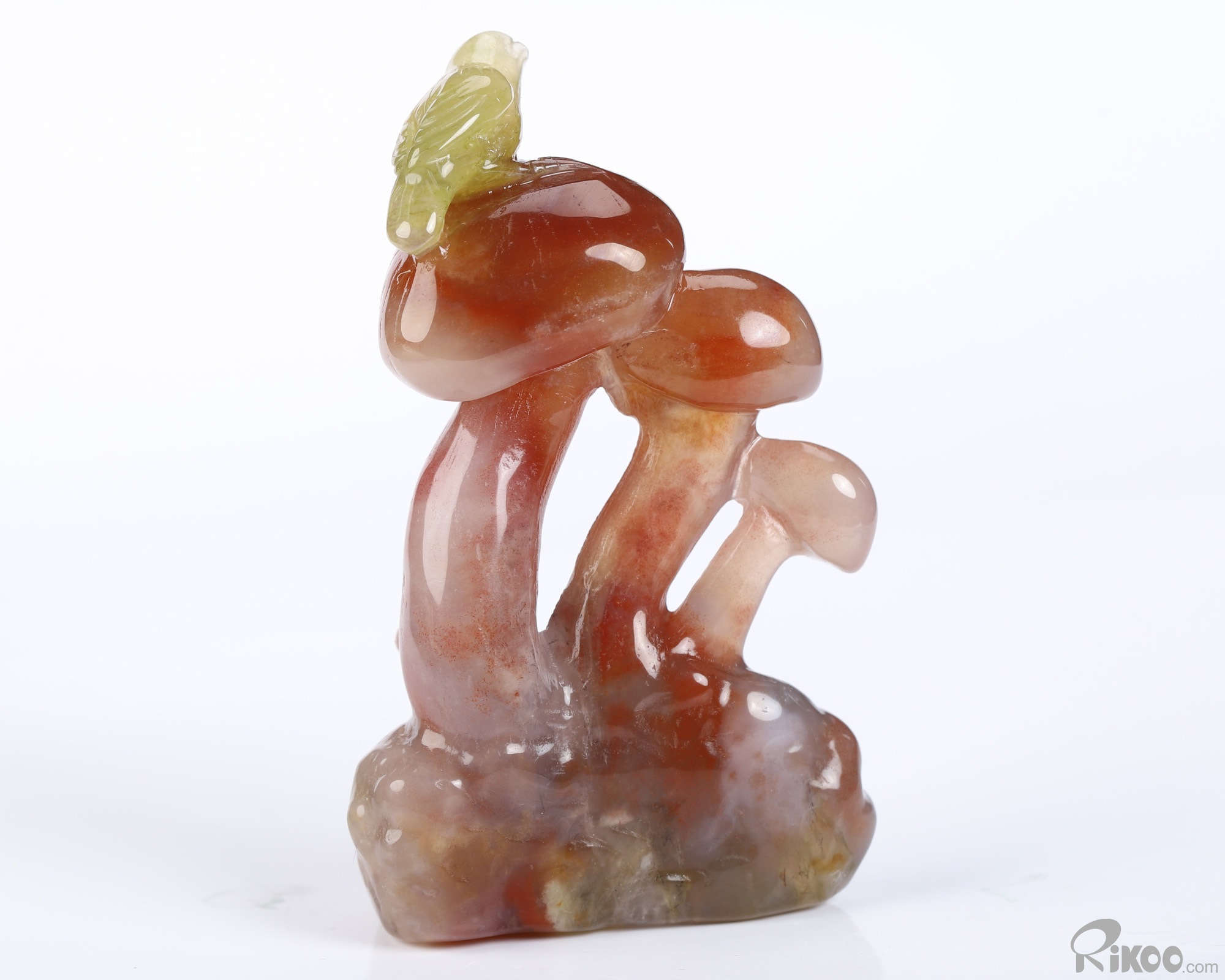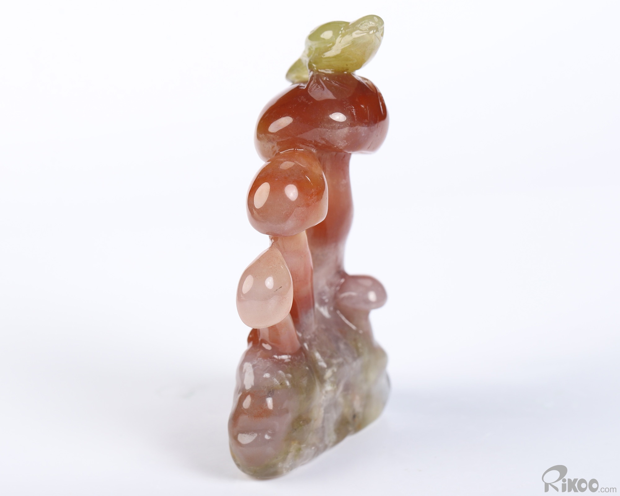 3.1" Indian Agate Hand Carved Crystal Mushroom and Bird Sculpture, Crystal Healing