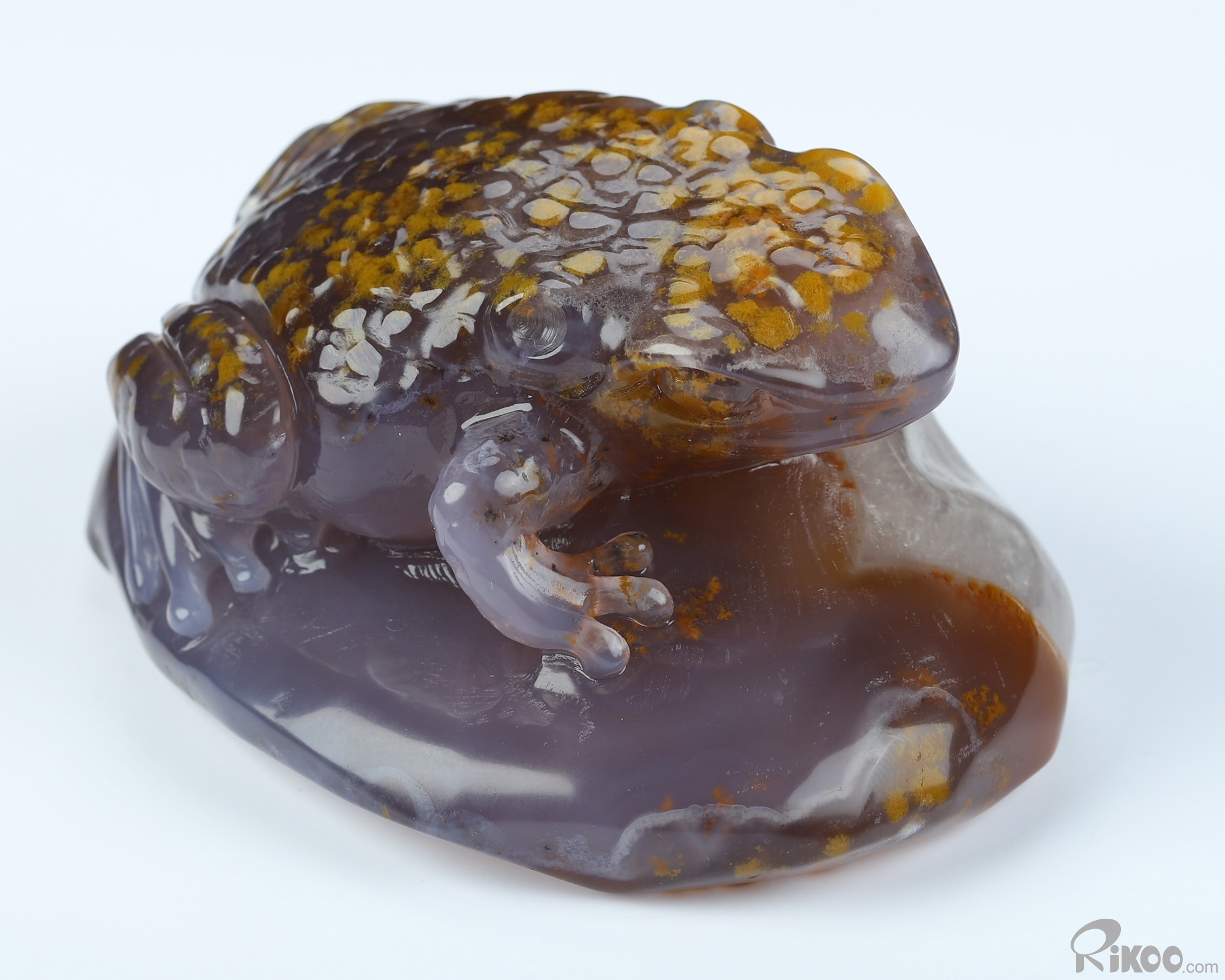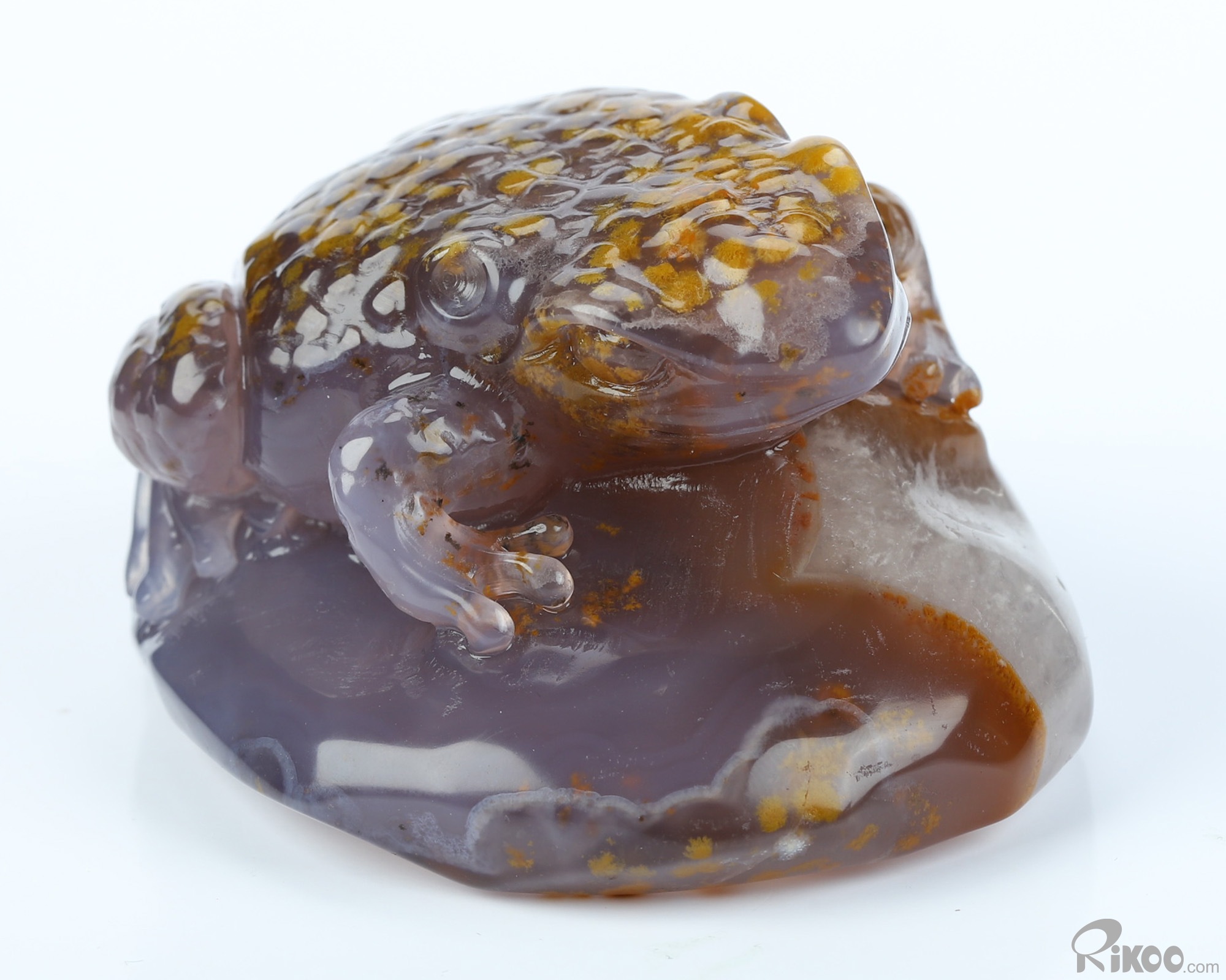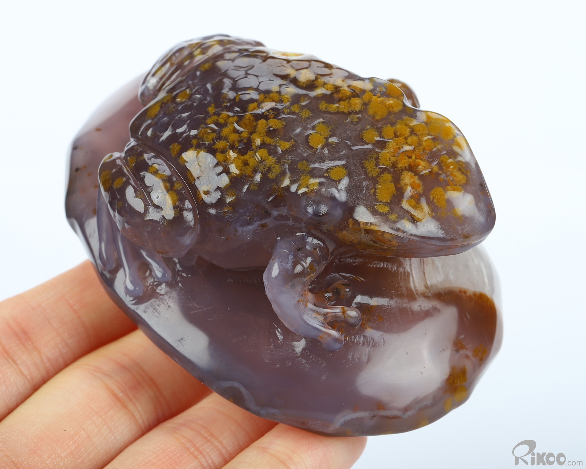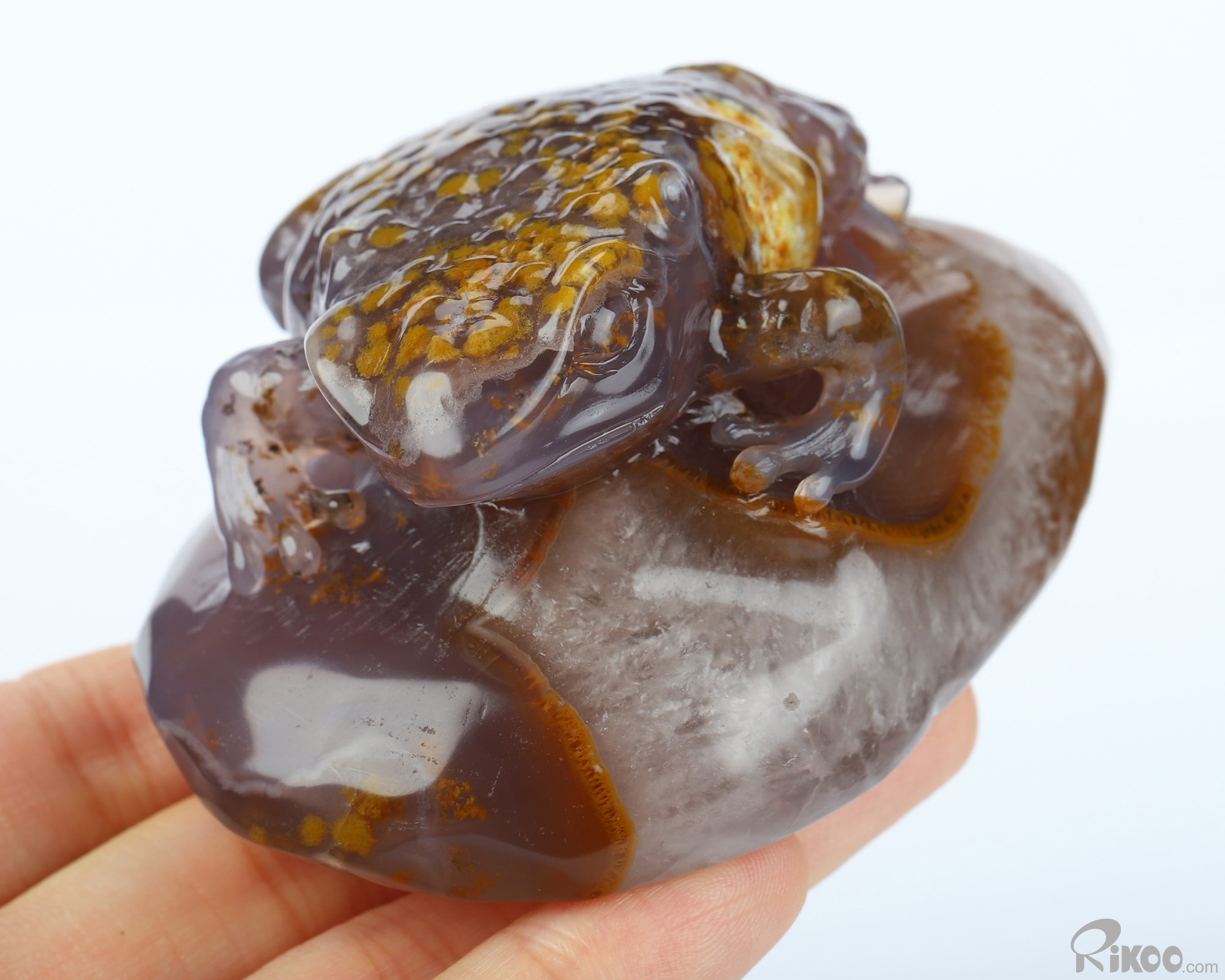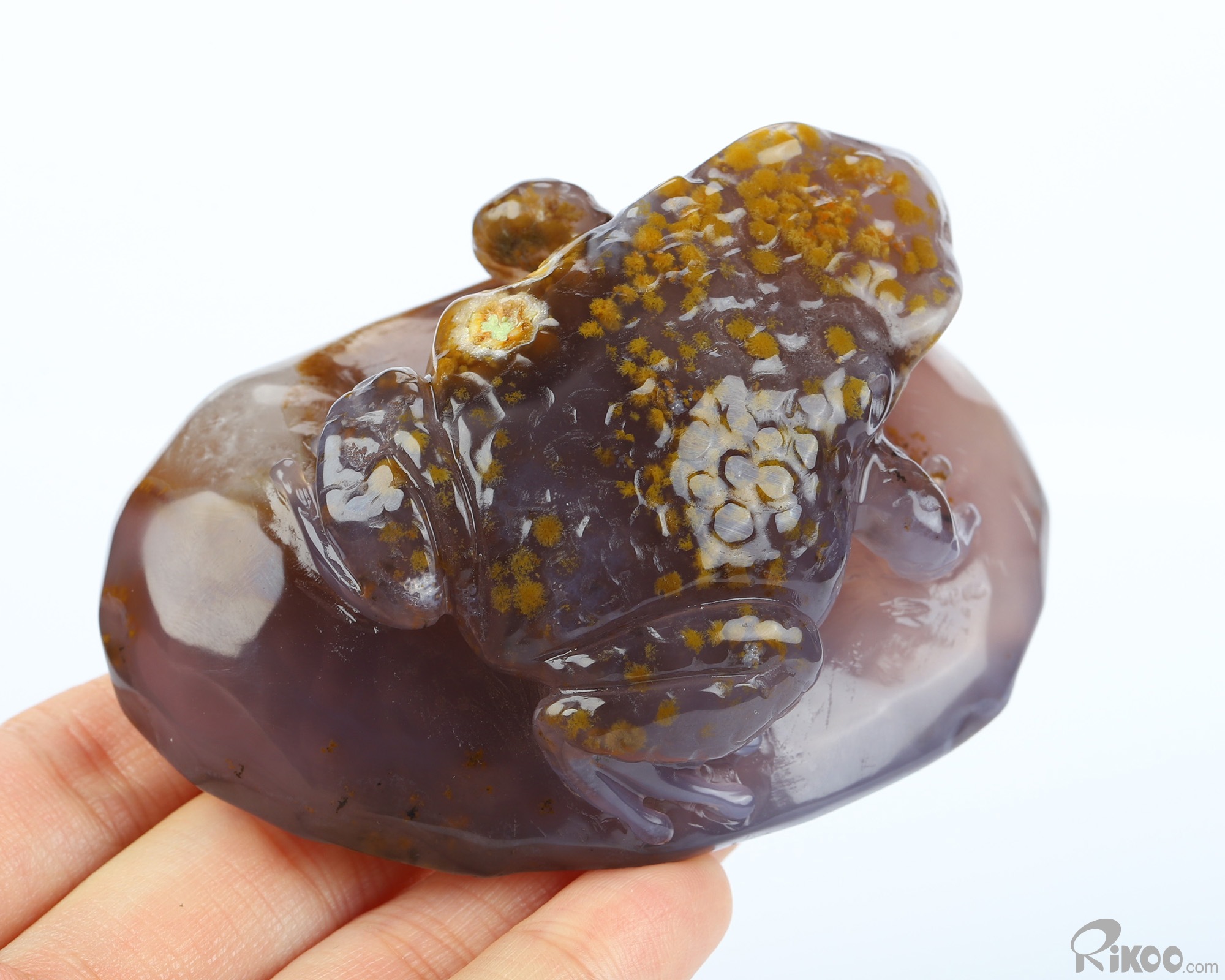 3.2" Agate Hand Carved Crystal Frog Sculpture, Crystal Healing