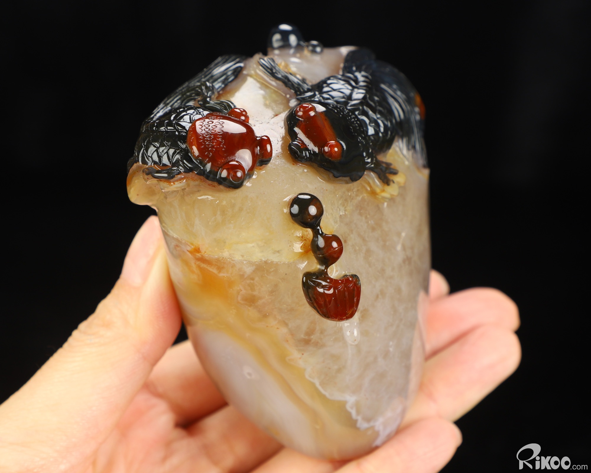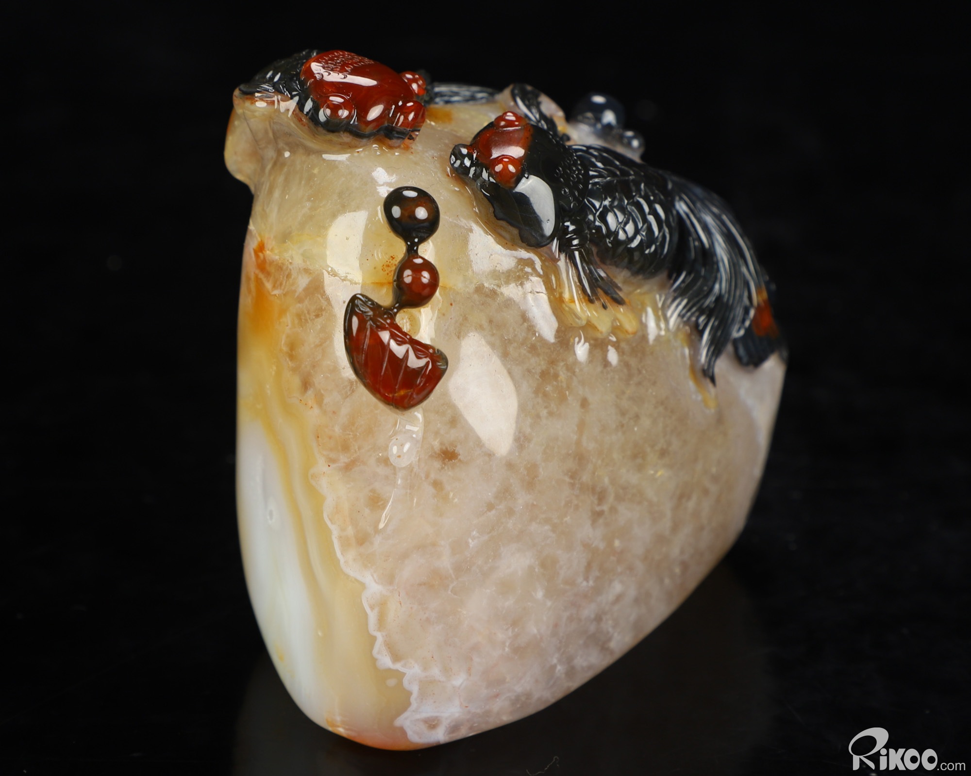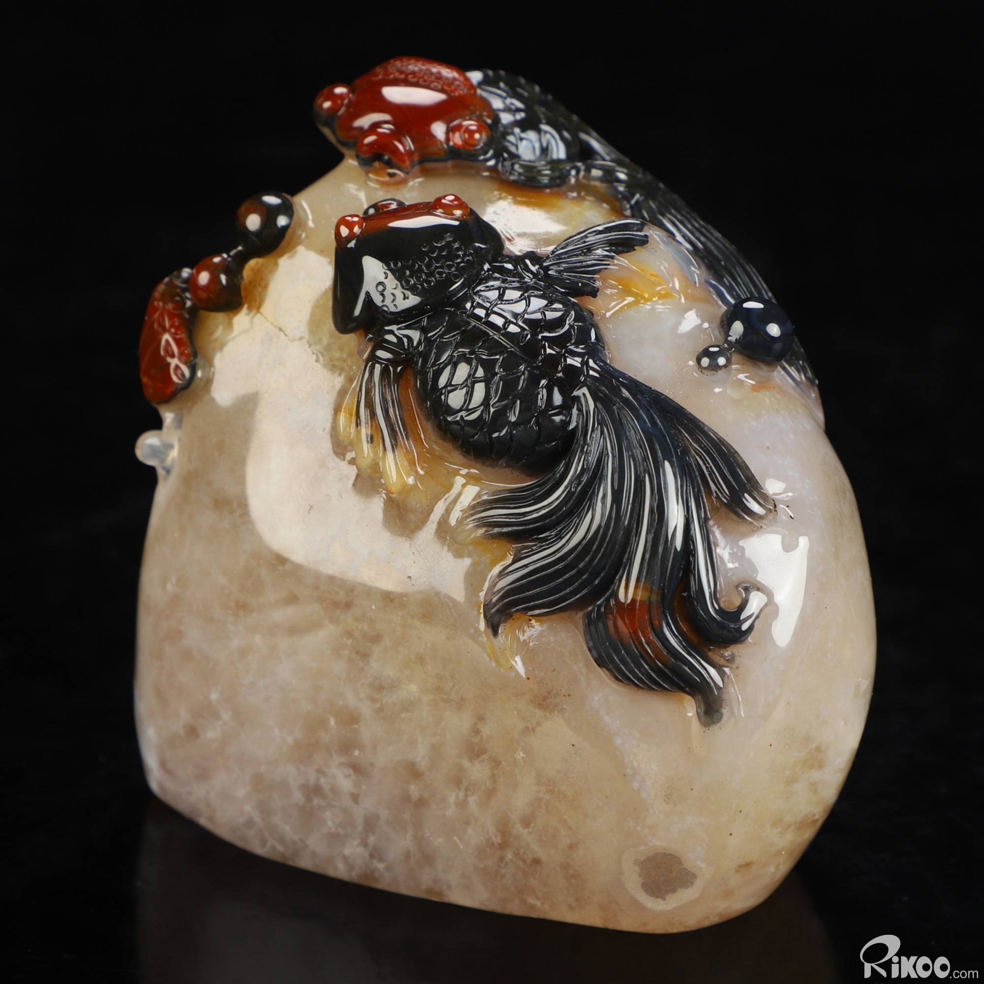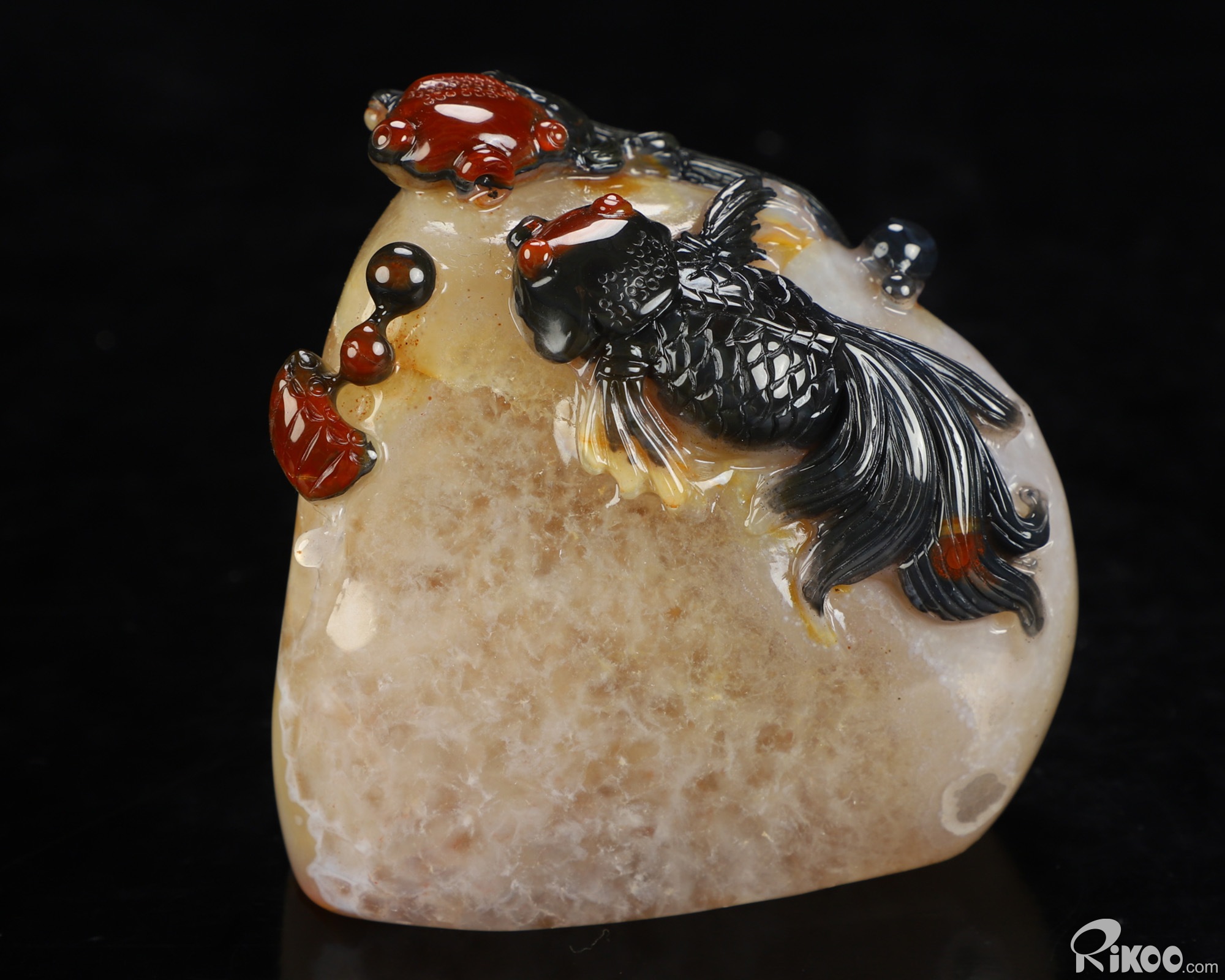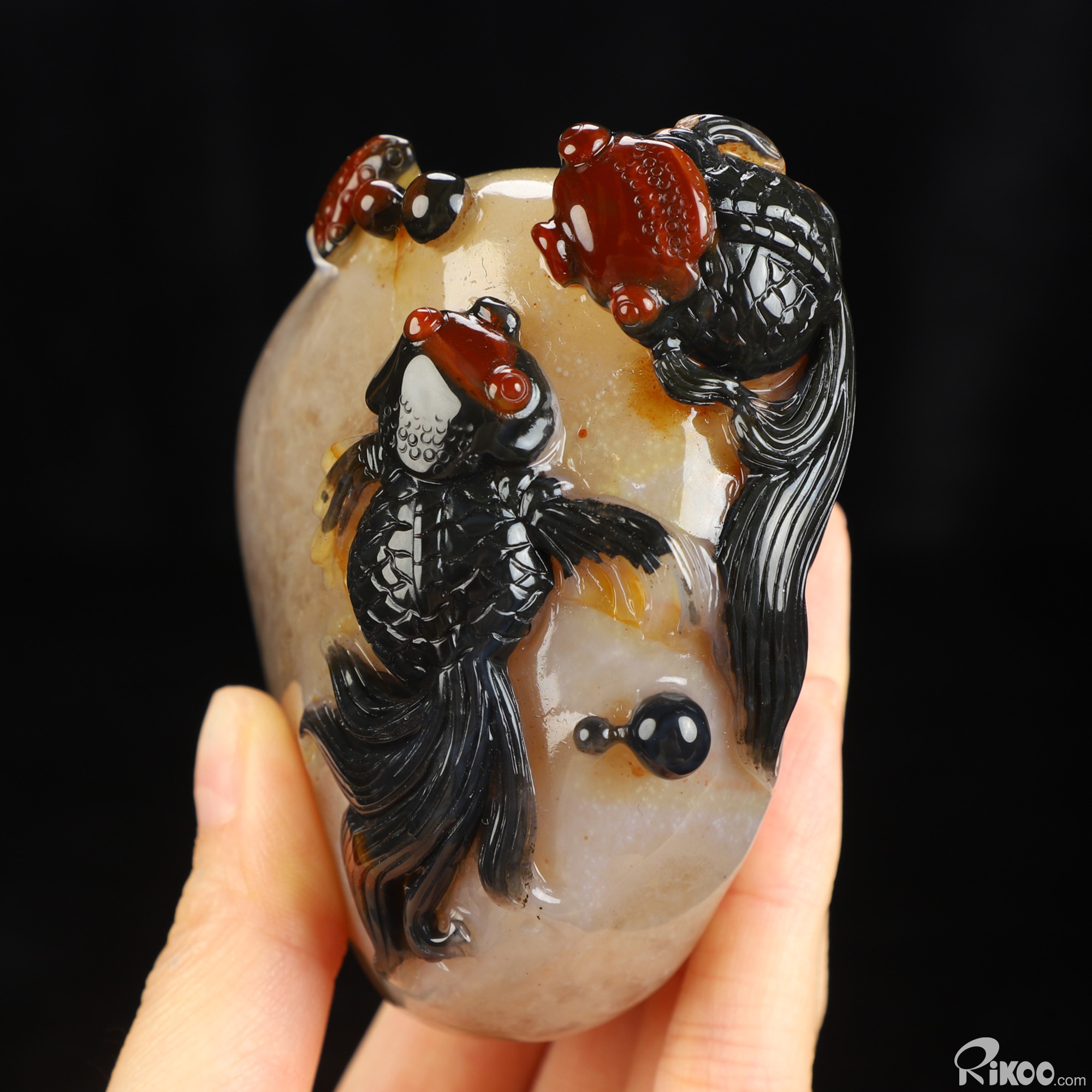 You are looking at an Indian Agate Goldfish sculpture. The sculpture is 3.2 inches long.