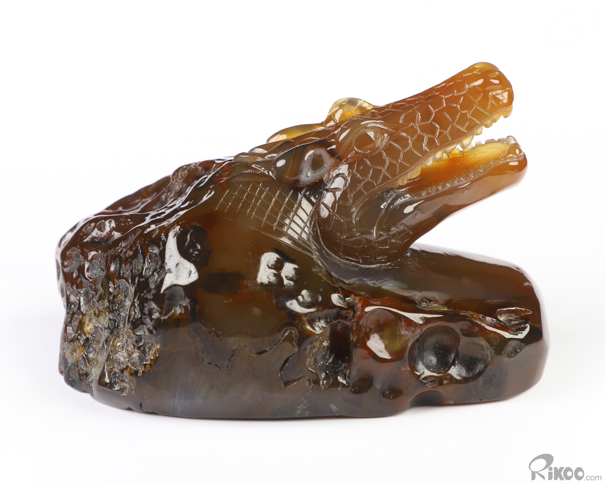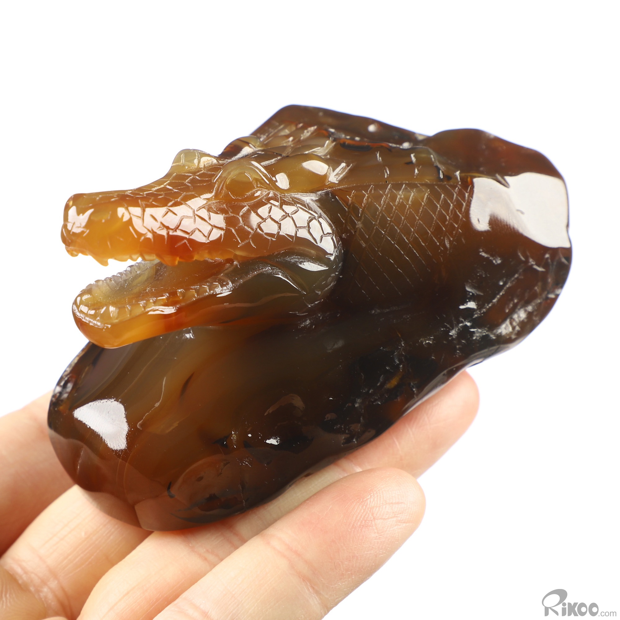 3.3" Agate Hand Carved Crystal Crocodile Sculpture, Crystal Healing