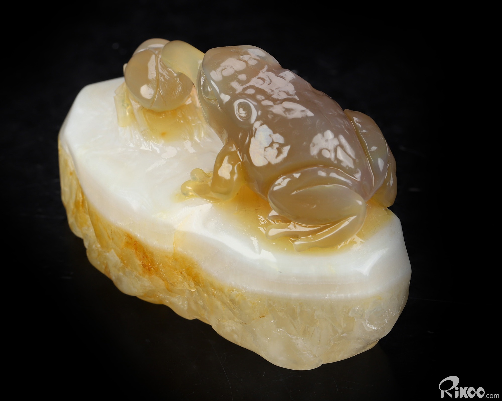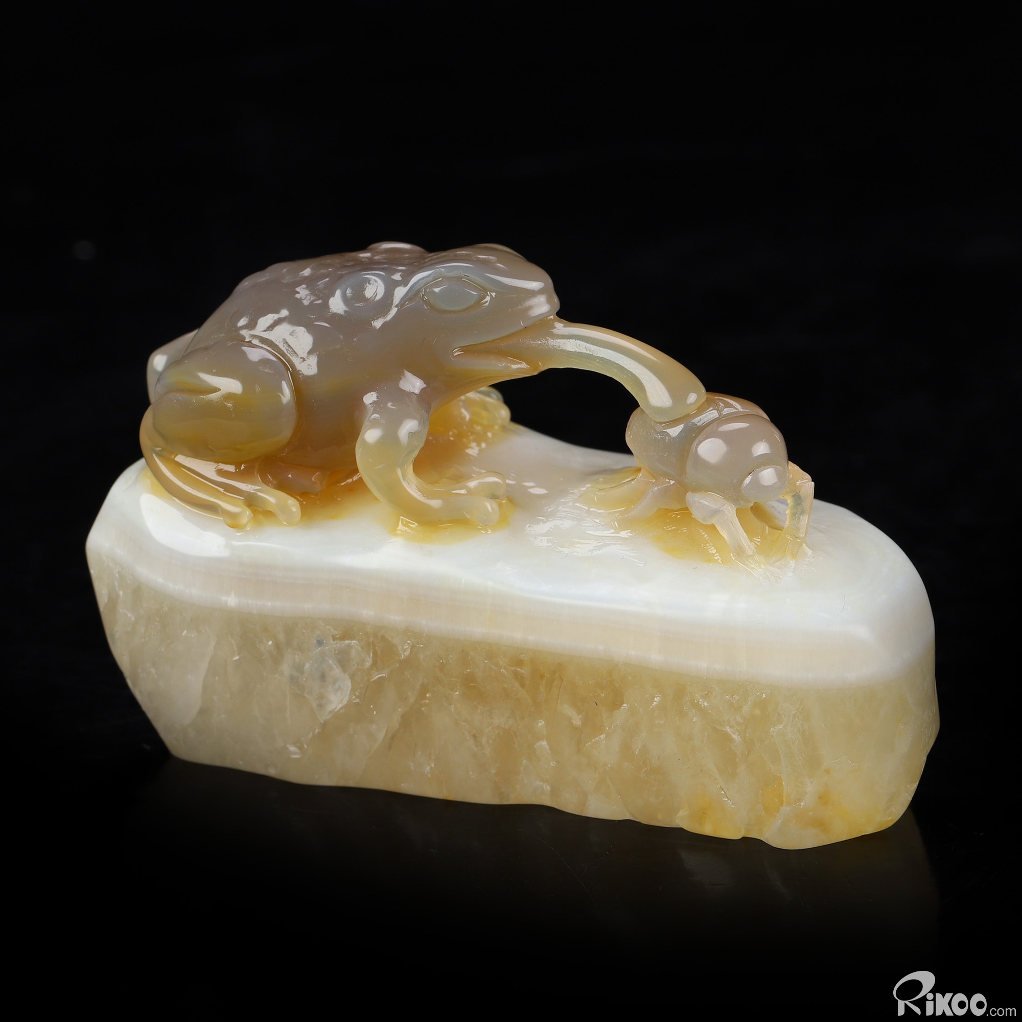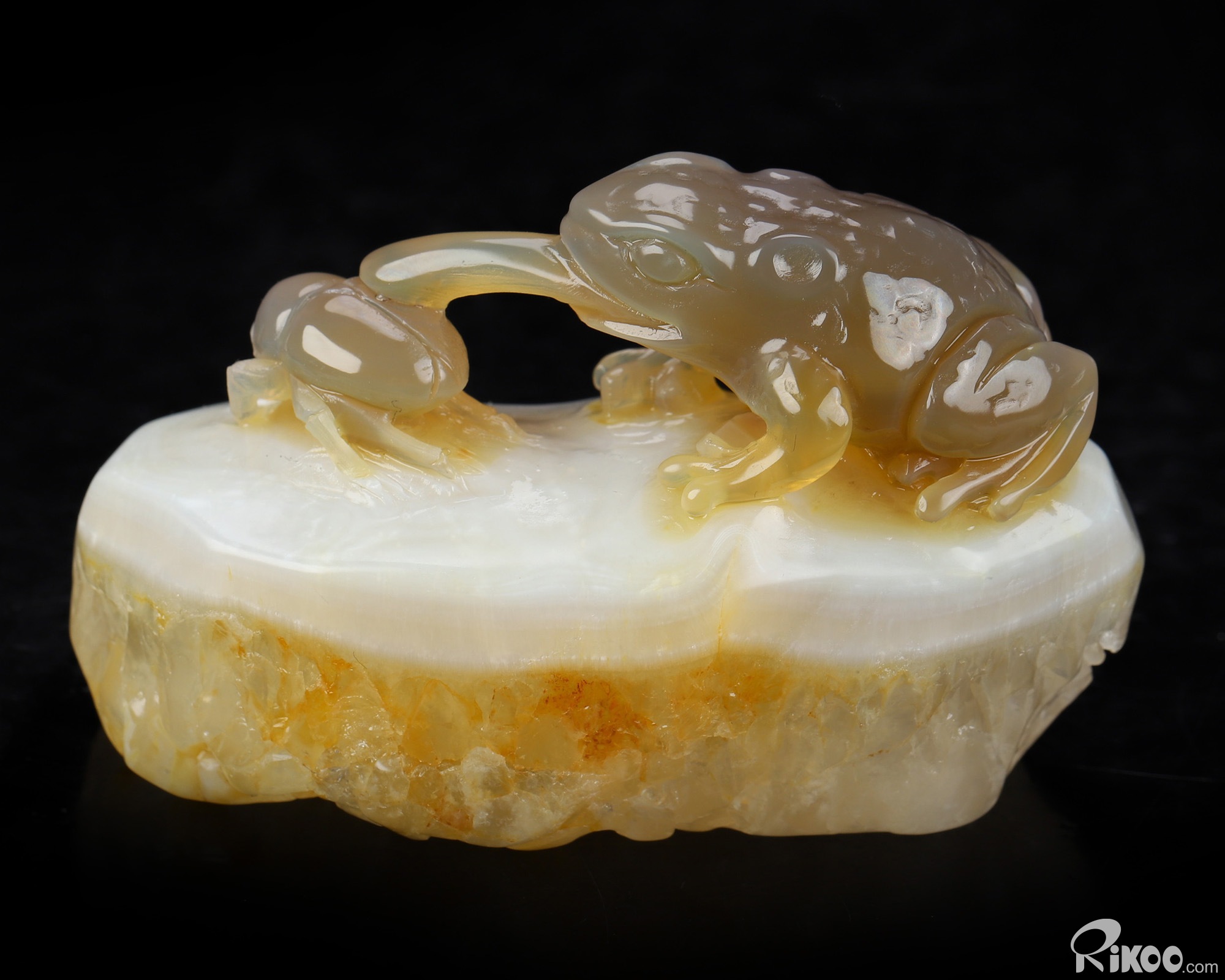 3.3" Agate Hand Carved Crystal Frog Sculpture, Crystal Healing