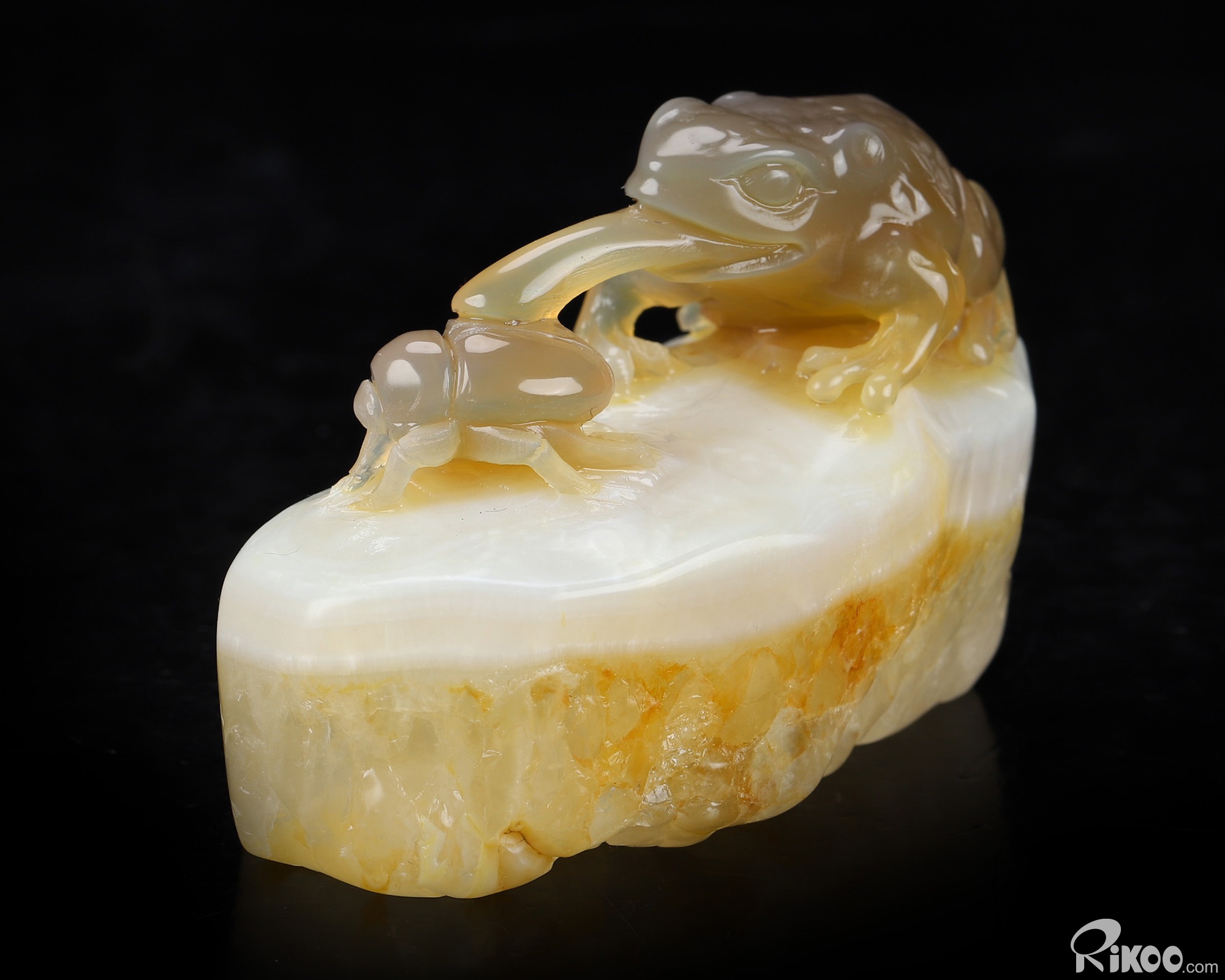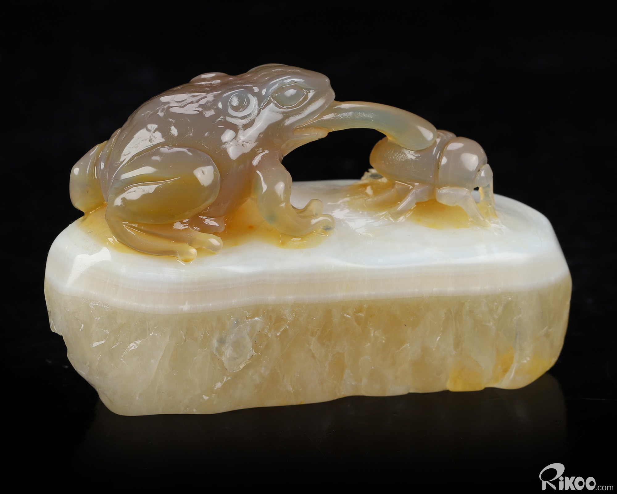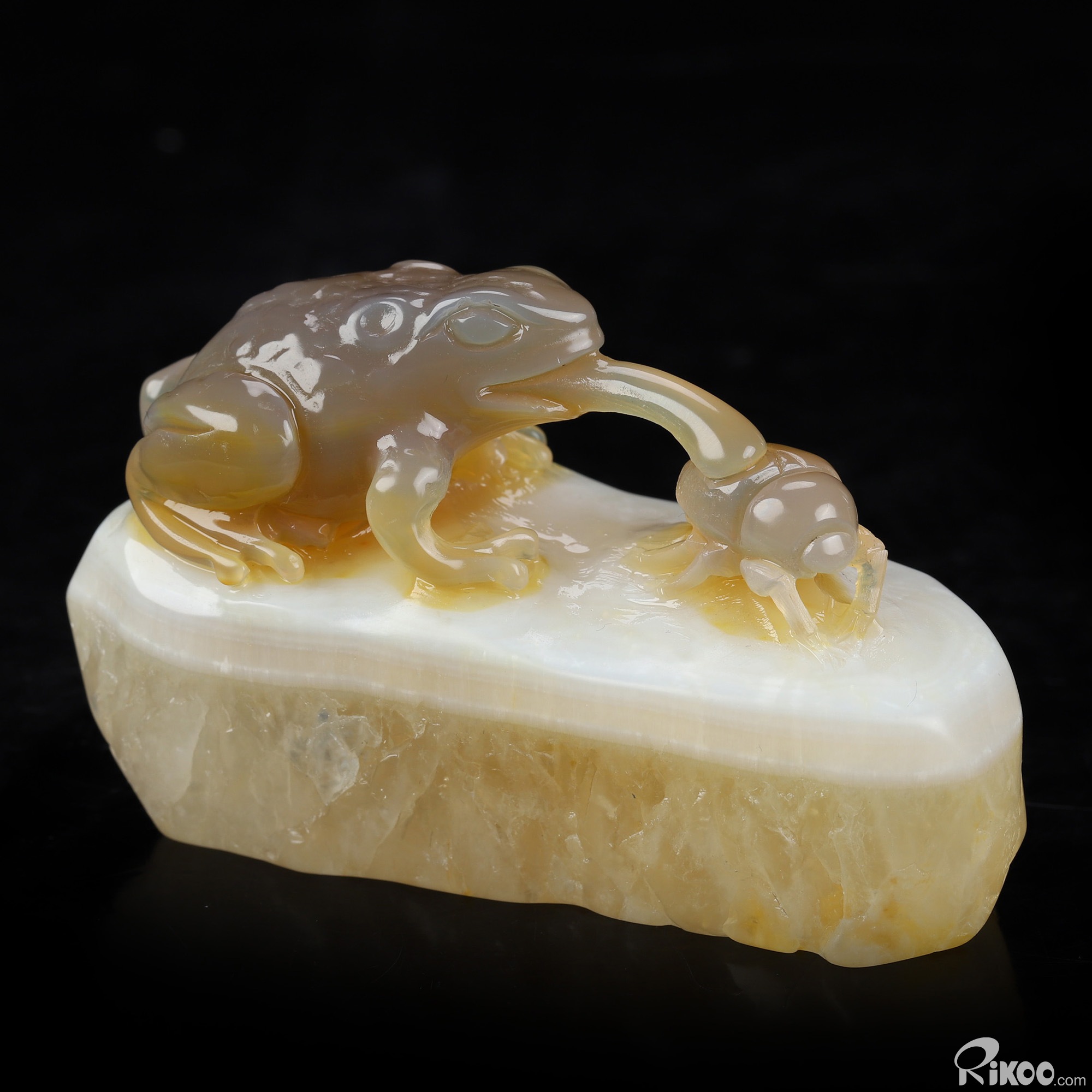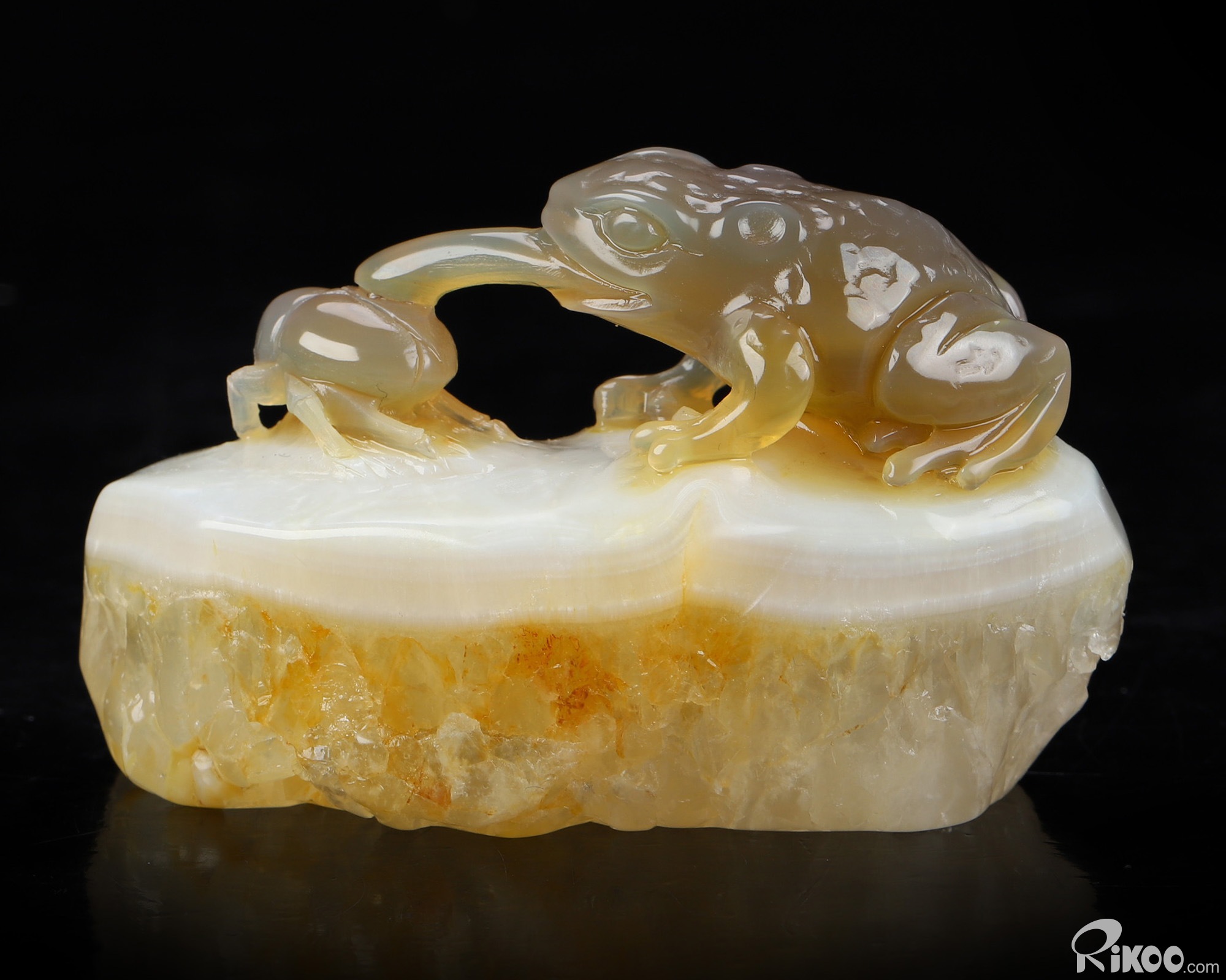 3.3" Agate Hand Carved Crystal Frog Sculpture, Crystal Healing