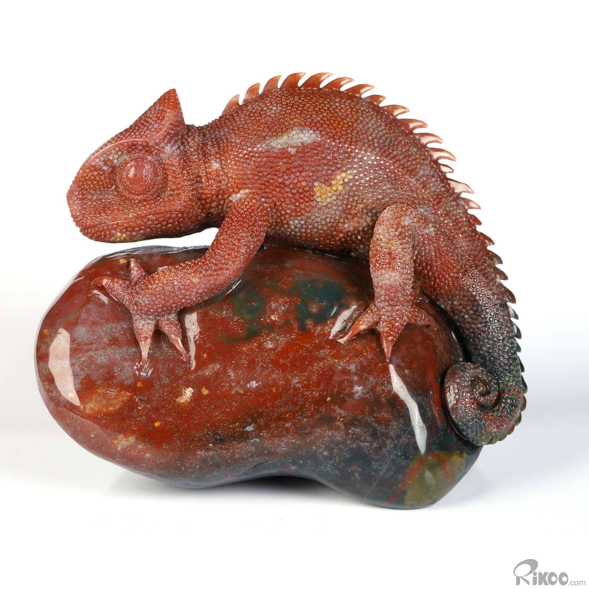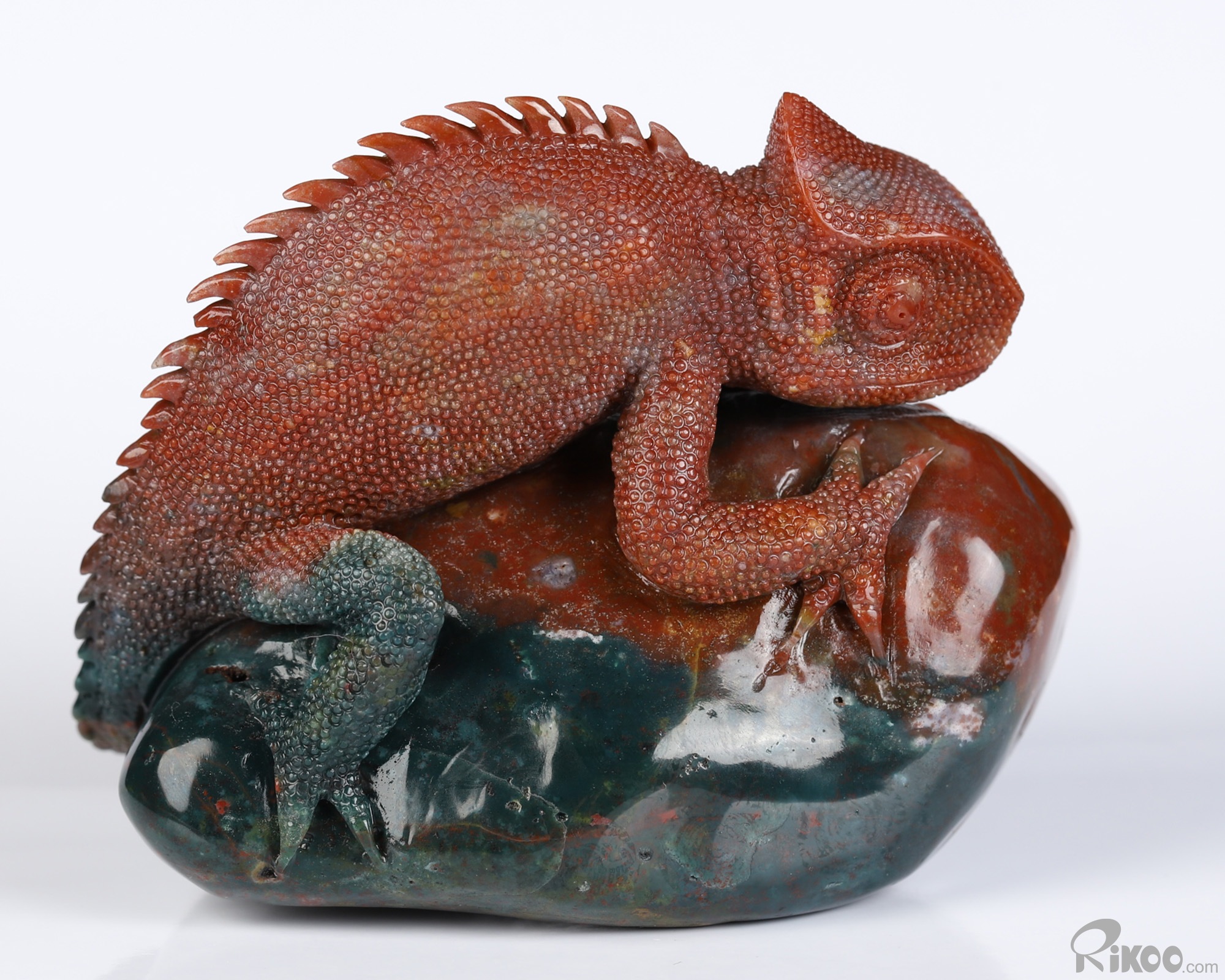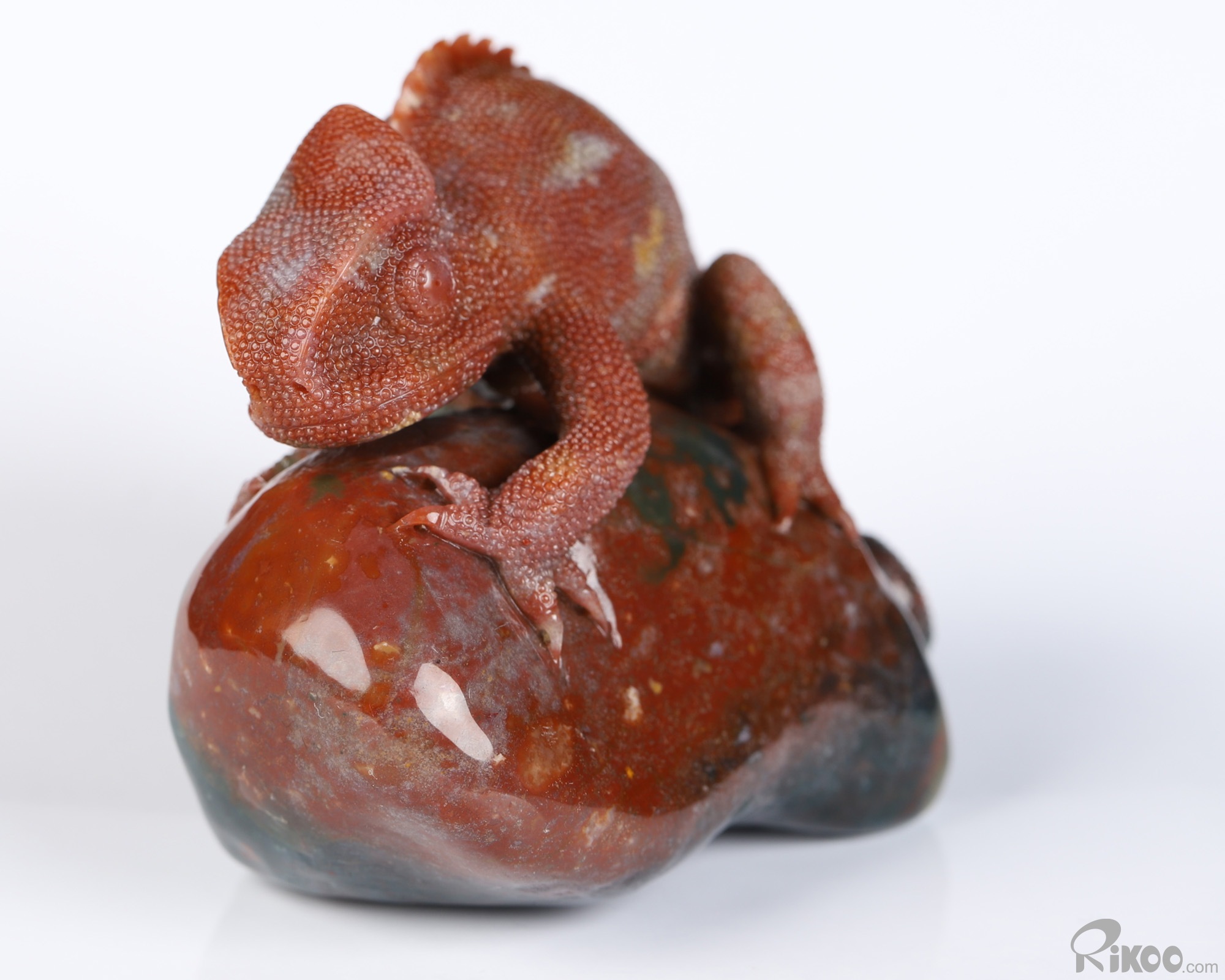 3.3" Bloodstone Hand Carved Crystal Lizard Sculpture, Crystal Healing