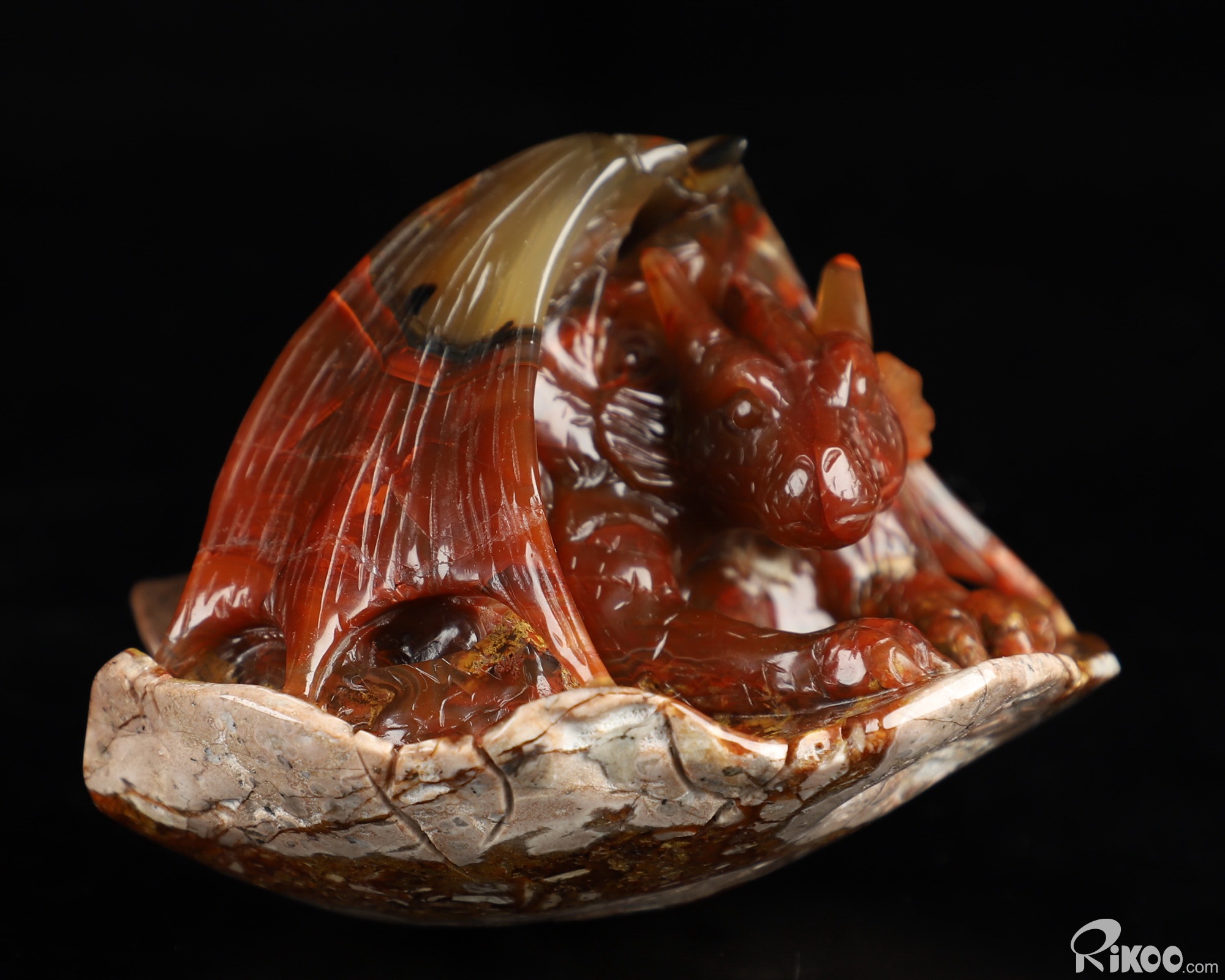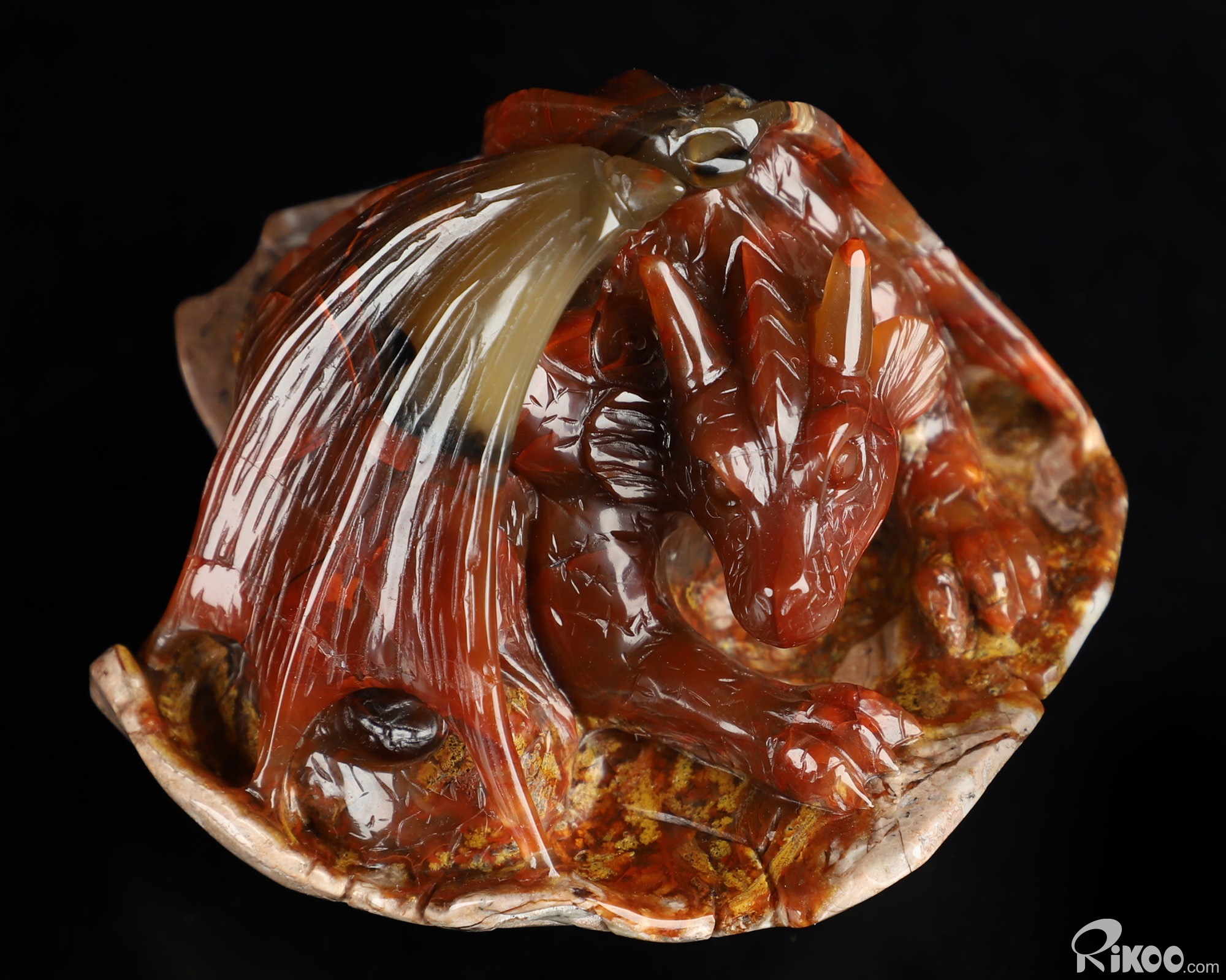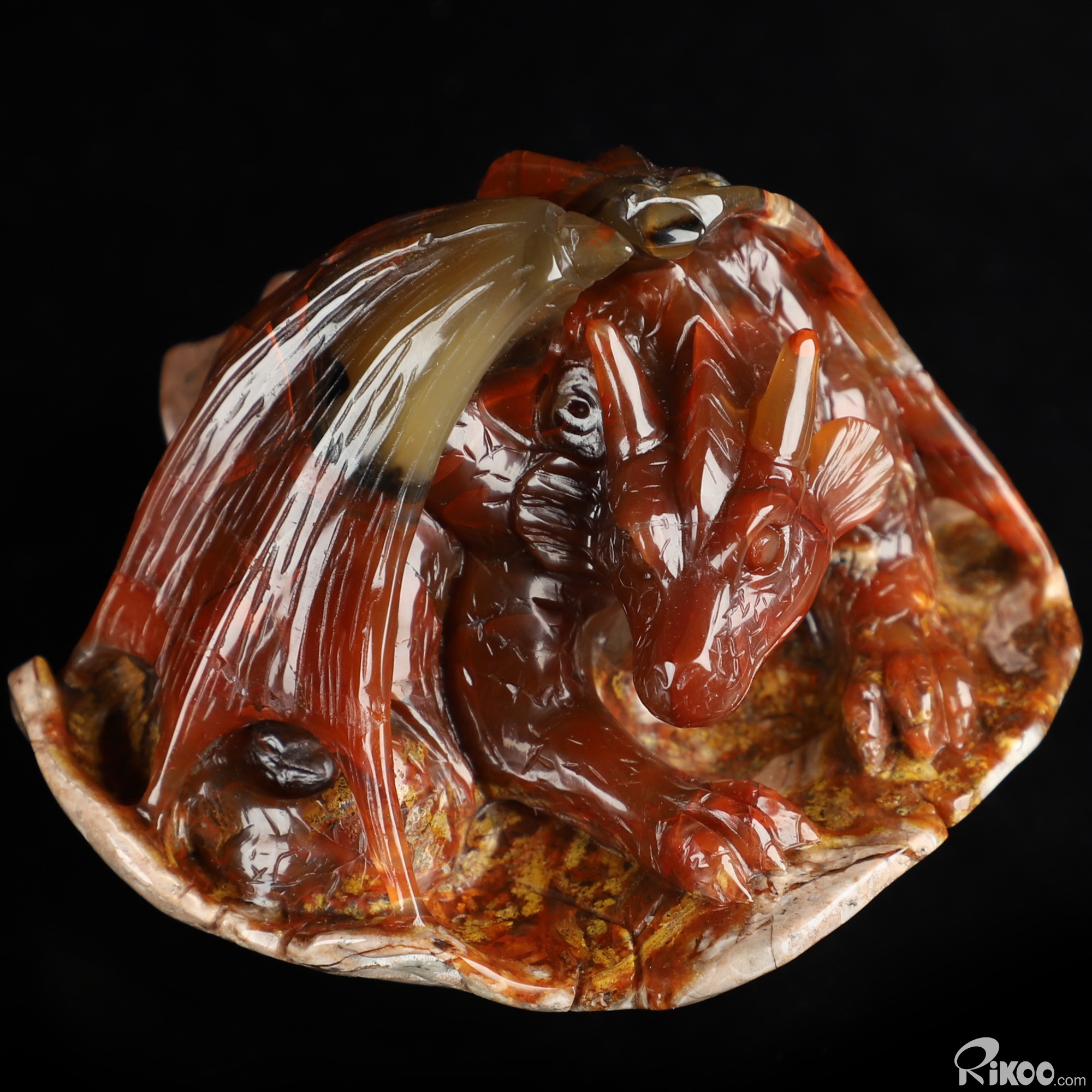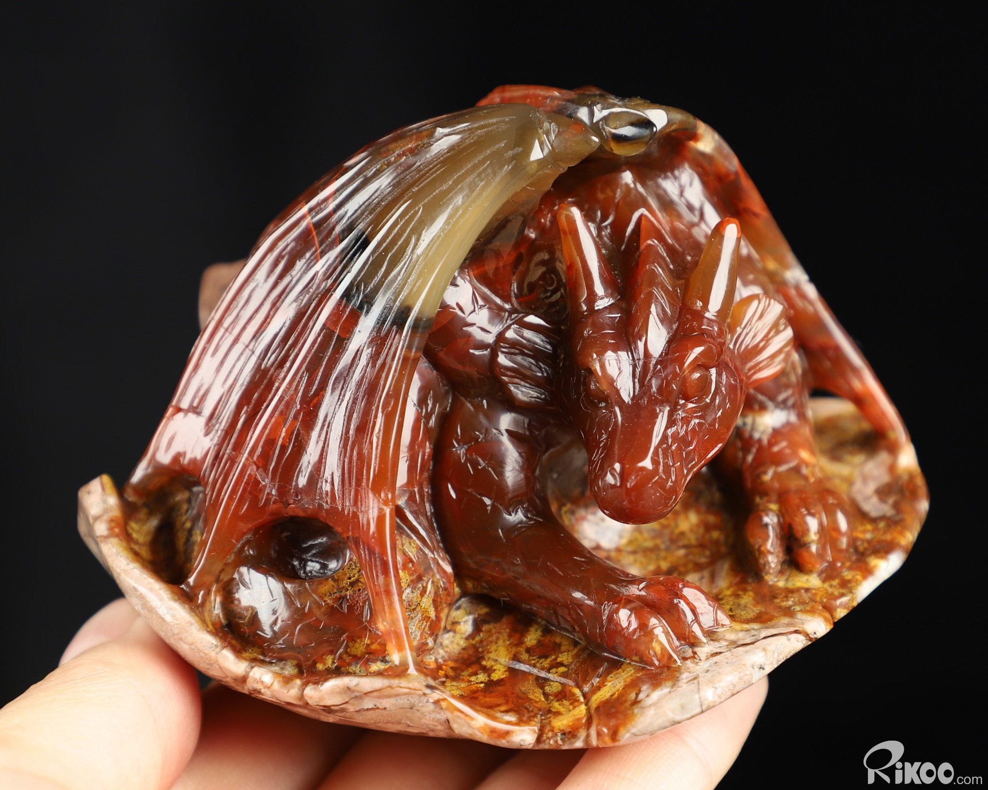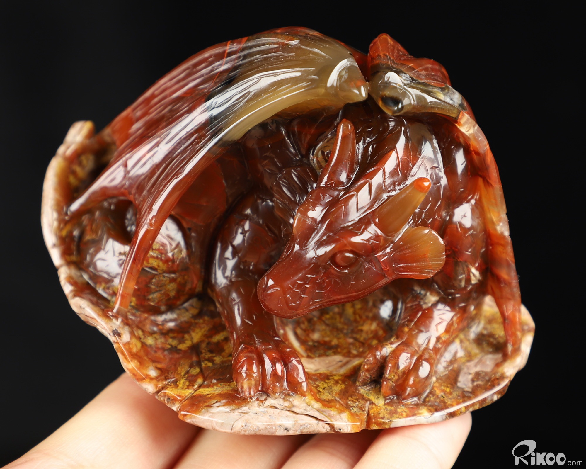 3.3" Empire Red Agate Hand Carved Crystal Dragon Sculpture, Crystal Healing