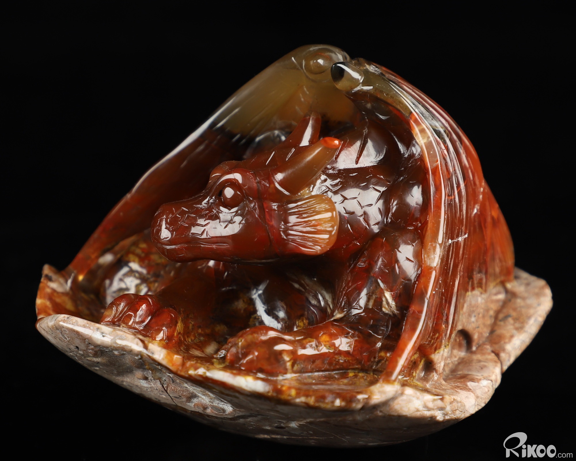 You are looking at a Empire Red Agate sculpture. The sculpture is 3.3 inches long.