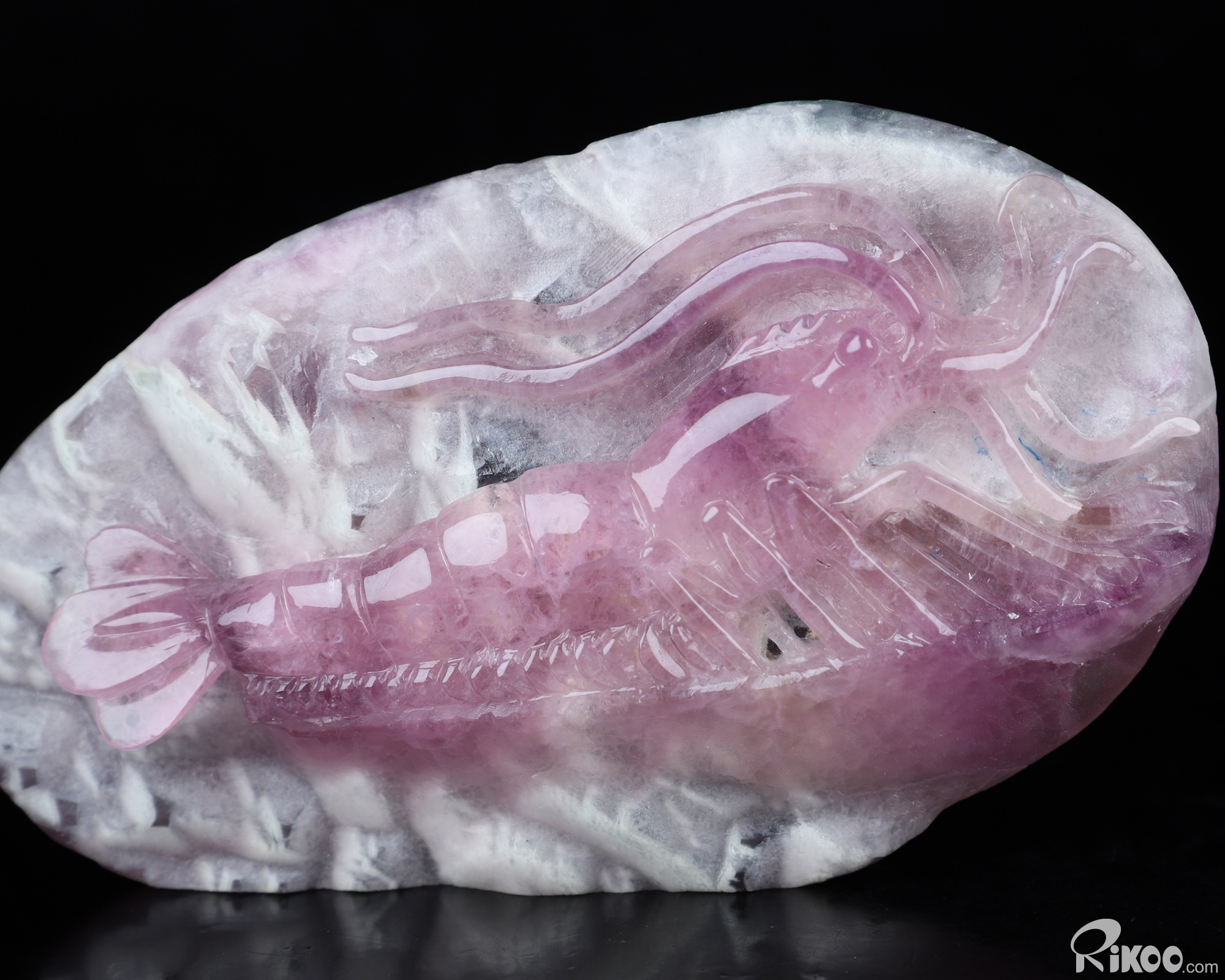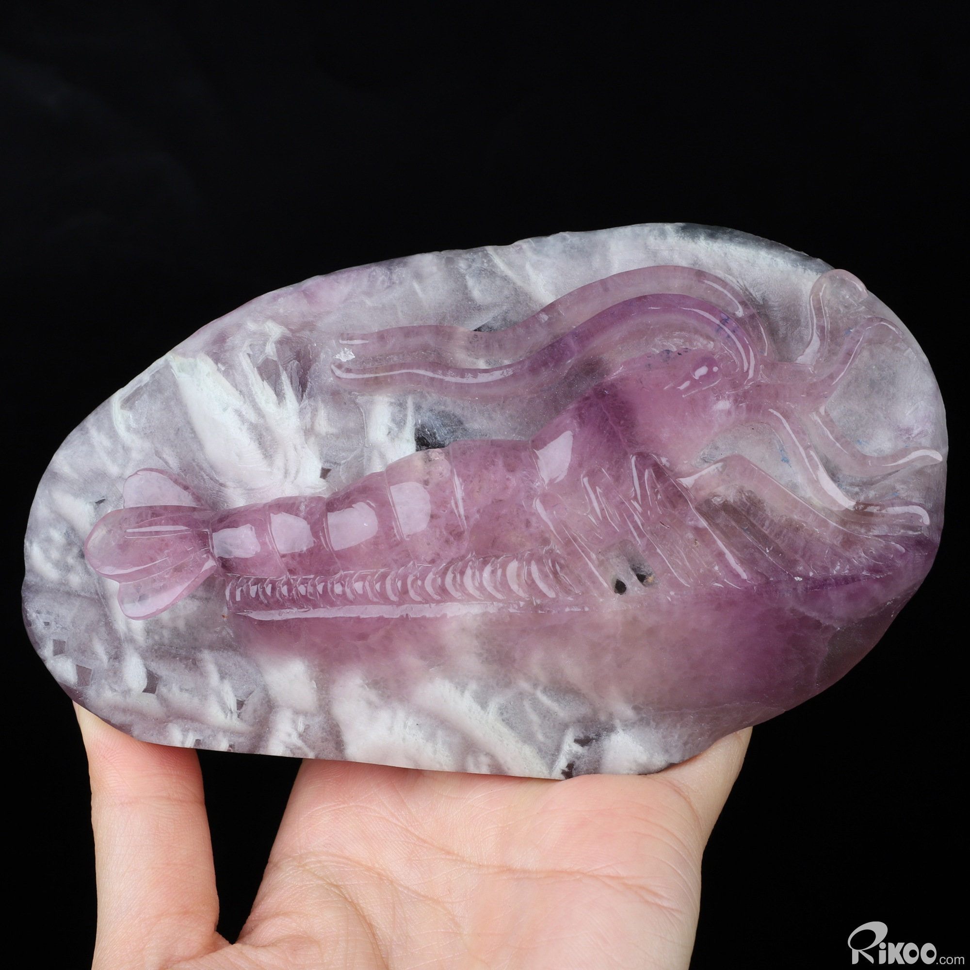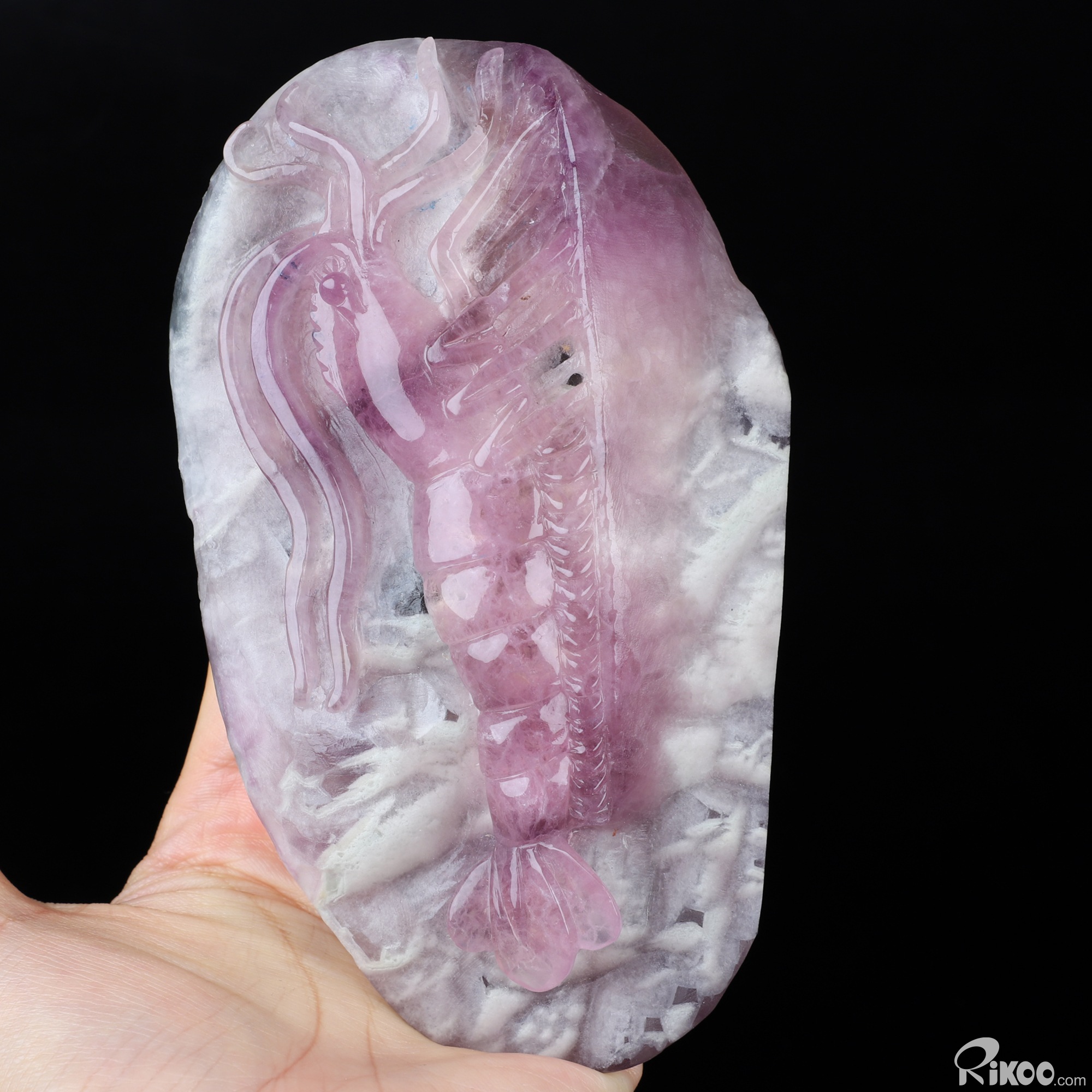 3.3" Fluorite Hand Carved Crystal Shrimp Sculpture, Crystal Healing