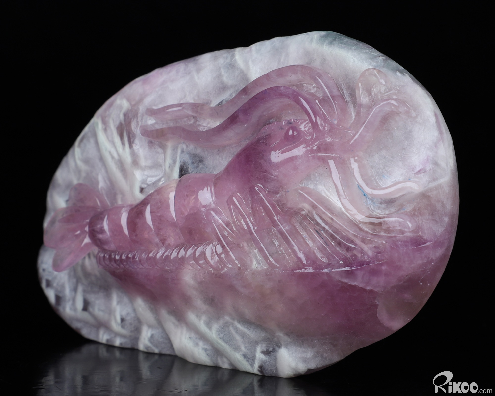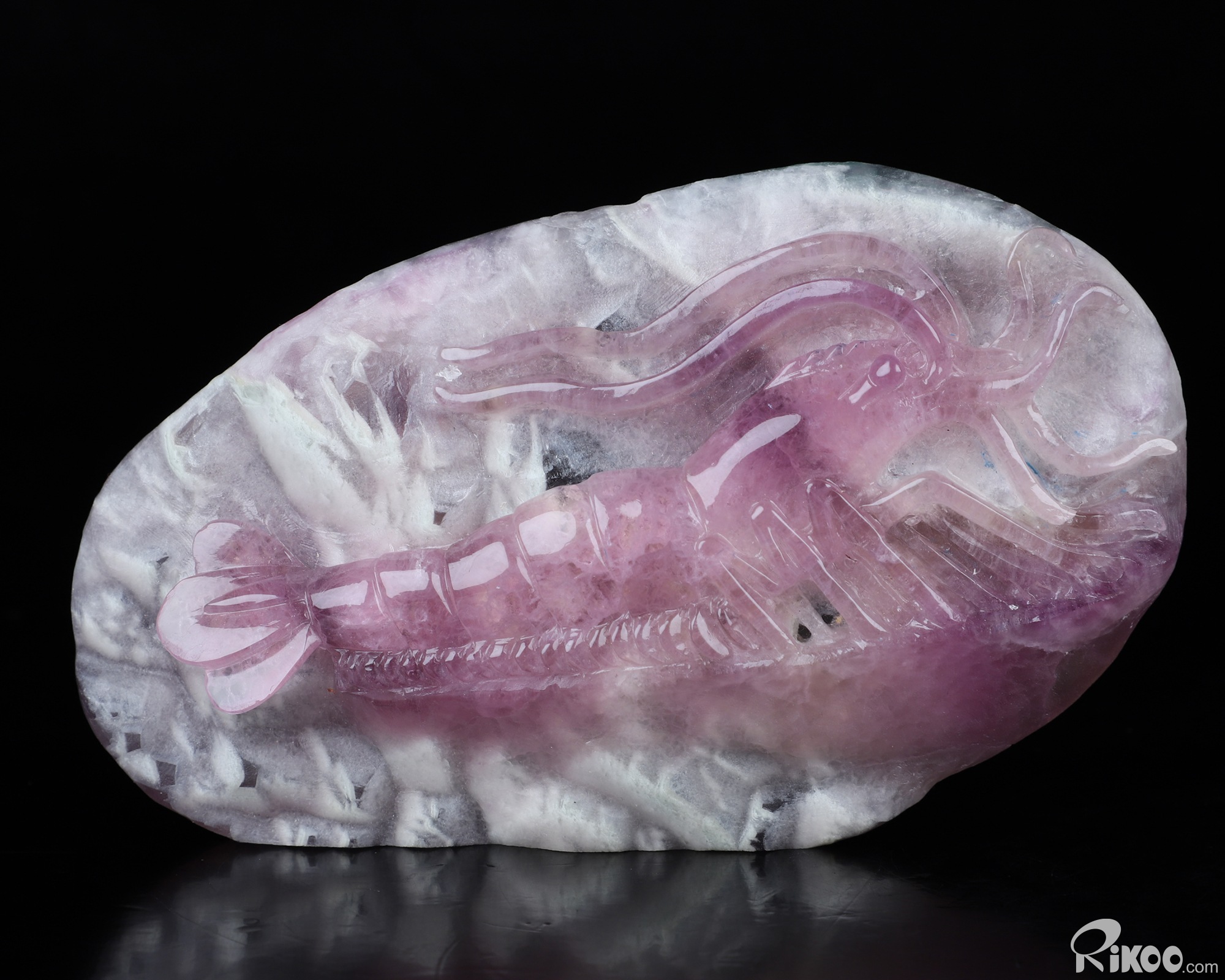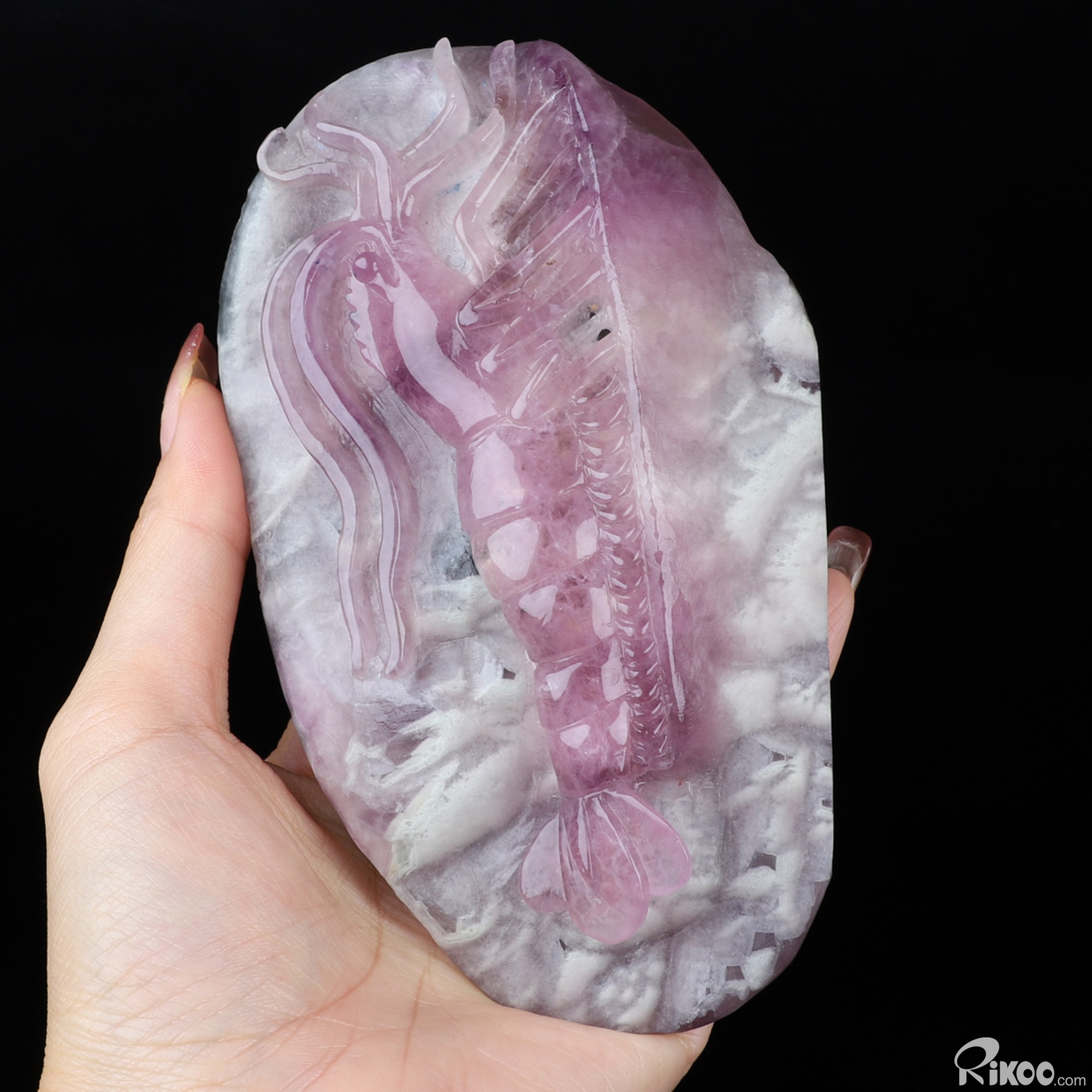 3.3" Fluorite Hand Carved Crystal Shrimp Sculpture, Crystal Healing