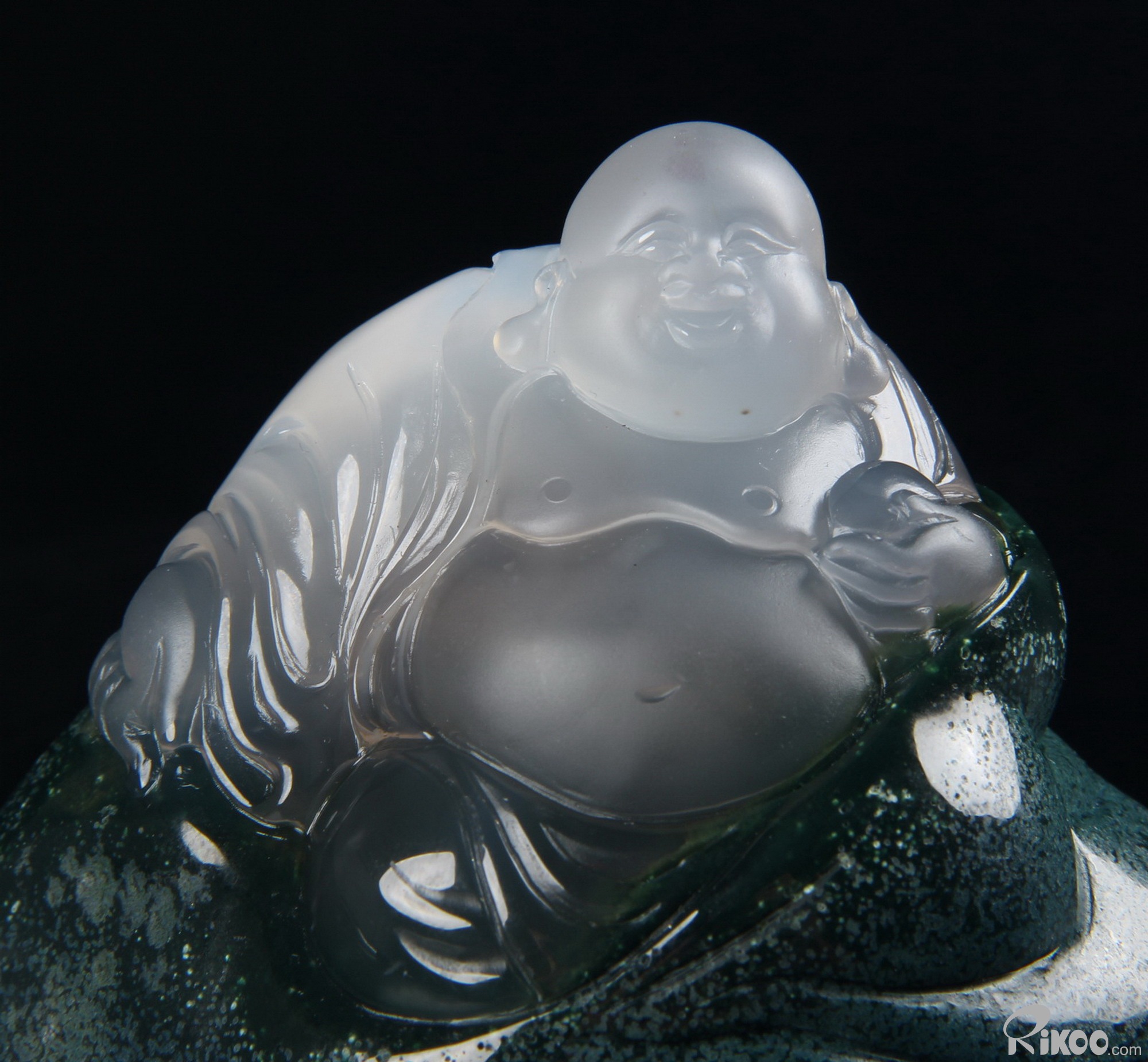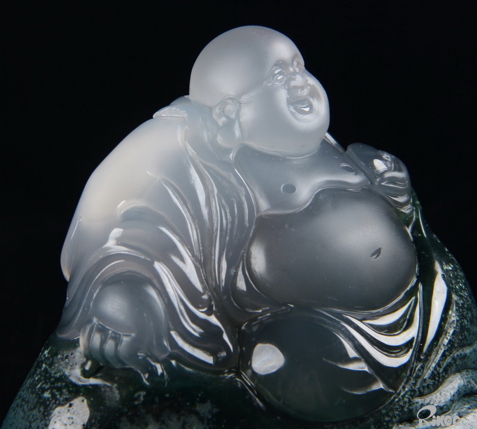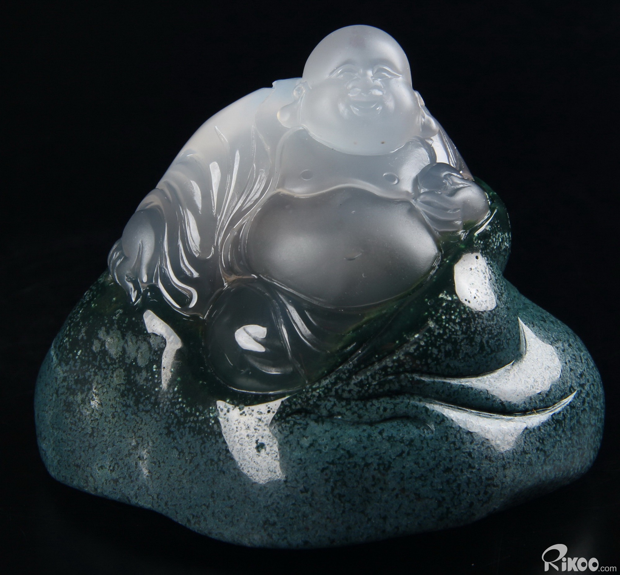 3.3" Green Moss Agate Carved Crystal Buddha, Crystal Healing