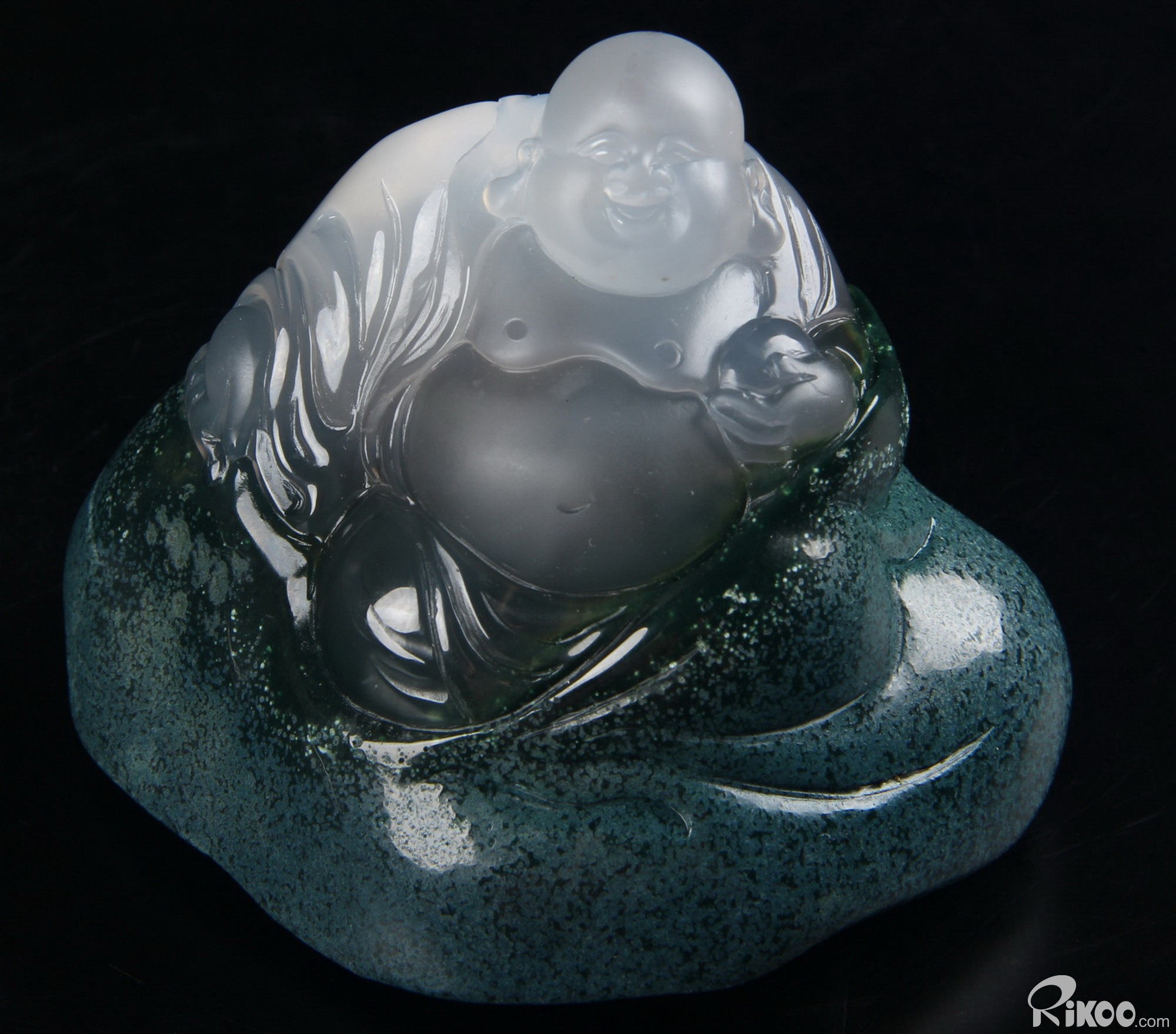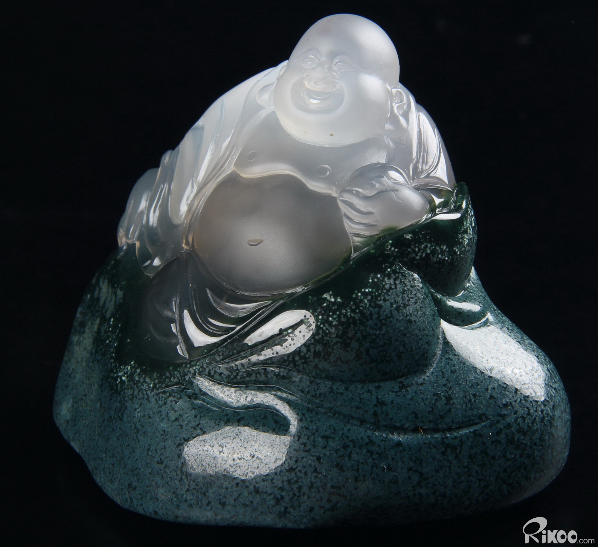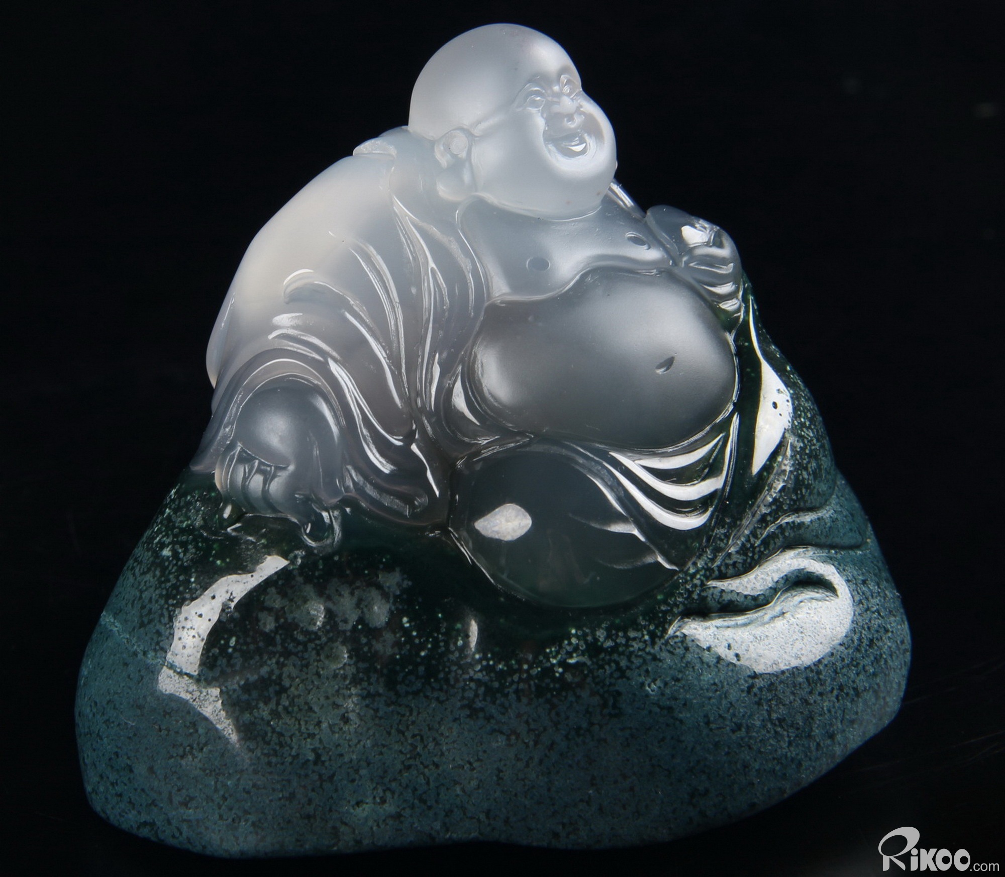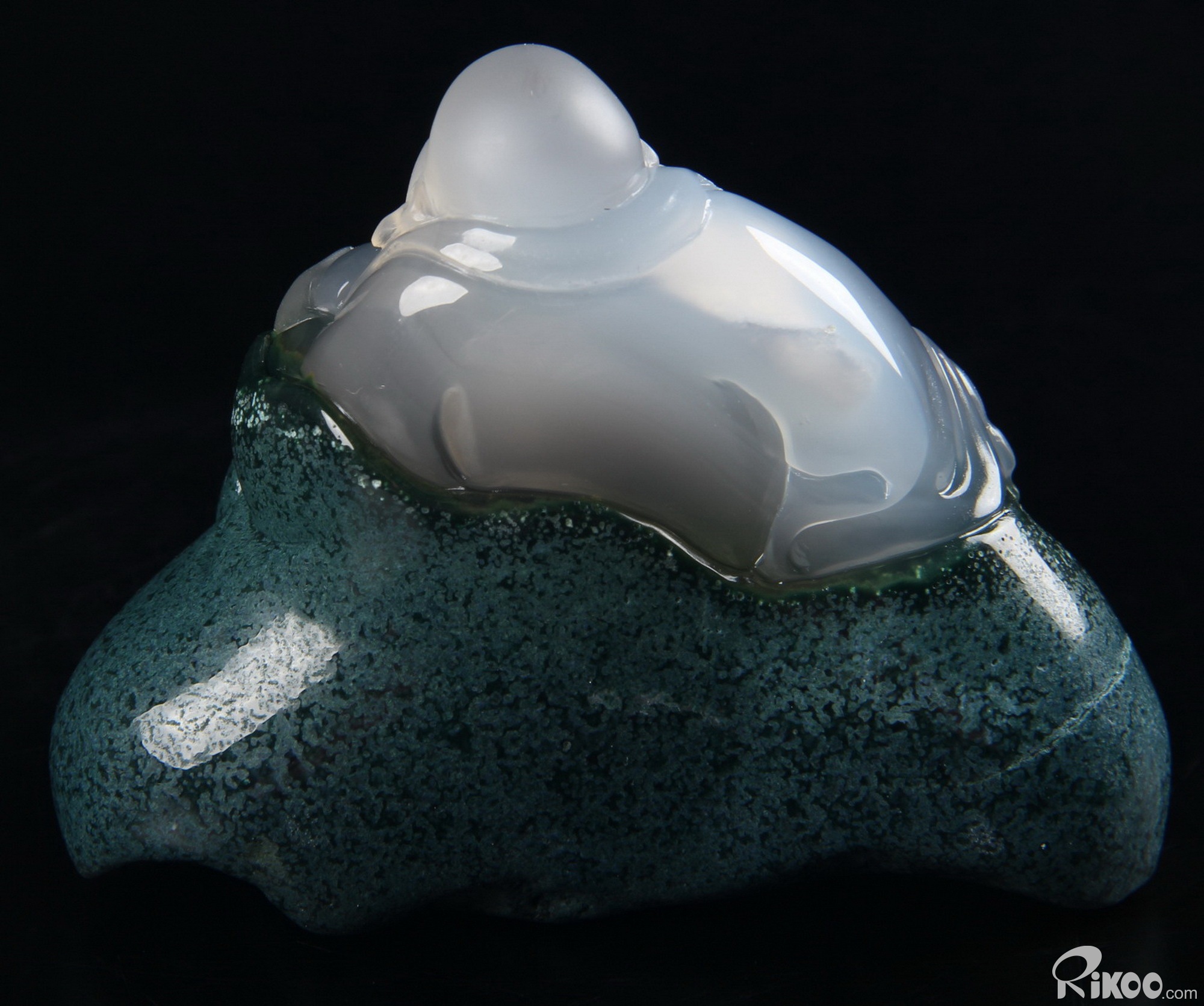 3.3" Green Moss Agate Carved Crystal Buddha, Crystal Healing