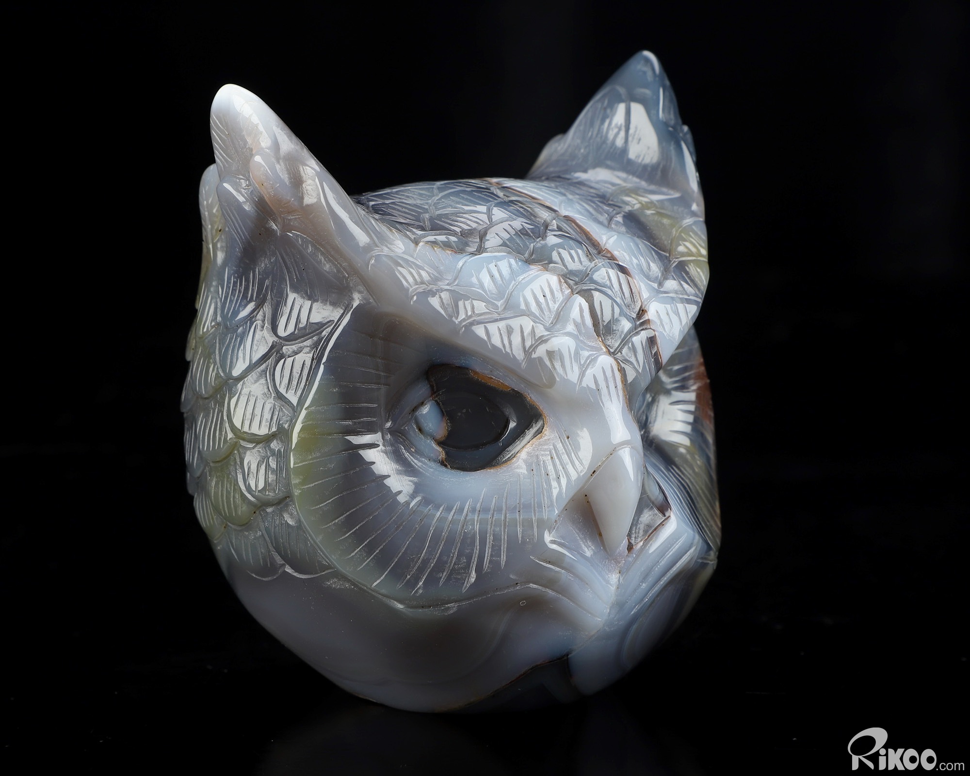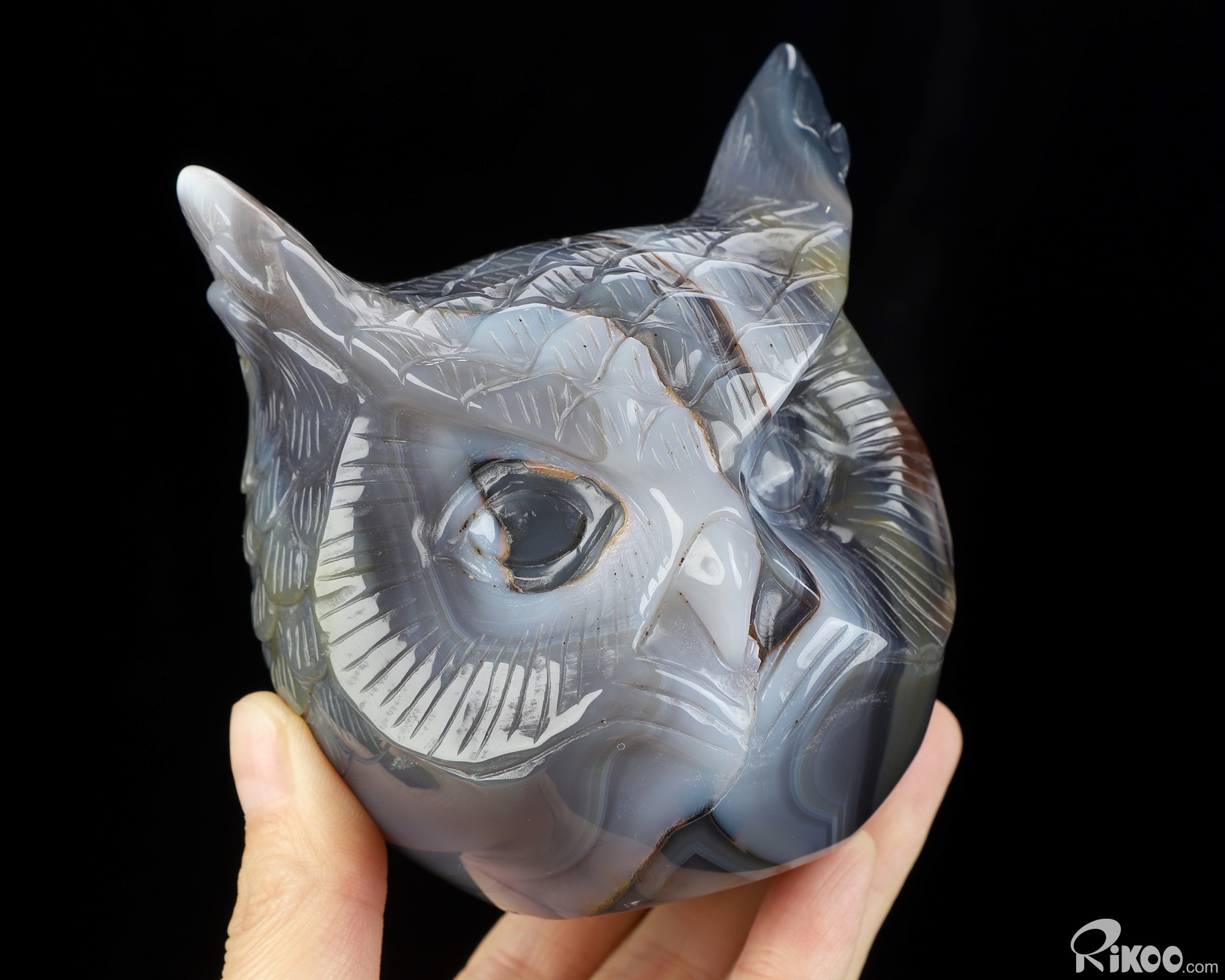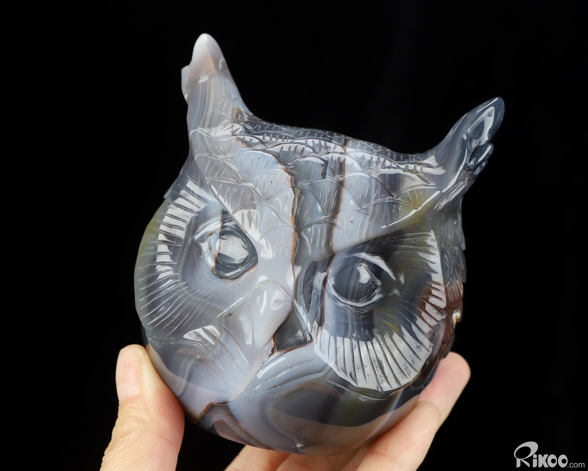 3.3" Premium Brazilian Agate Hand Carved Crystal Owl Sculpture, Crystal Healing