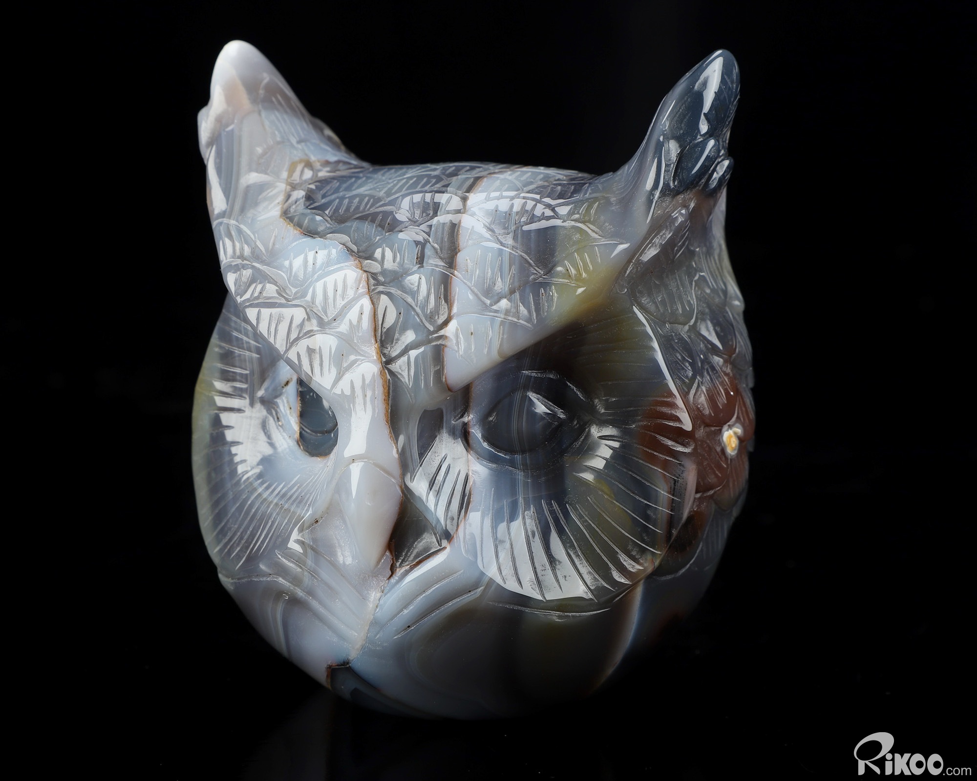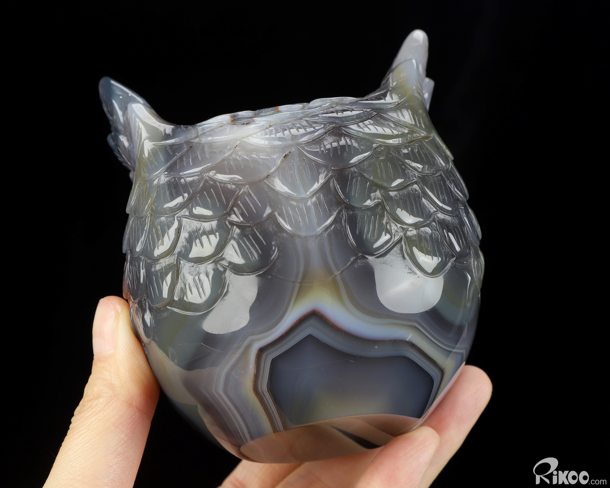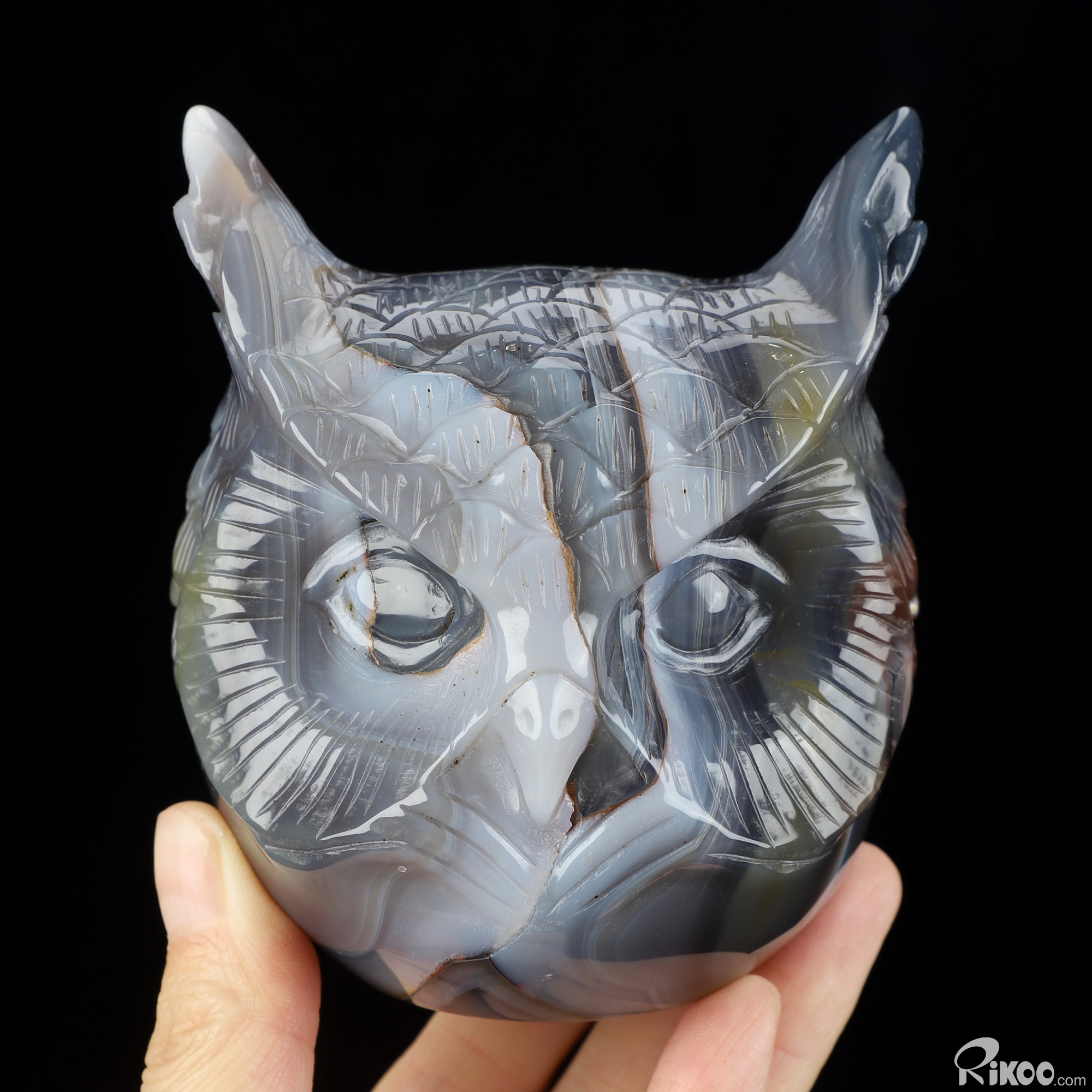3.3" Premium Brazilian Agate Hand Carved Crystal Owl Sculpture, Crystal Healing
