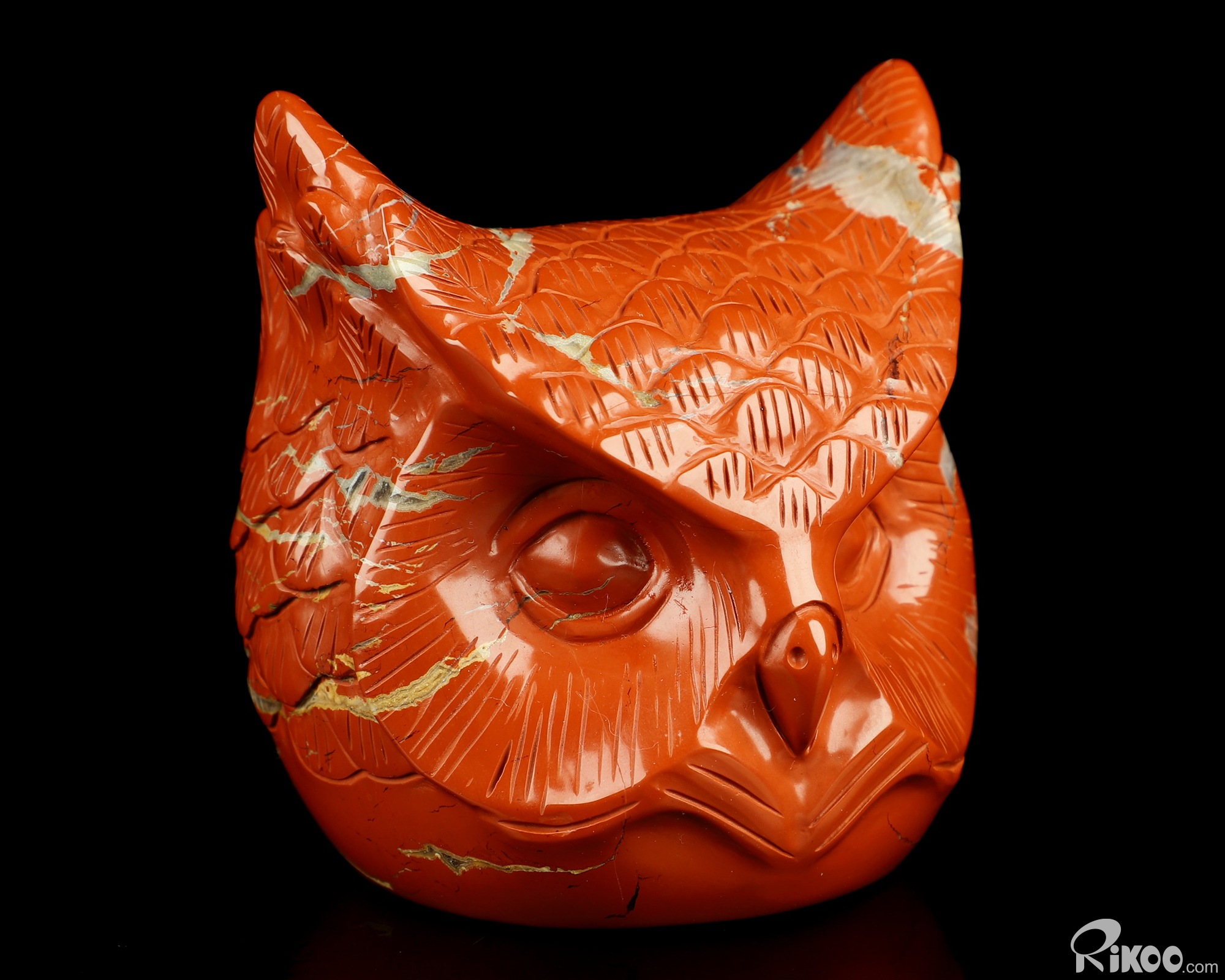 3.3" Red Jasper Hand Carved Crystal Owl Sculpture, Crystal Healing
