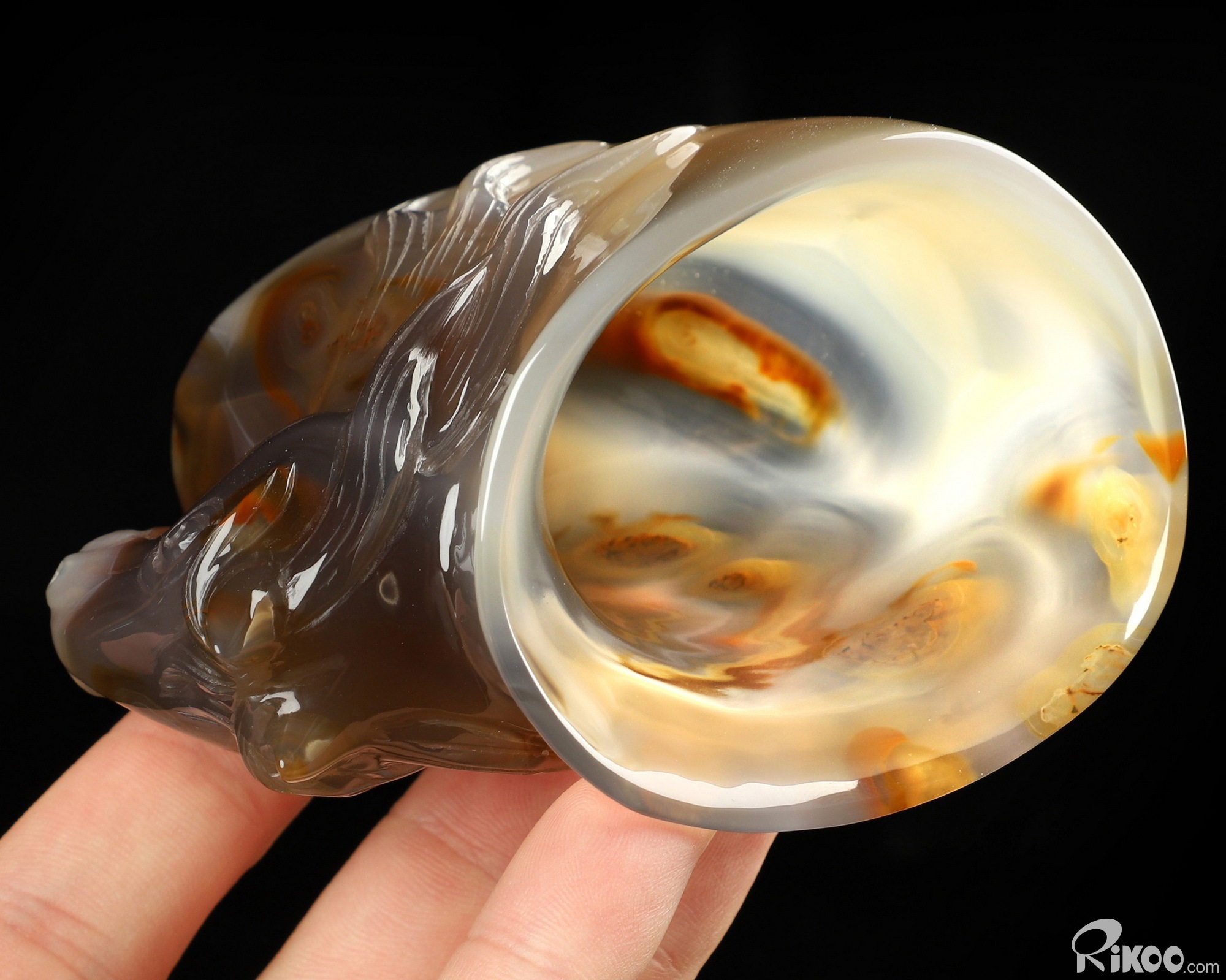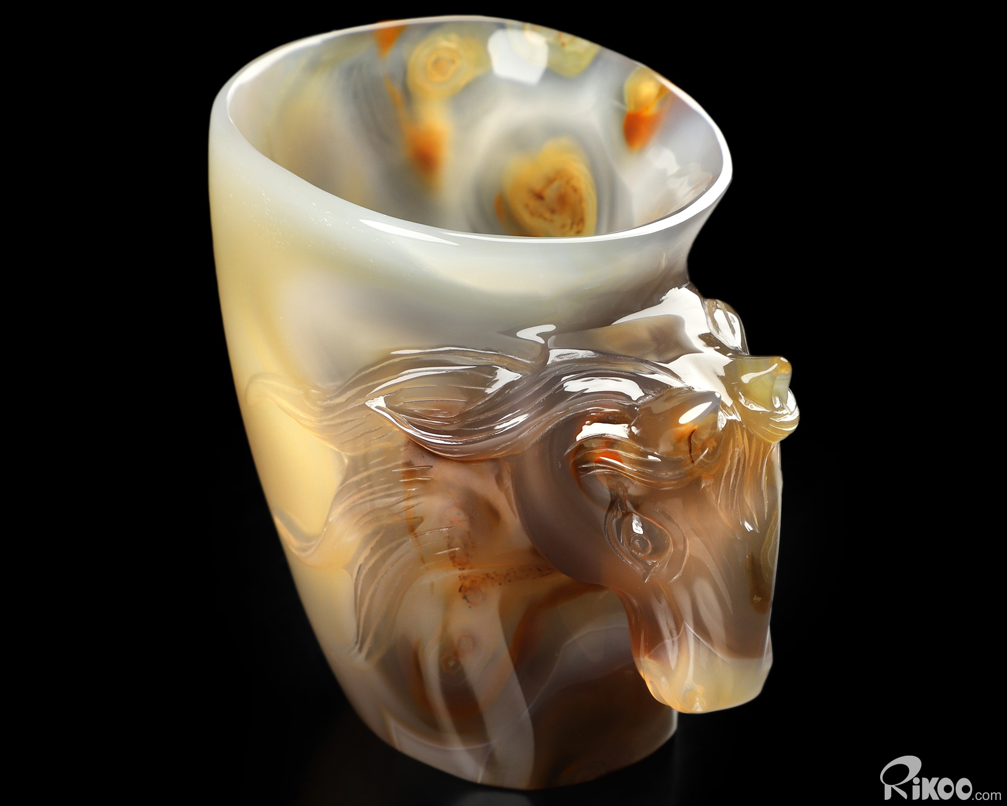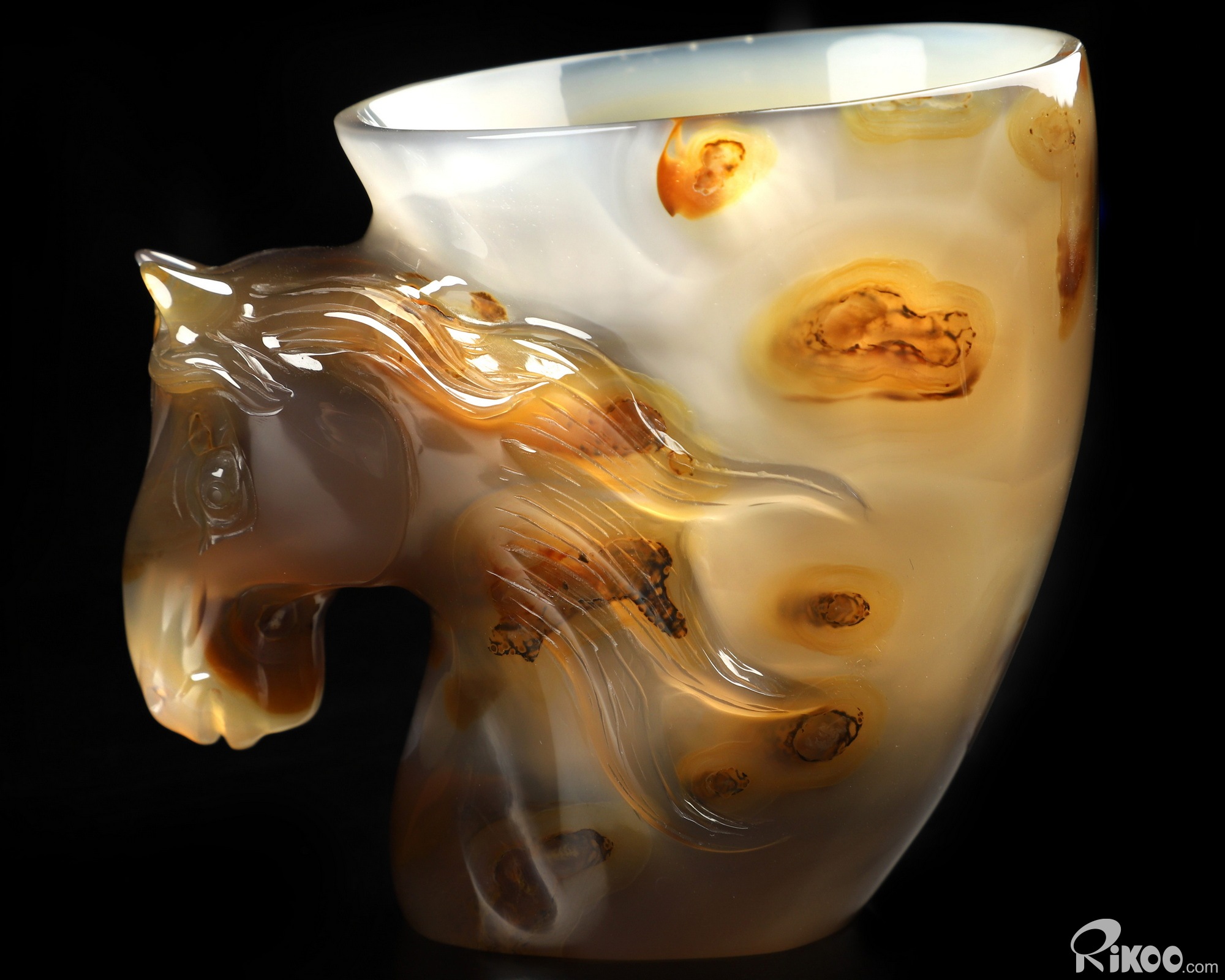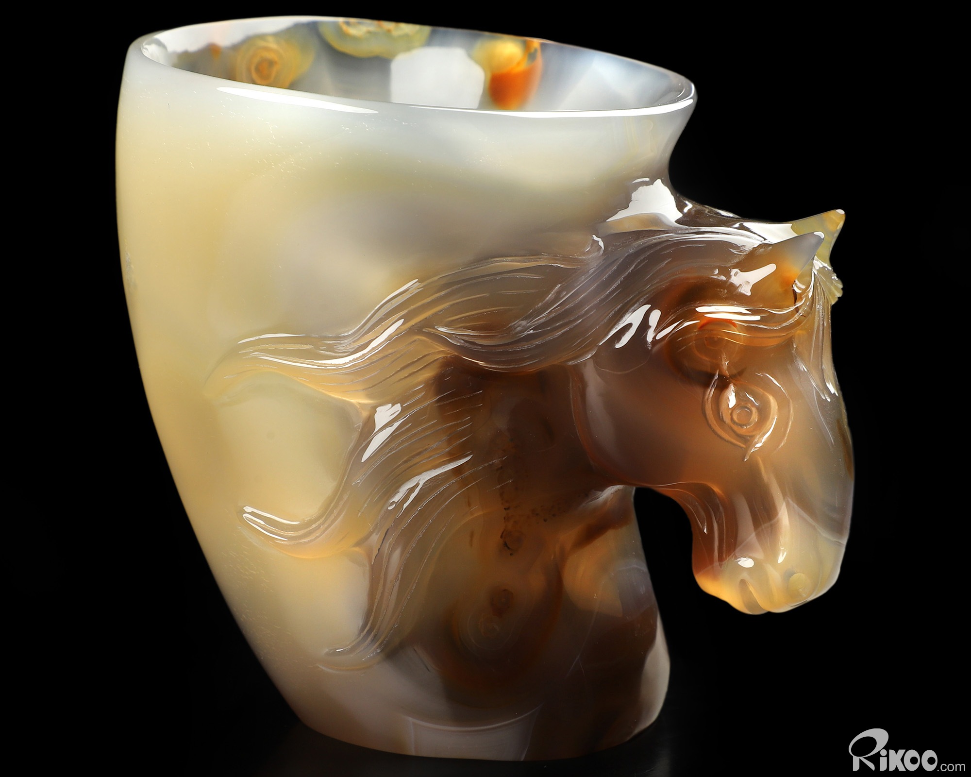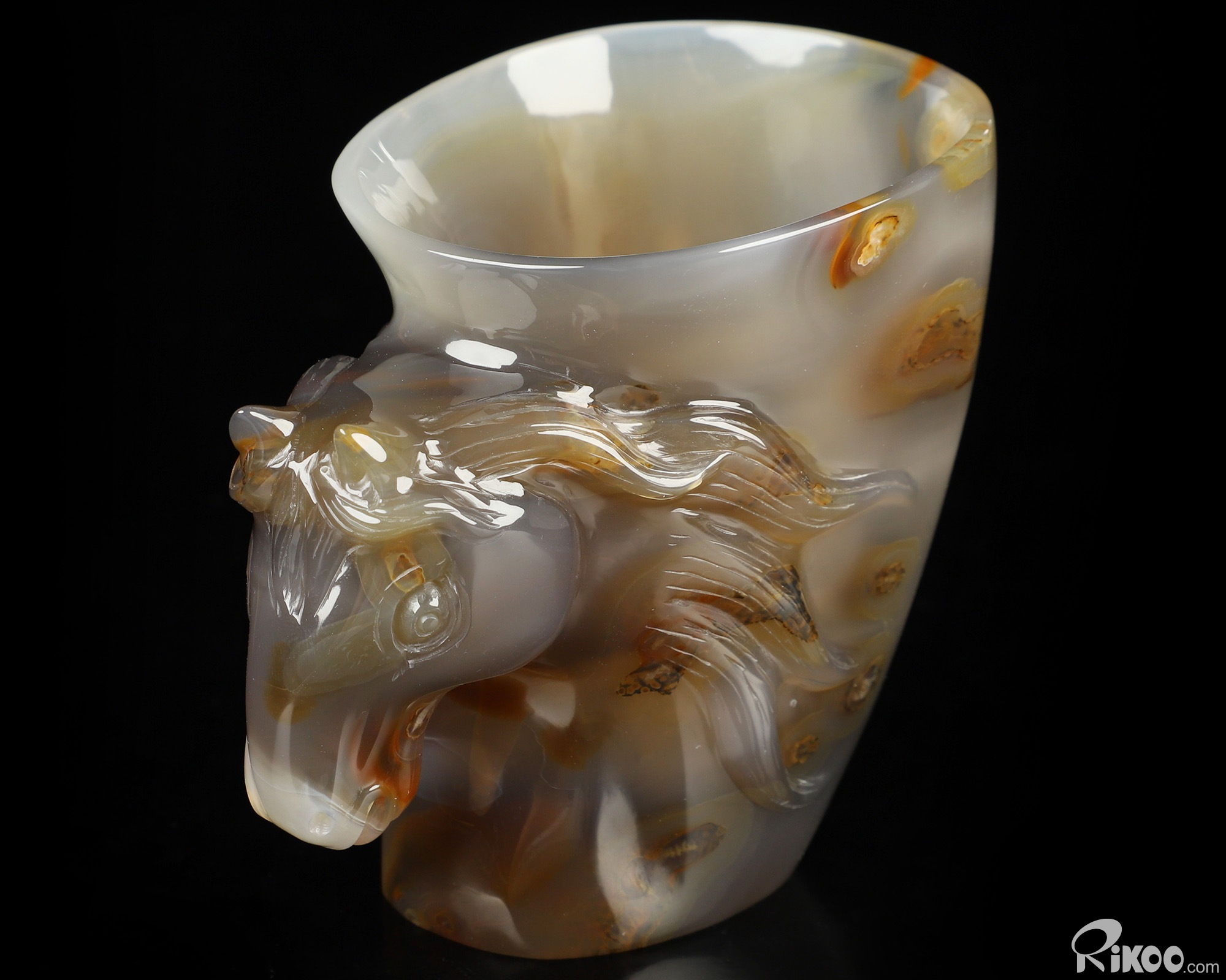 3.4" Premium Brazilian Agate Hand Carved Crystal Horse Cup, Crystal Healing