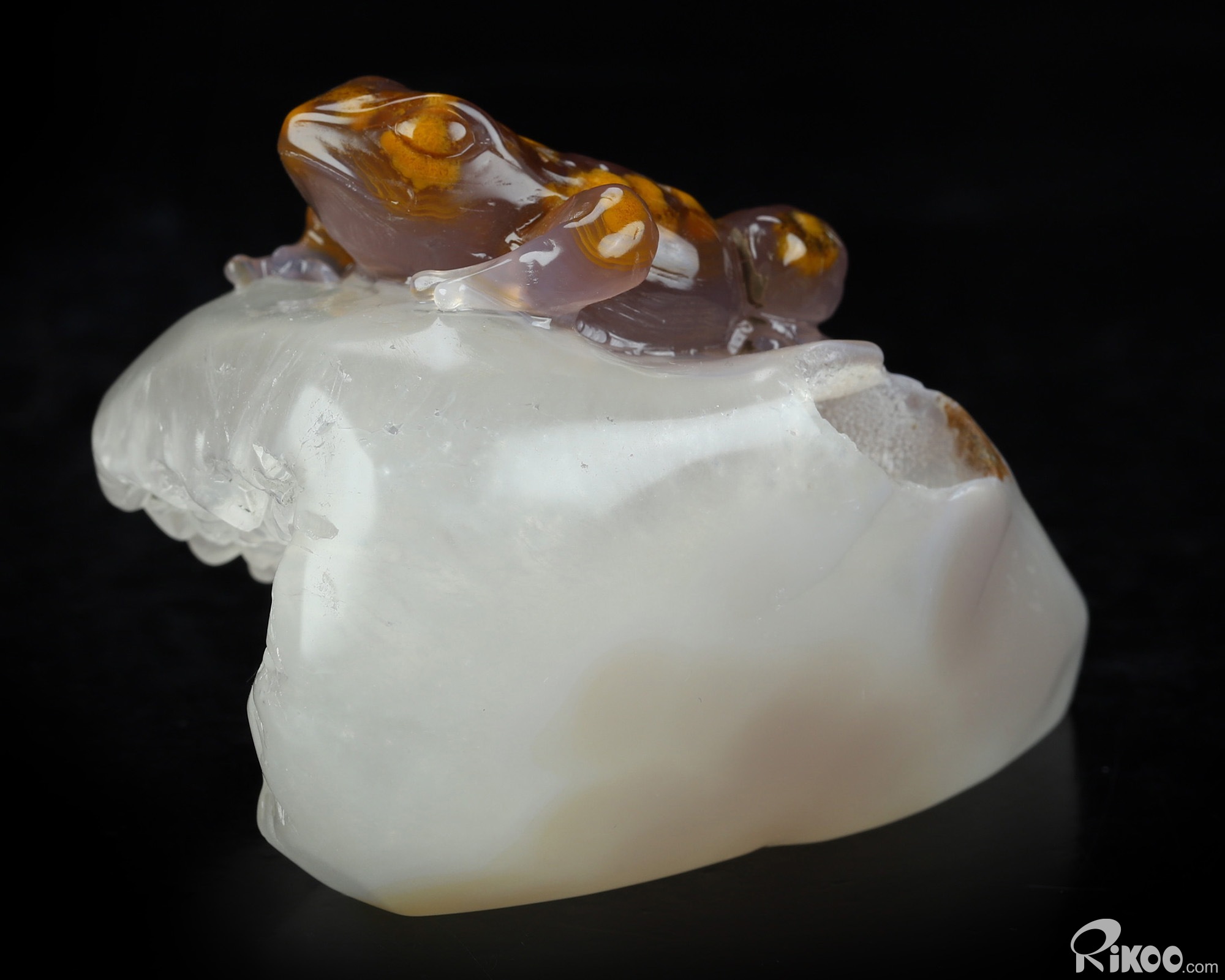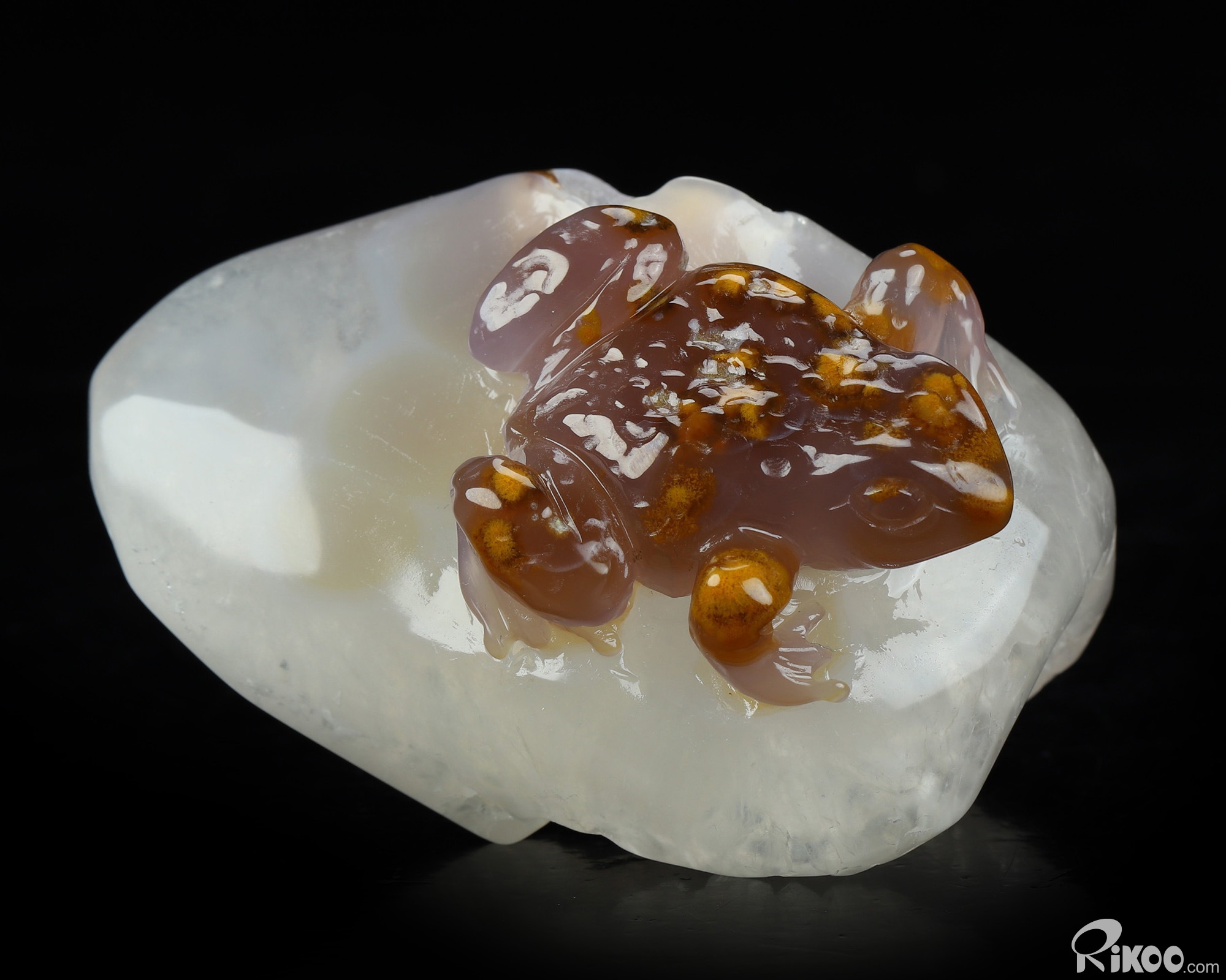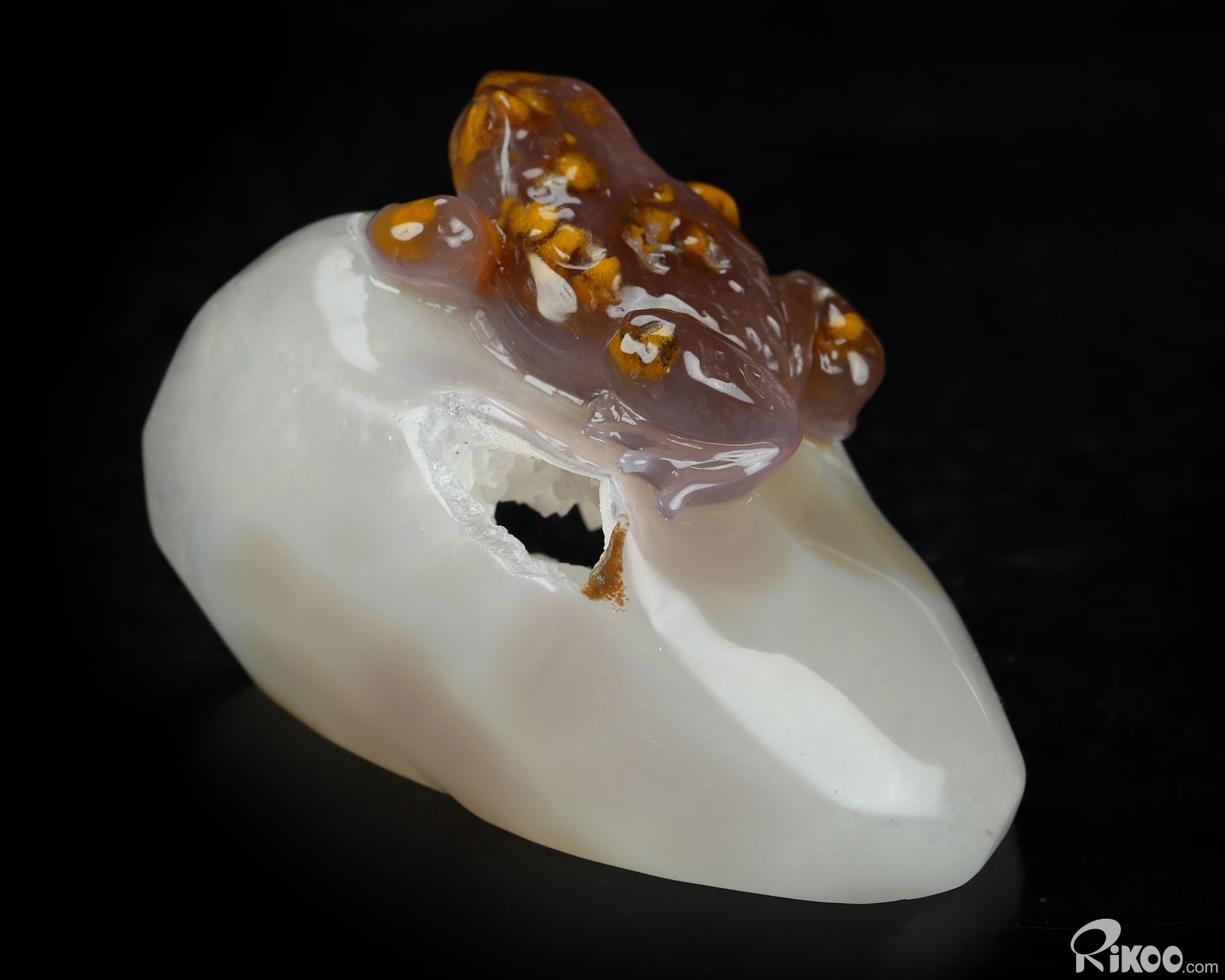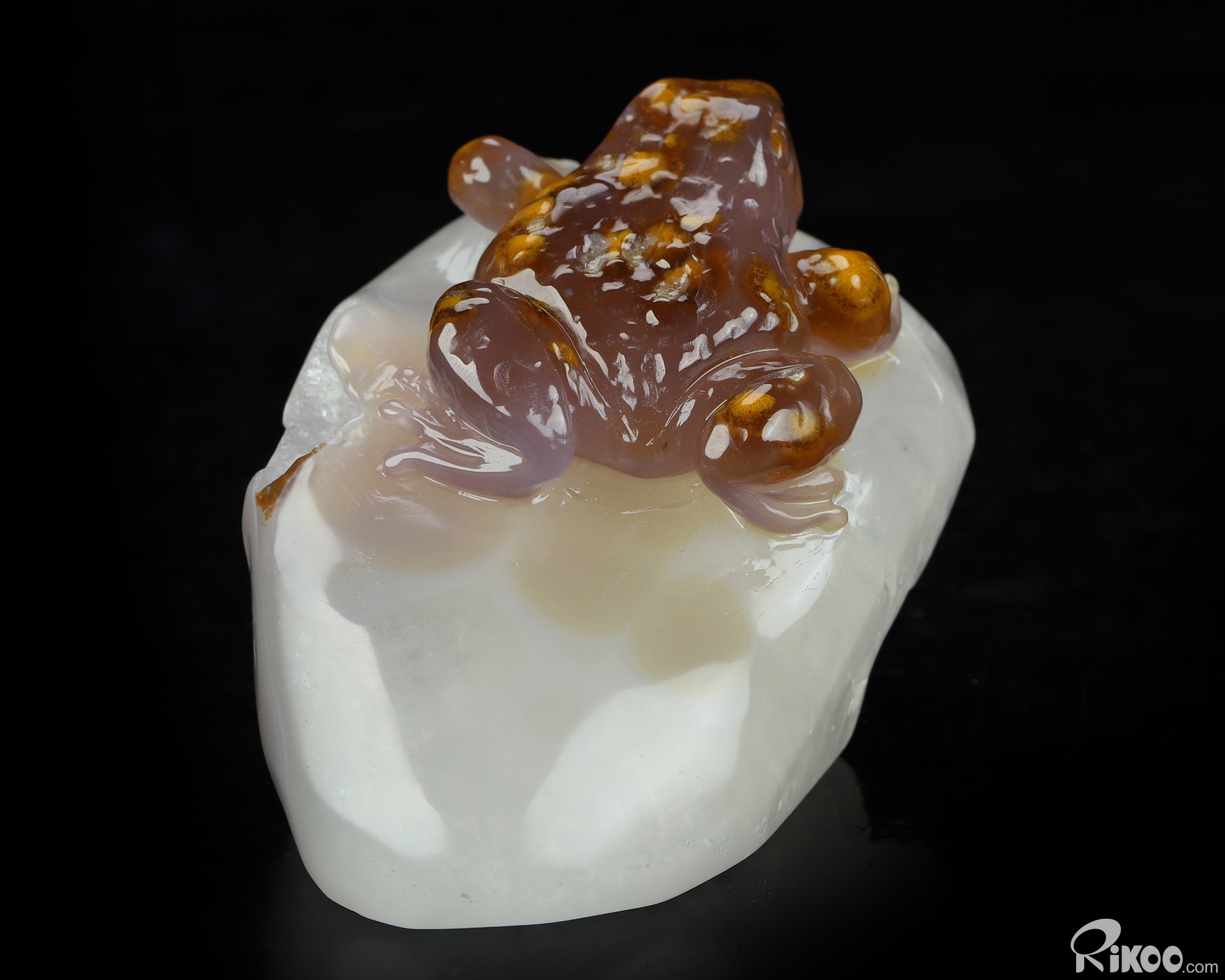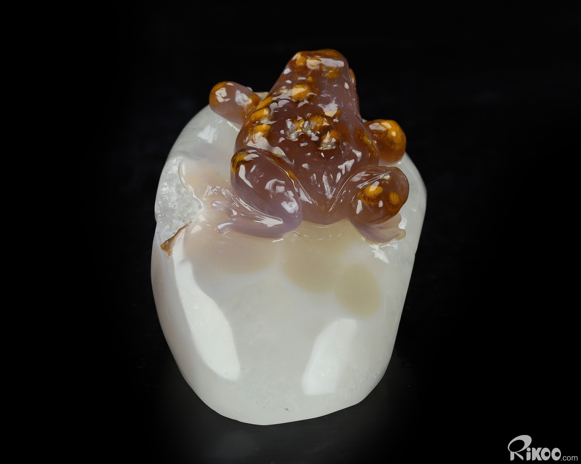 3.5" Agate Hand Carved Crystal Frog Sculpture, Crystal Healing