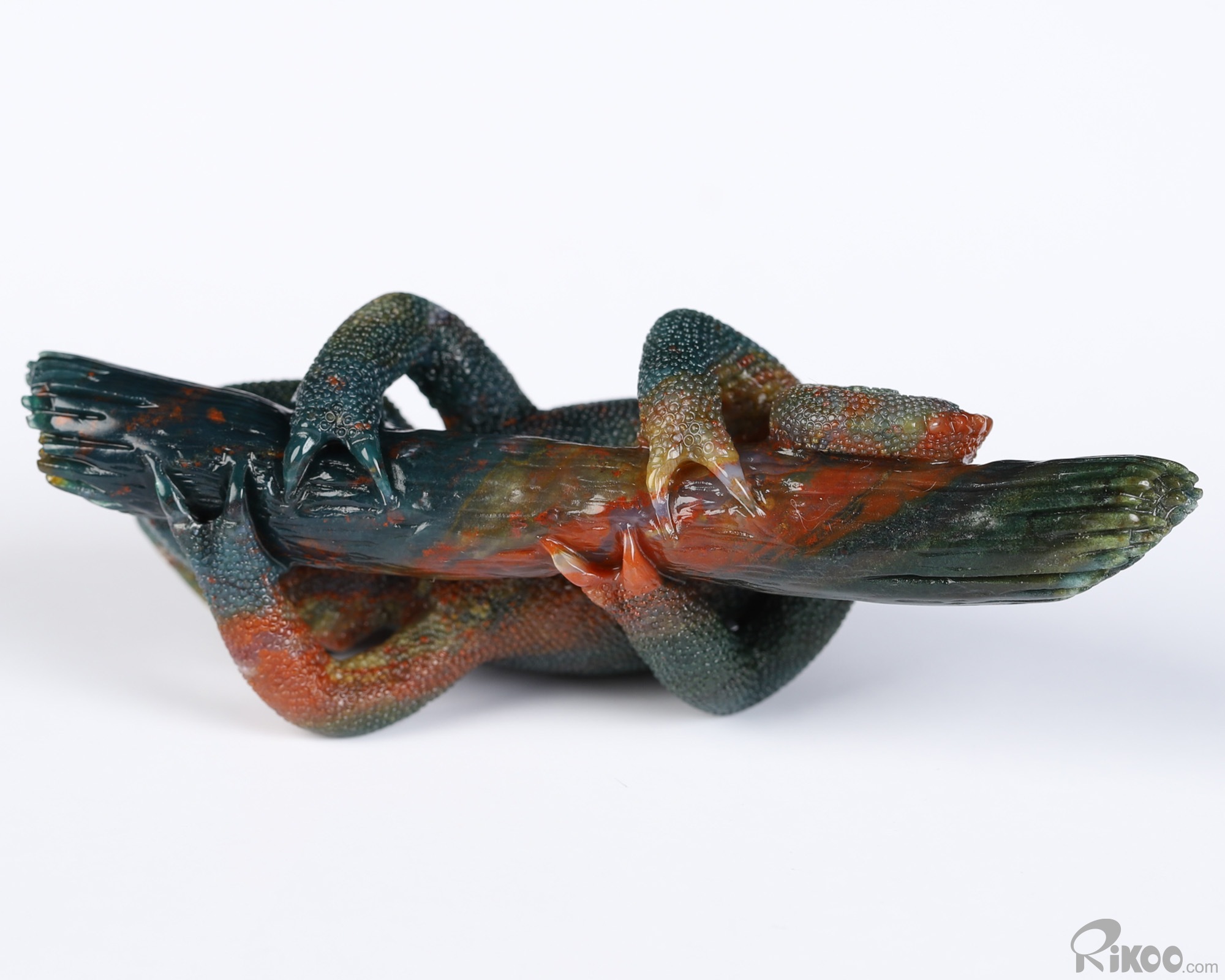 You are looking at a Bloodstone sculpture. The sculpture is 3.5 inches long.