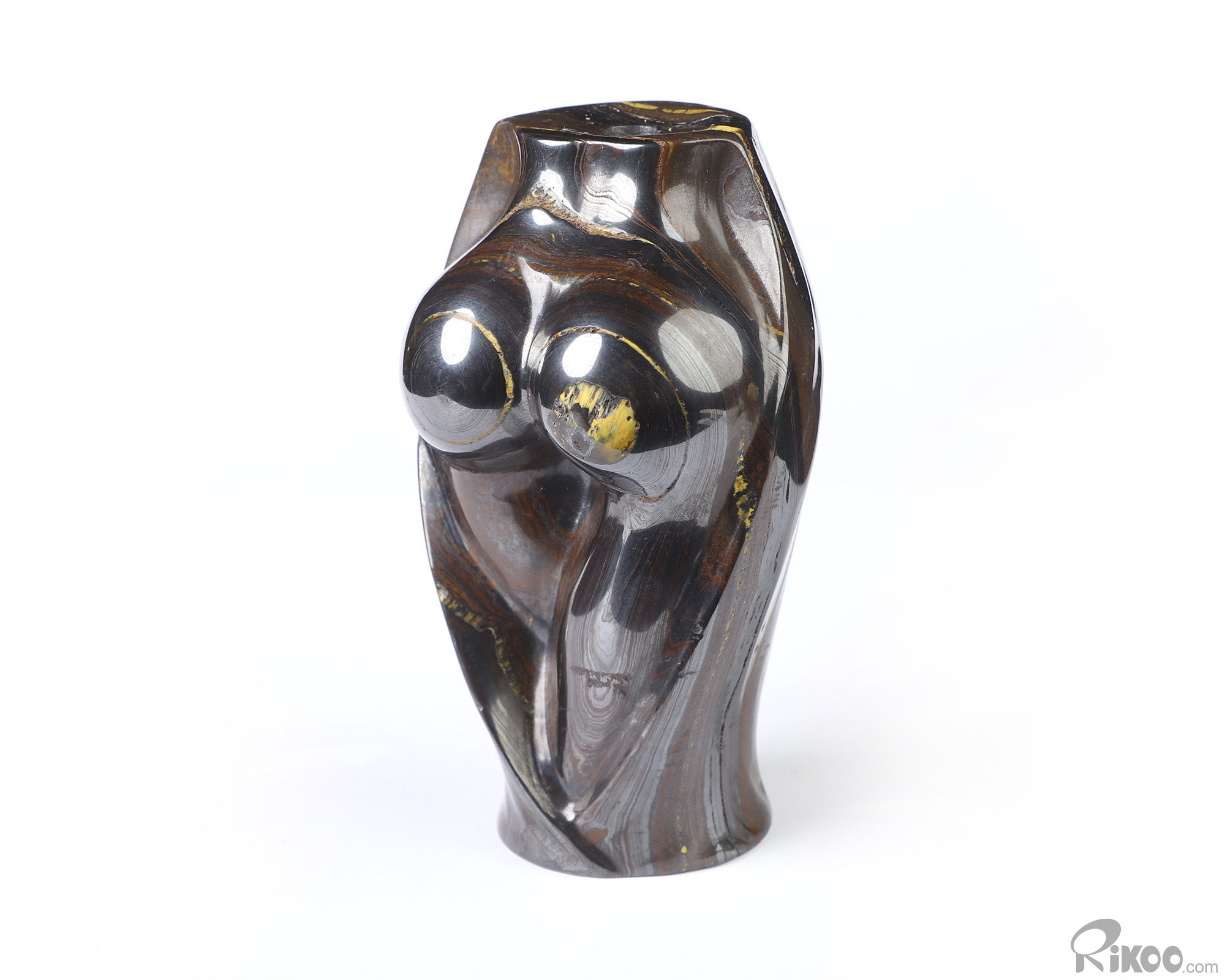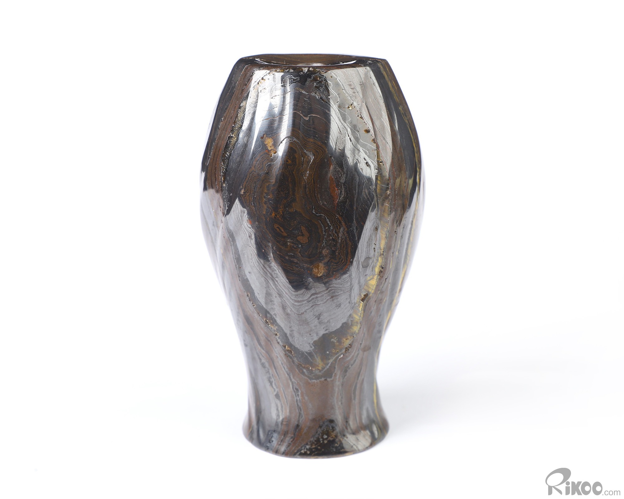 3.5" Colorful Tiger Iron Eye Hand Carved Crystal Vase Sculpture, Crystal Healing