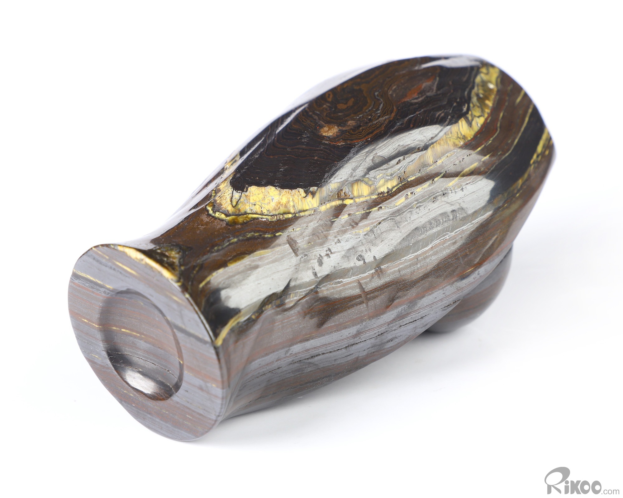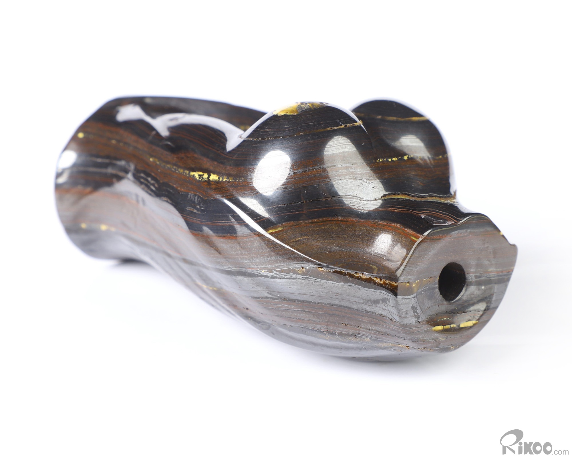 You are looking at a Colorful Tiger Iron Eye sculpture. The sculpture is 3.5 inches long.