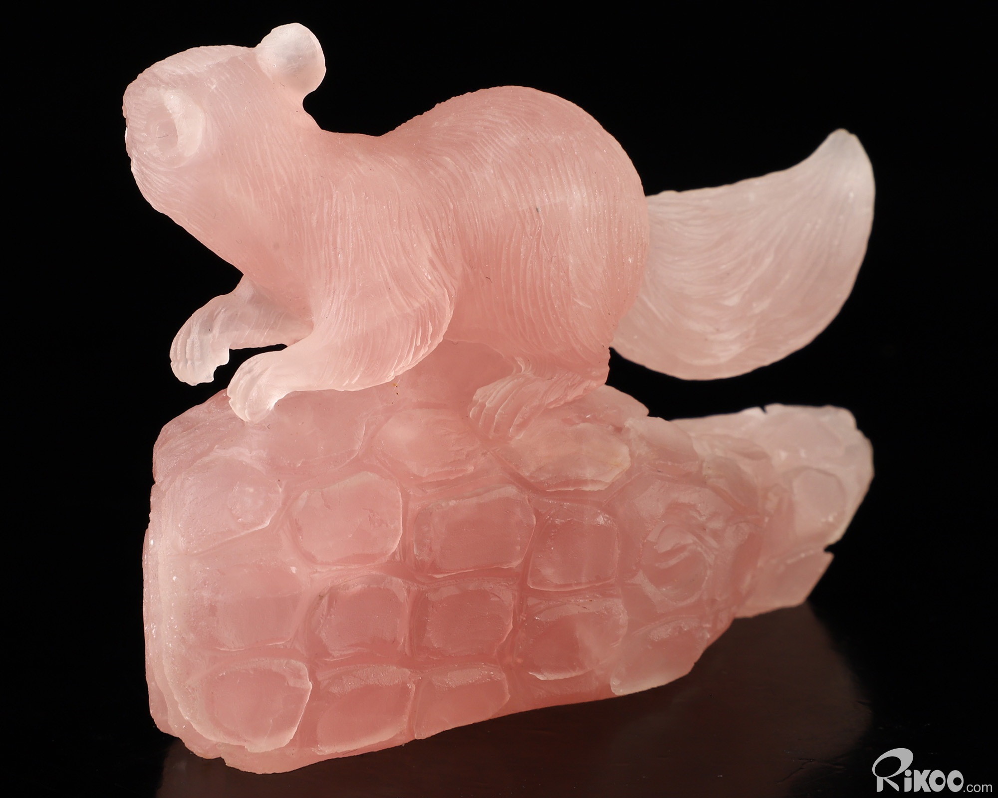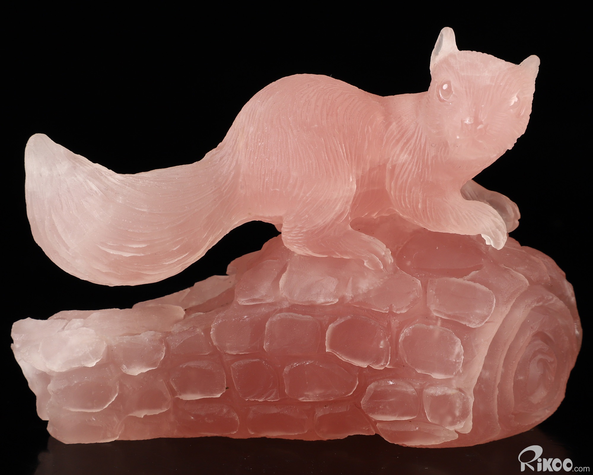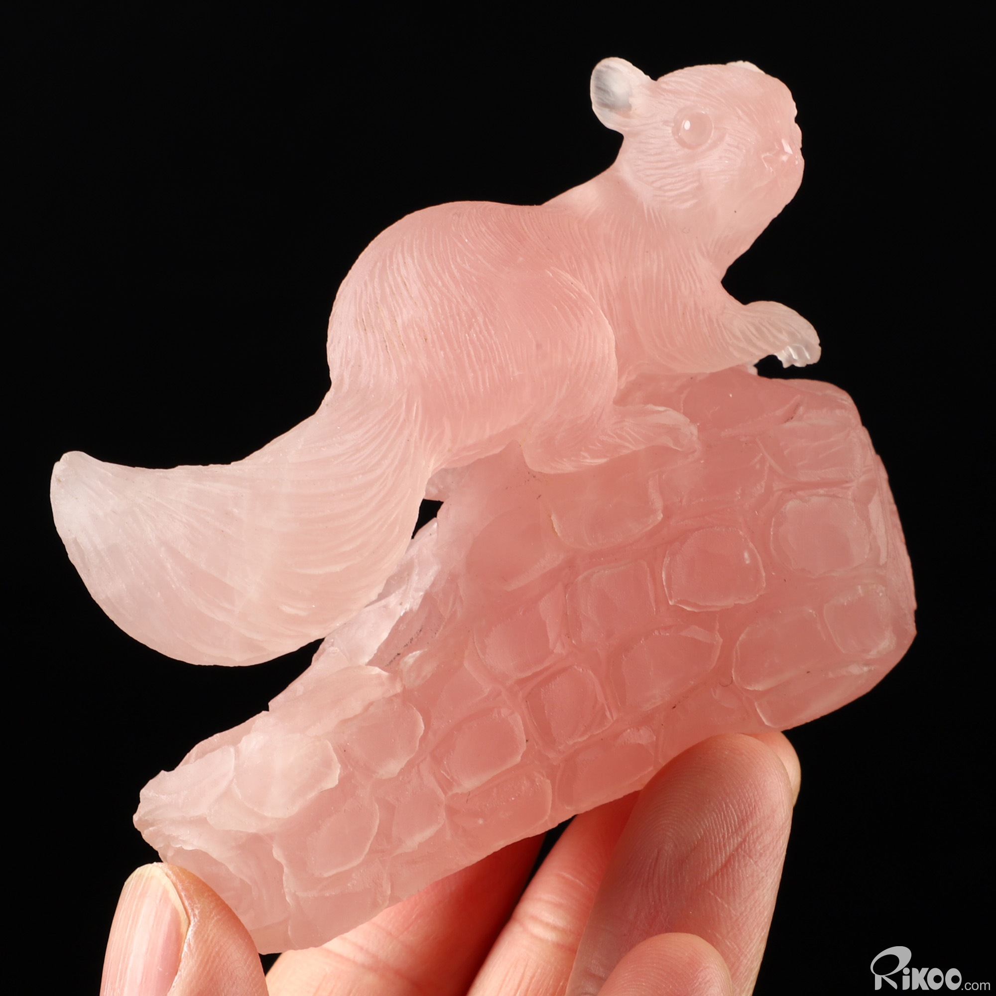 3.5" Frosted Rose Quartz Hand Carved Crystal Squirrel Sculpture, Crystal Healing