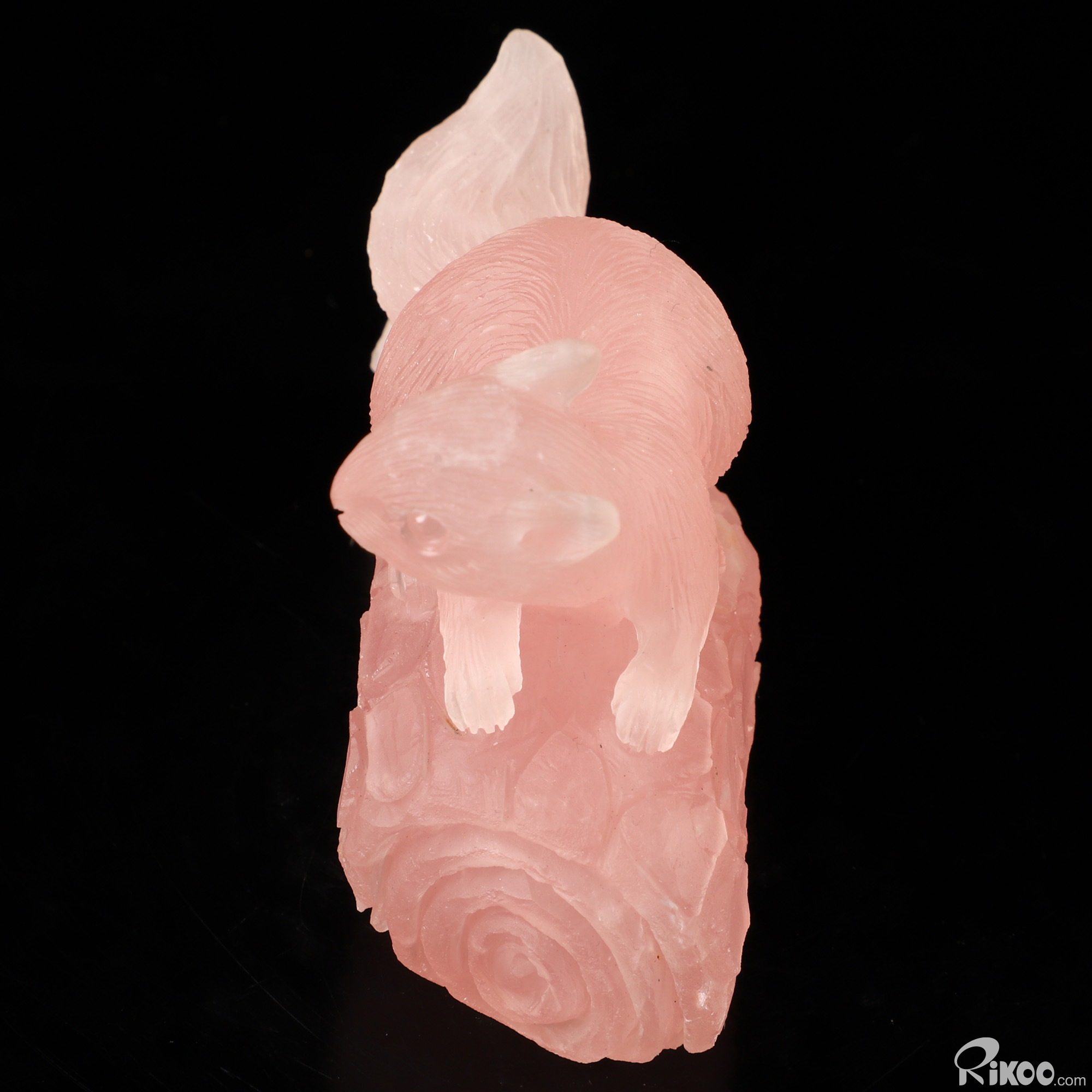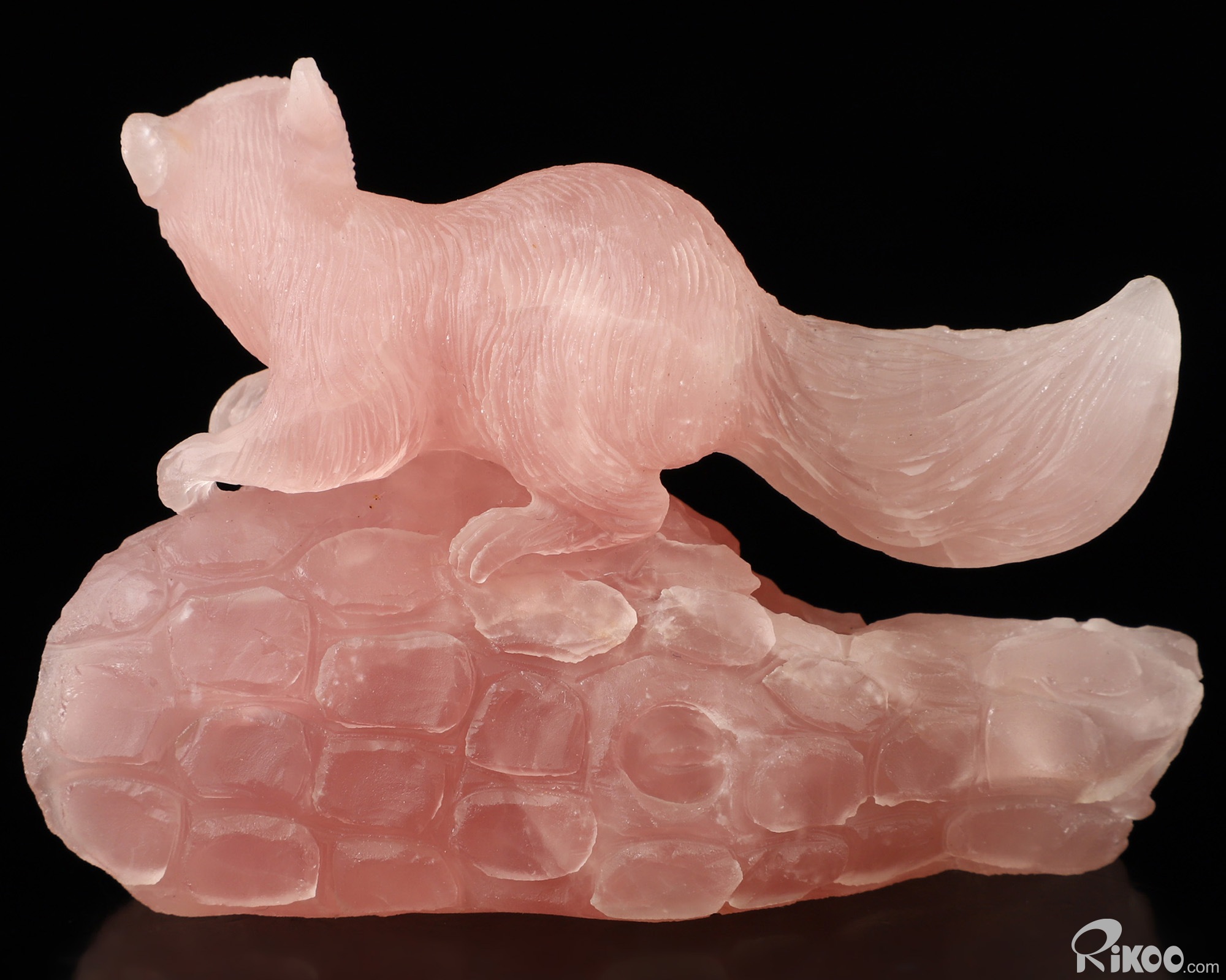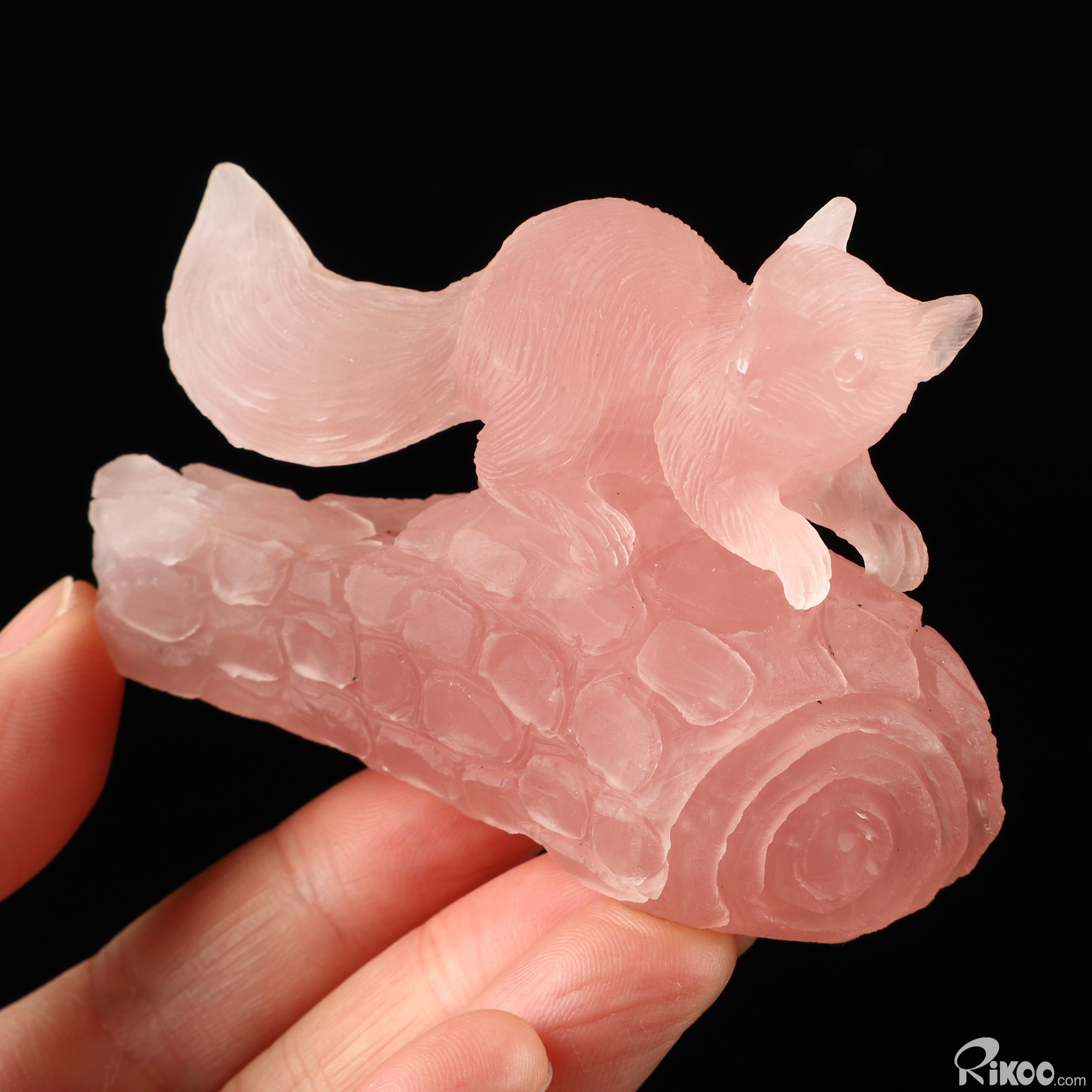 3.5" Frosted Rose Quartz Hand Carved Crystal Squirrel Sculpture, Crystal Healing