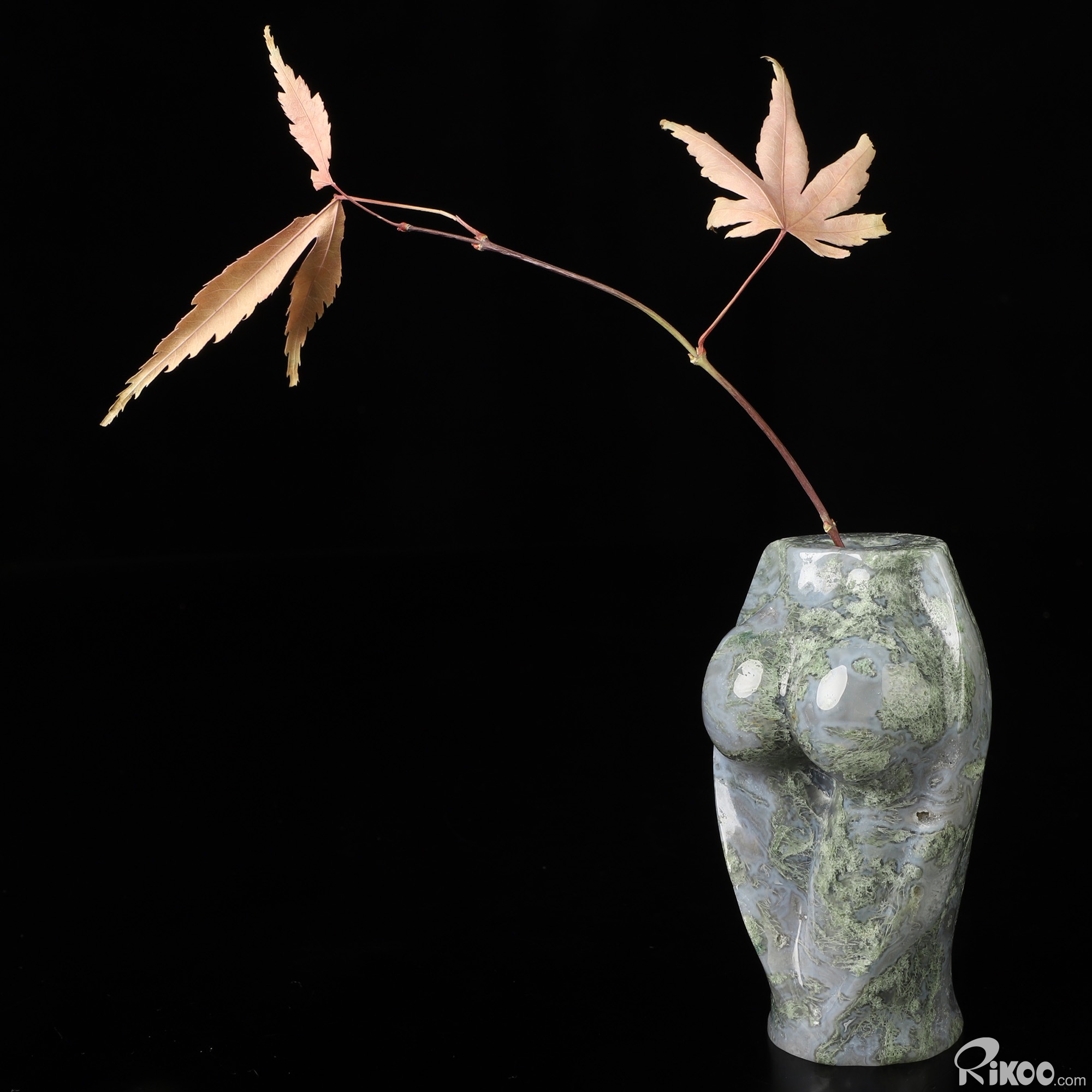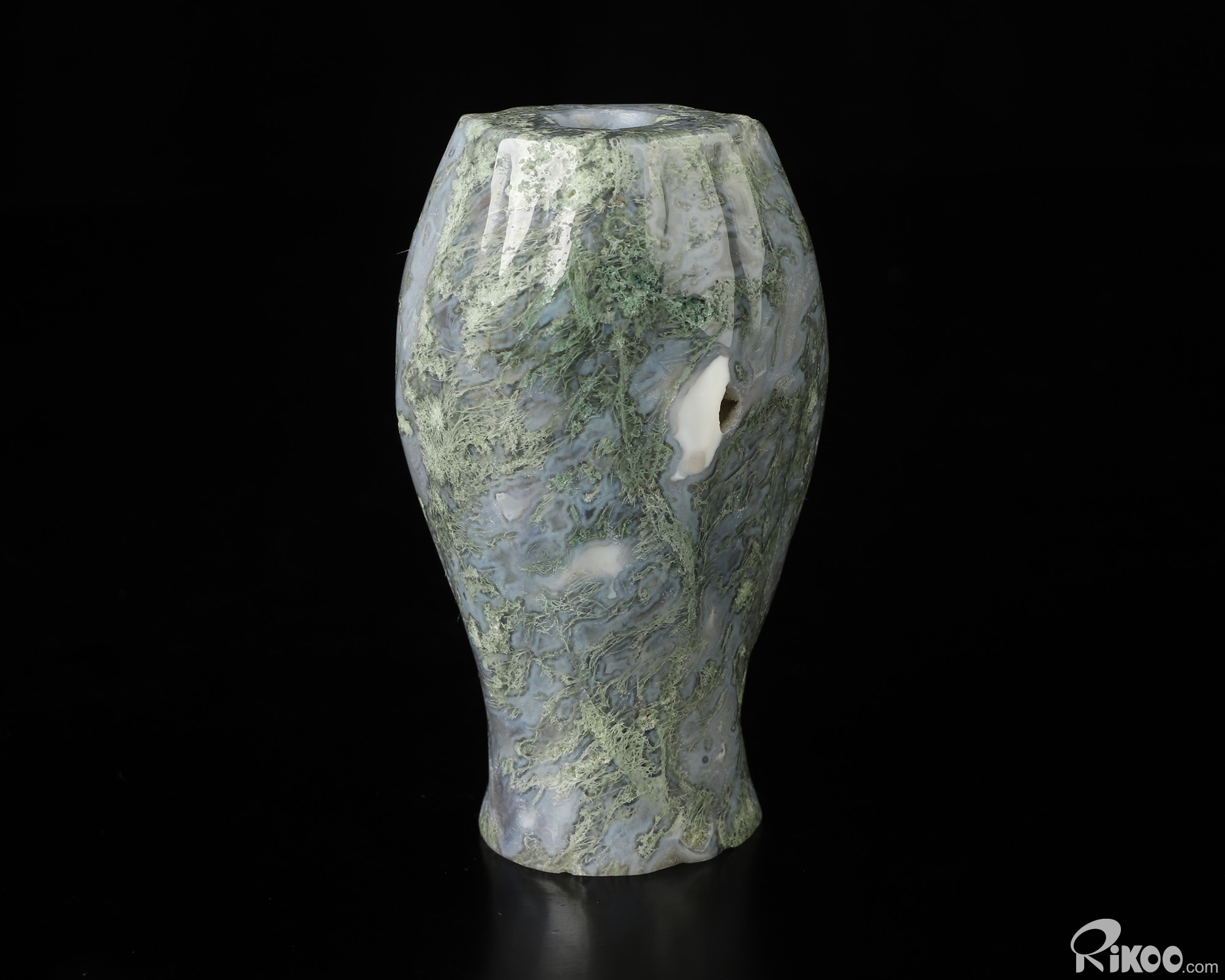 3.5" Green Moss Agate Hand Carved Crystal Vase Sculpture, Crystal Healing