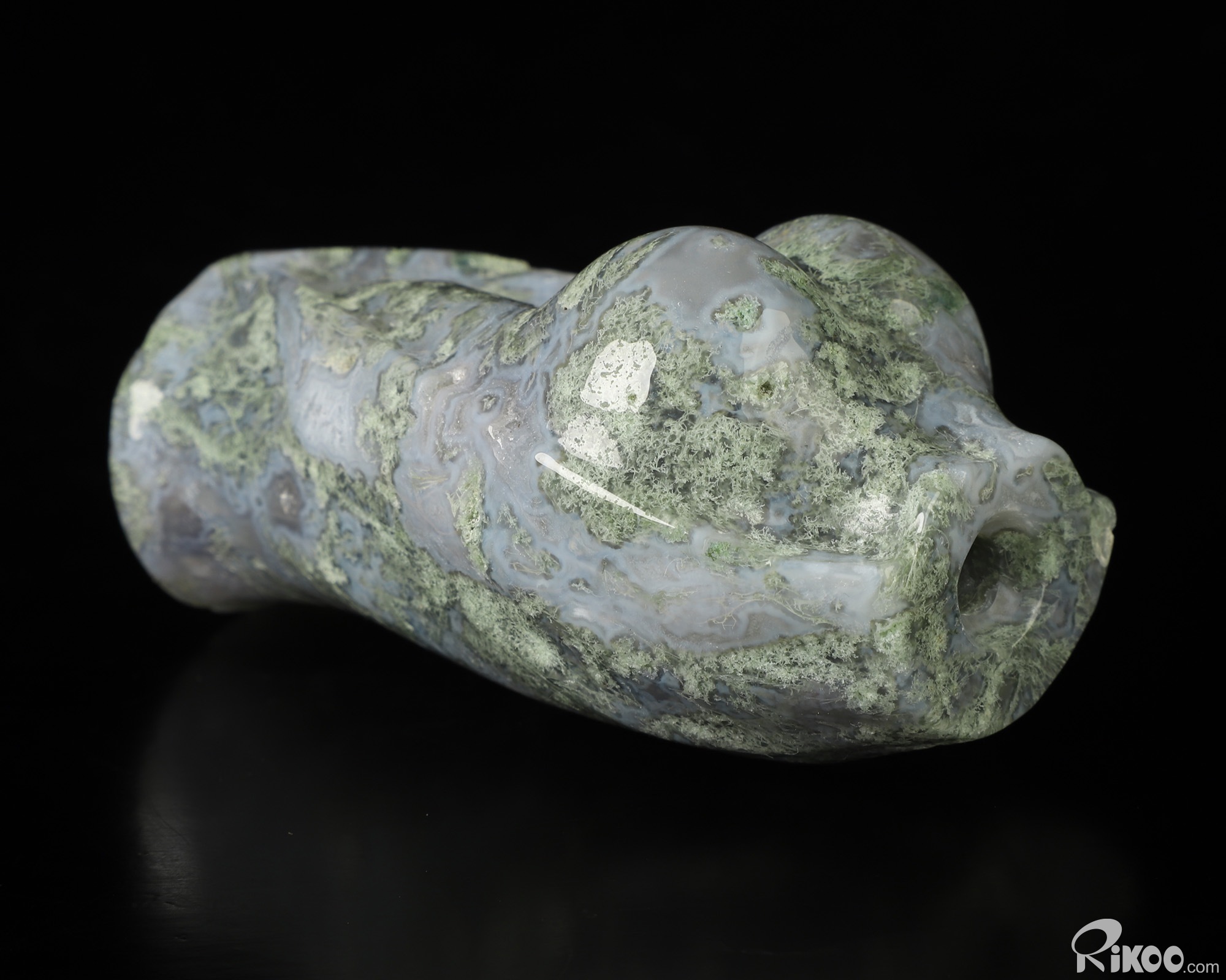 You are looking at a Green Moss Agate sculpture. The sculpture is 3.5 inches long.