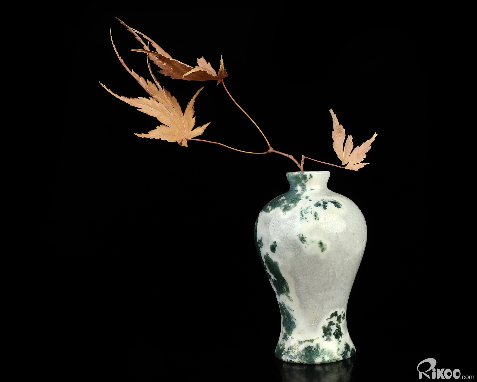 3.5" Green Moss Agate Hand Carved Crystal Vase Sculpture, Crystal Healing