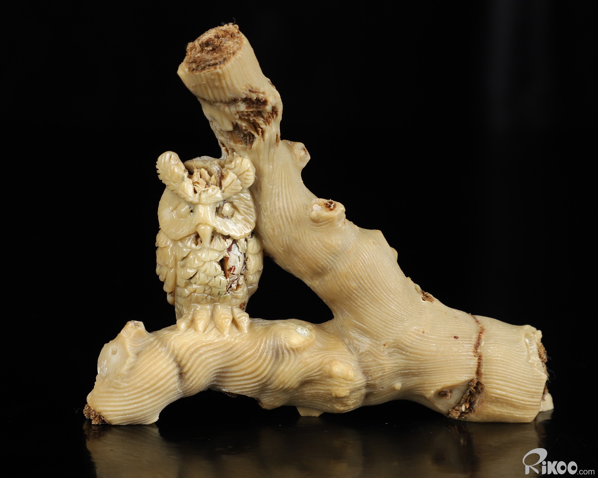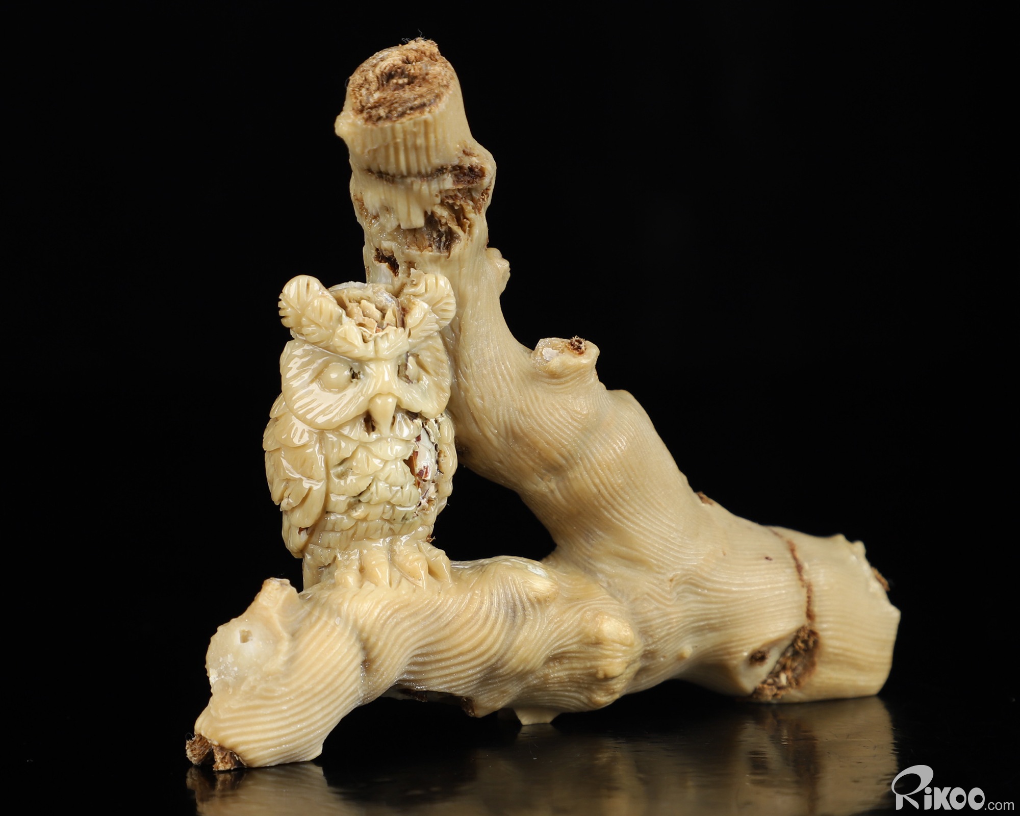 3.5" Petrified Wood Hand Carved Crystal Owl Sculpture, Crystal Healing